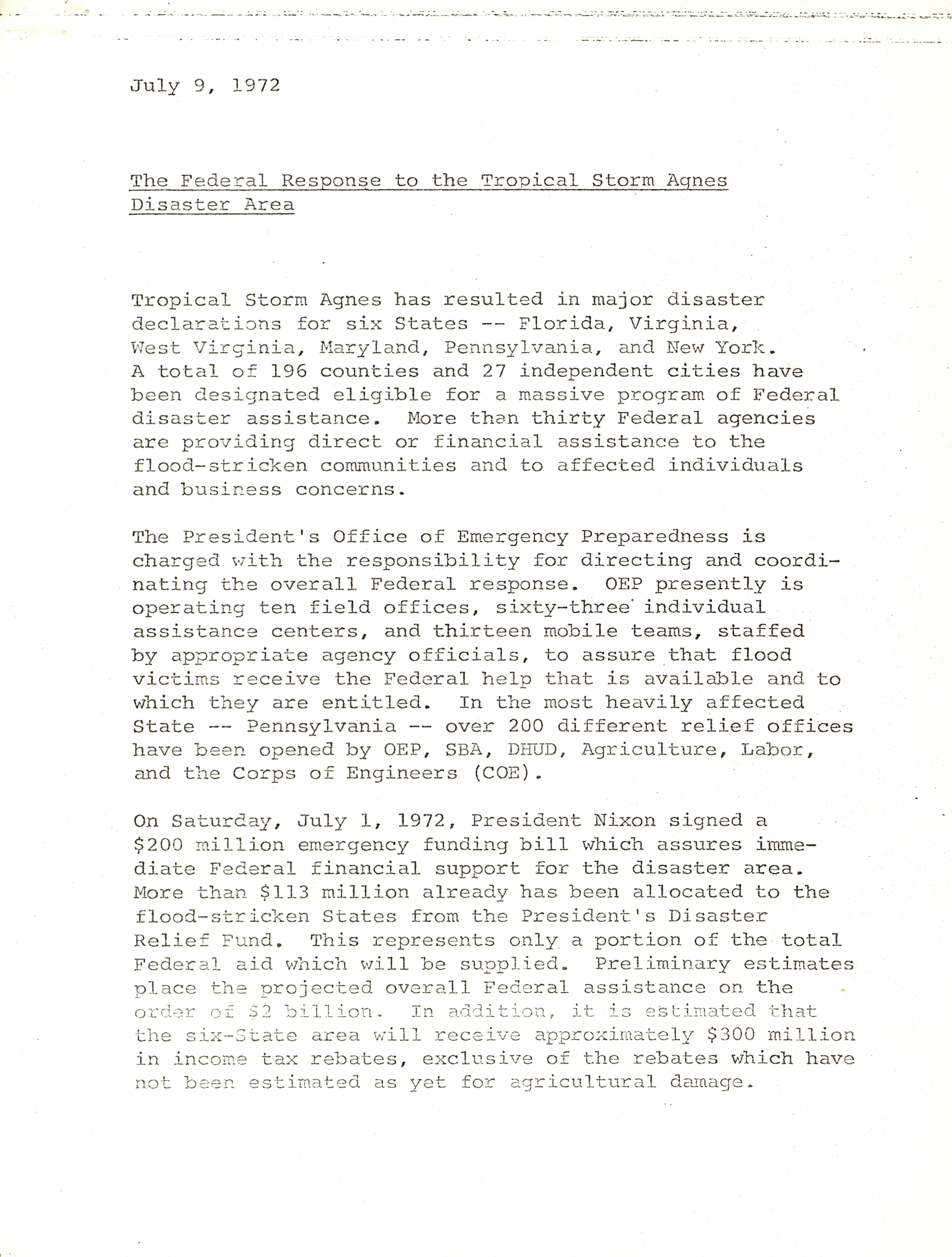 - Hurricane Agnes (1972) Crisis management Disaster relief