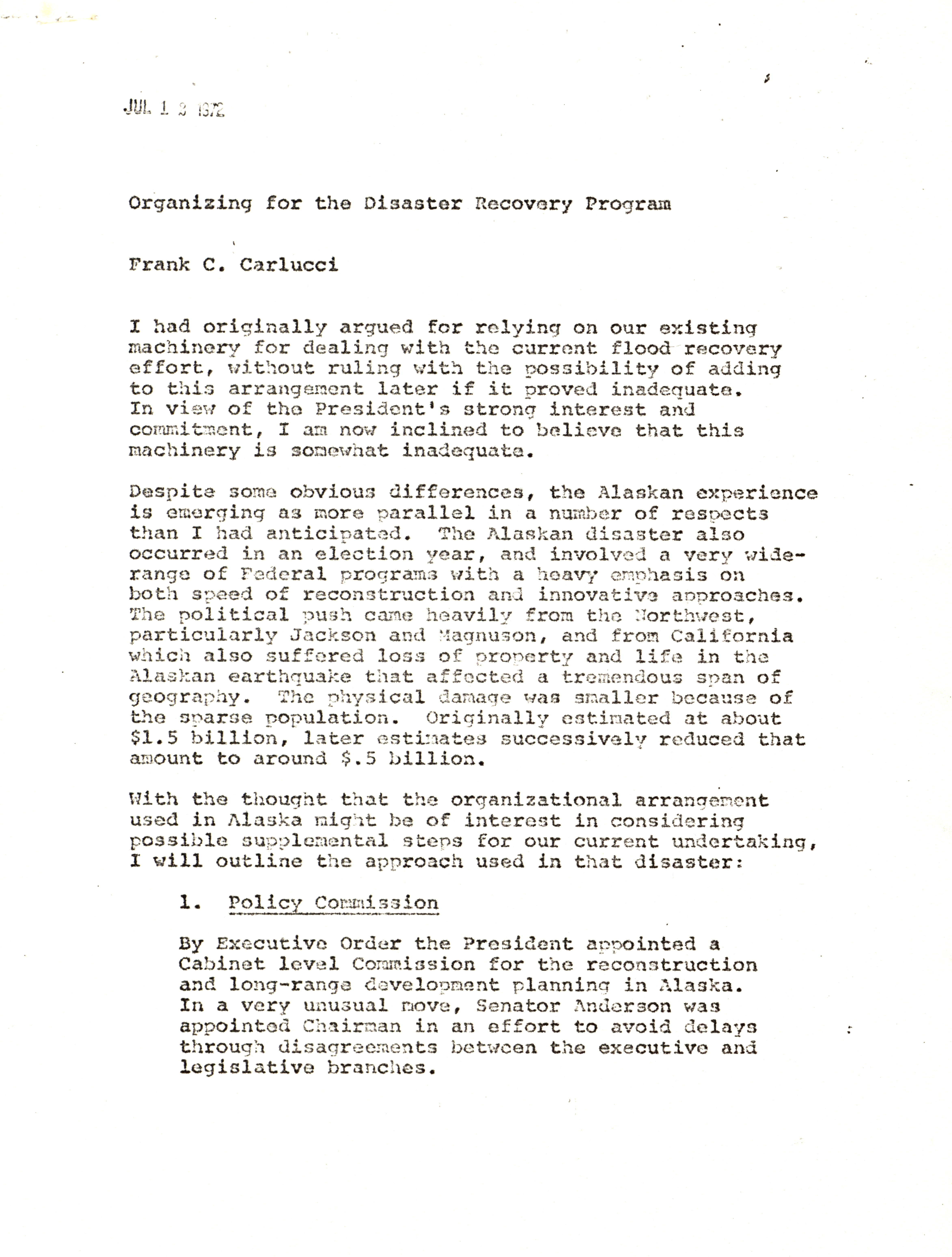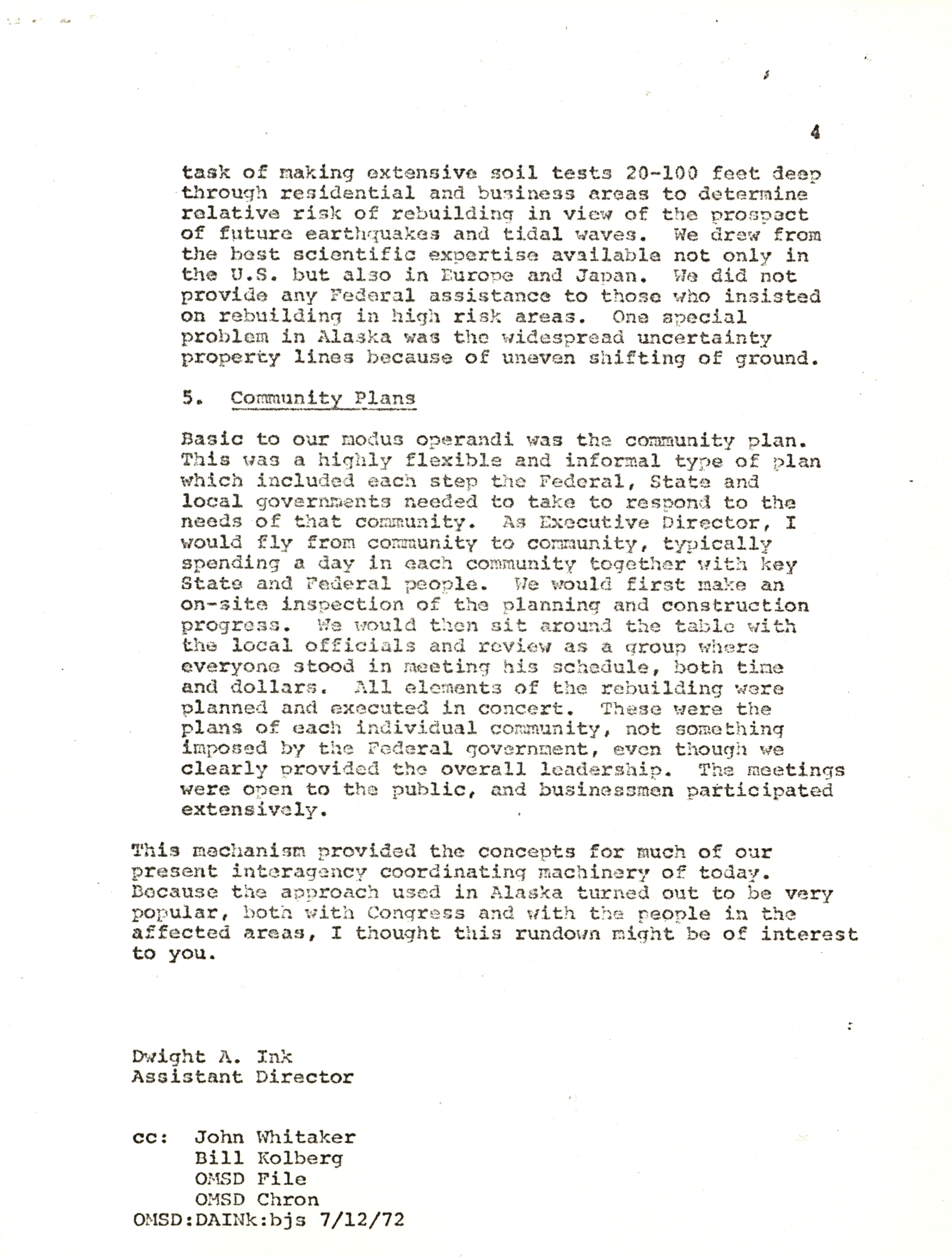 - Dwight A. Ink letter to Frank C. Carlucci, July 12, 1972