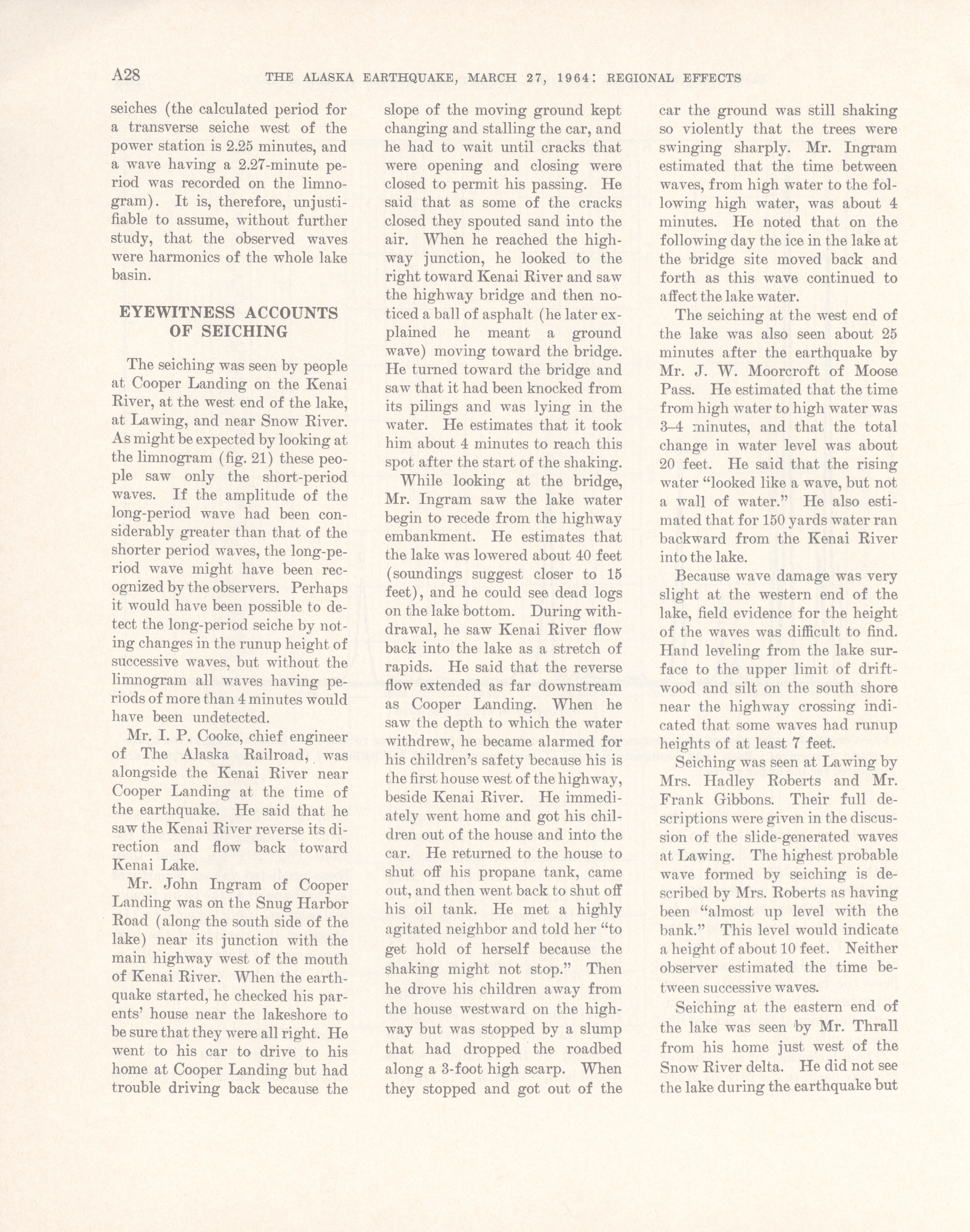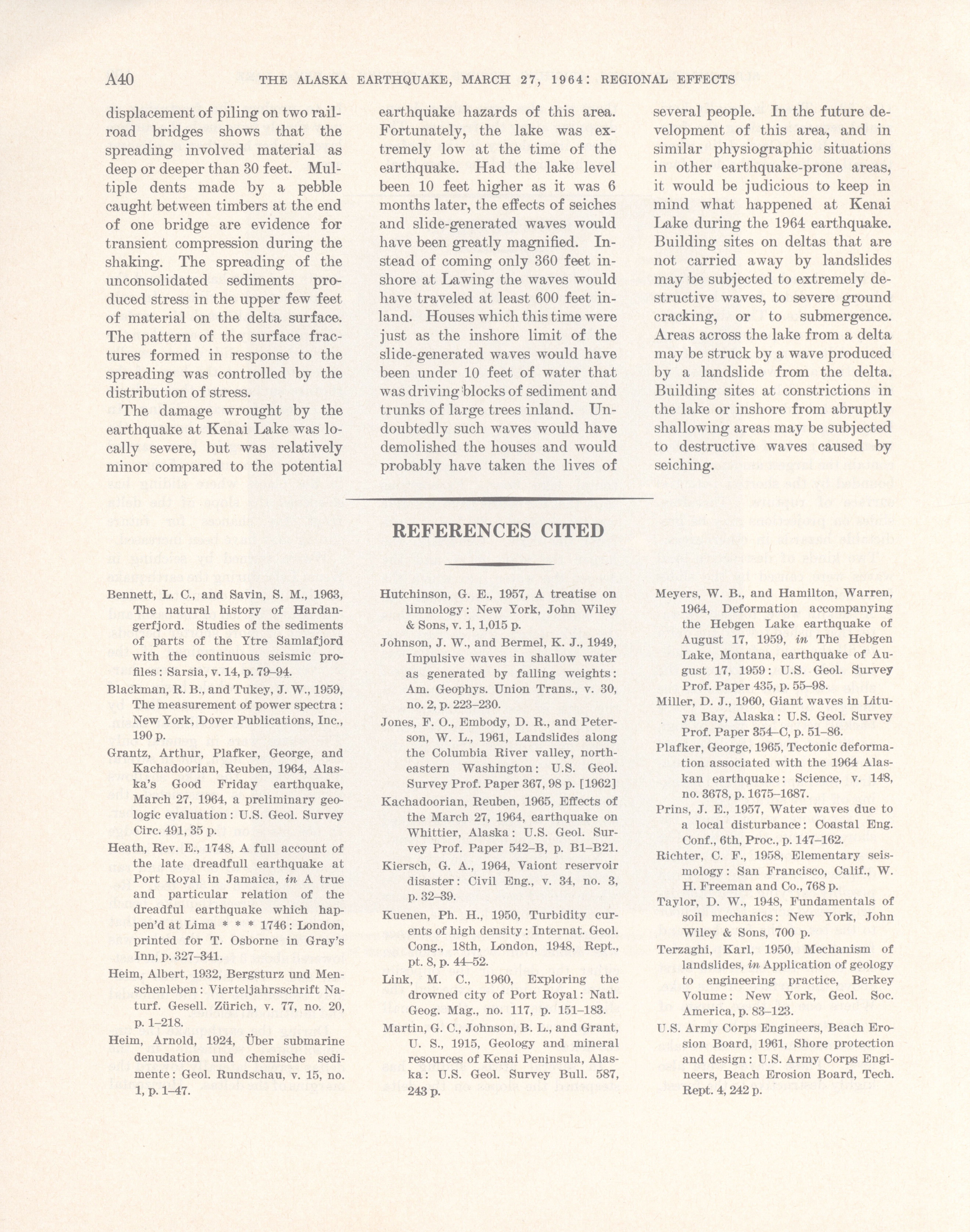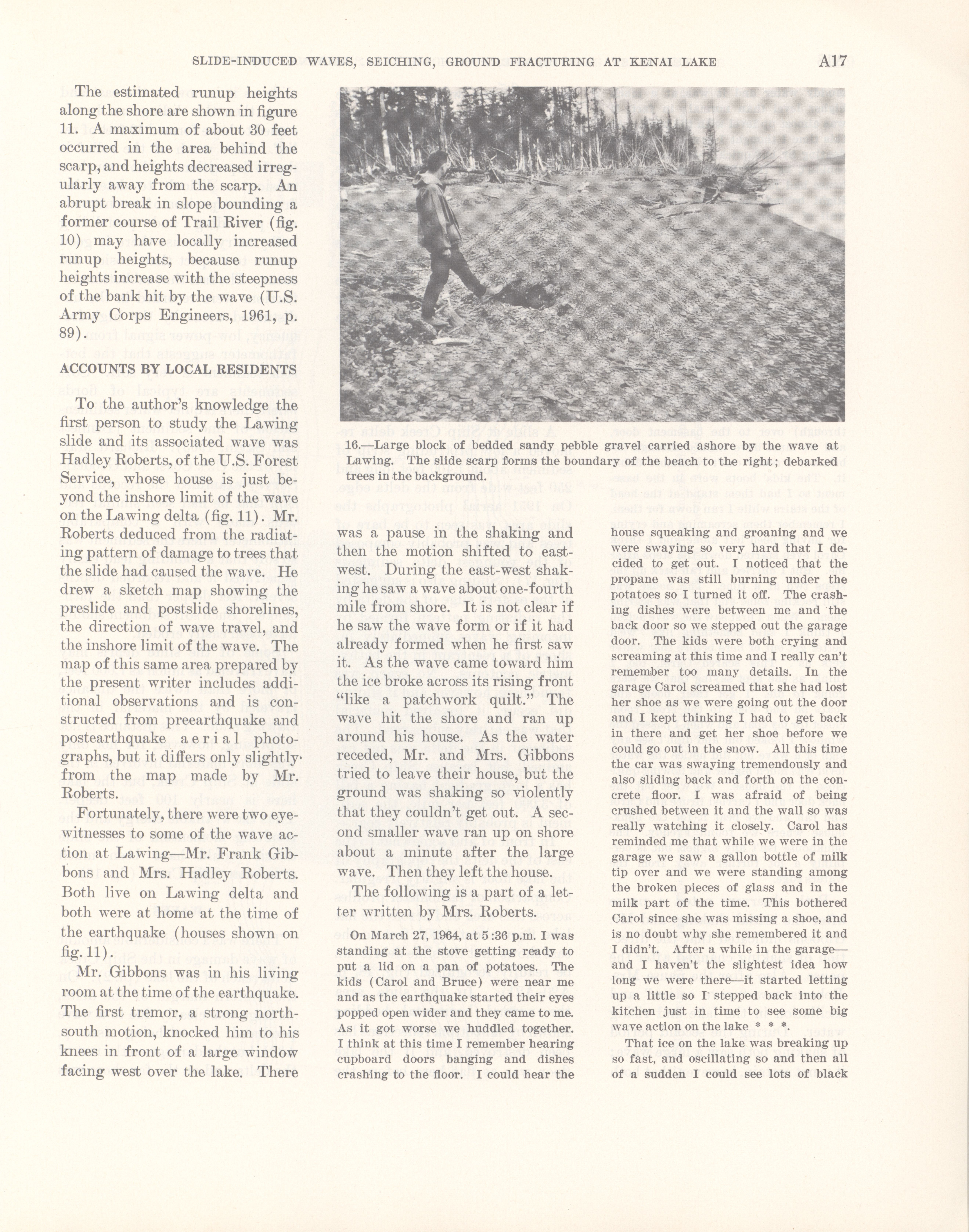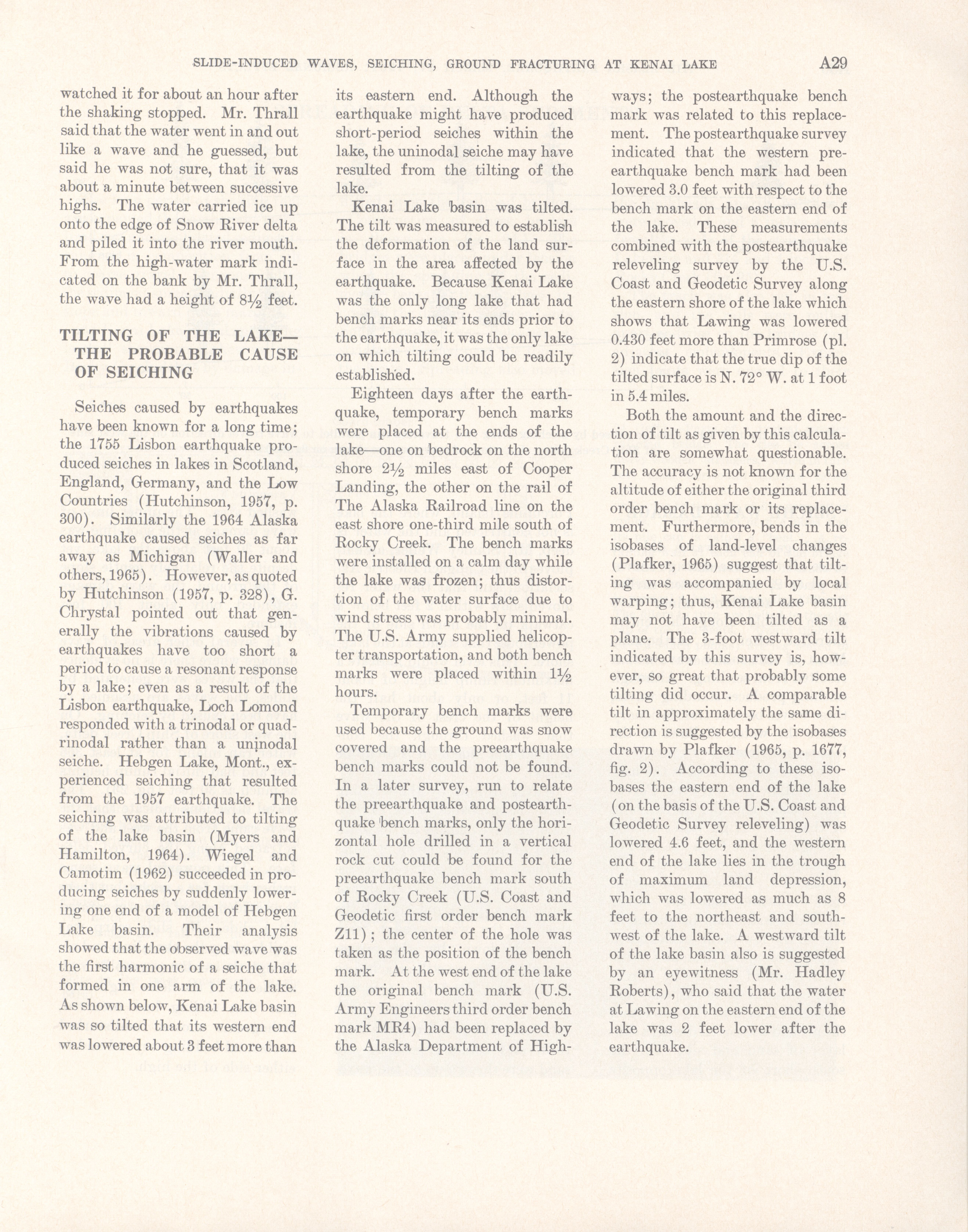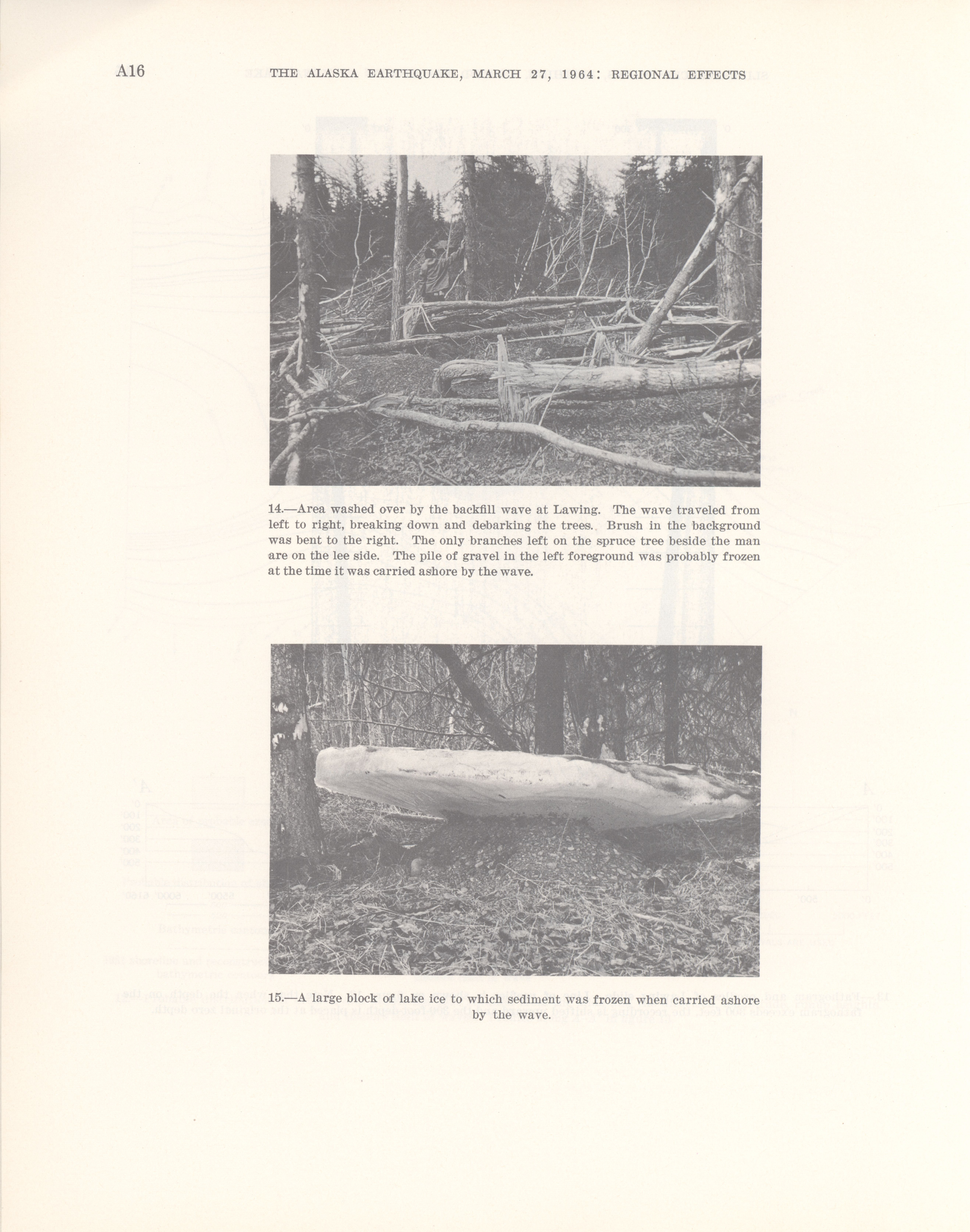 - "The Alaska earthquake, March 27, 1964: regional effects. Slide-induced waves, seiching, and ground fracturing at Kenai Lake", Dwight Ink Collection, Iowa State University Library Digital Collections
