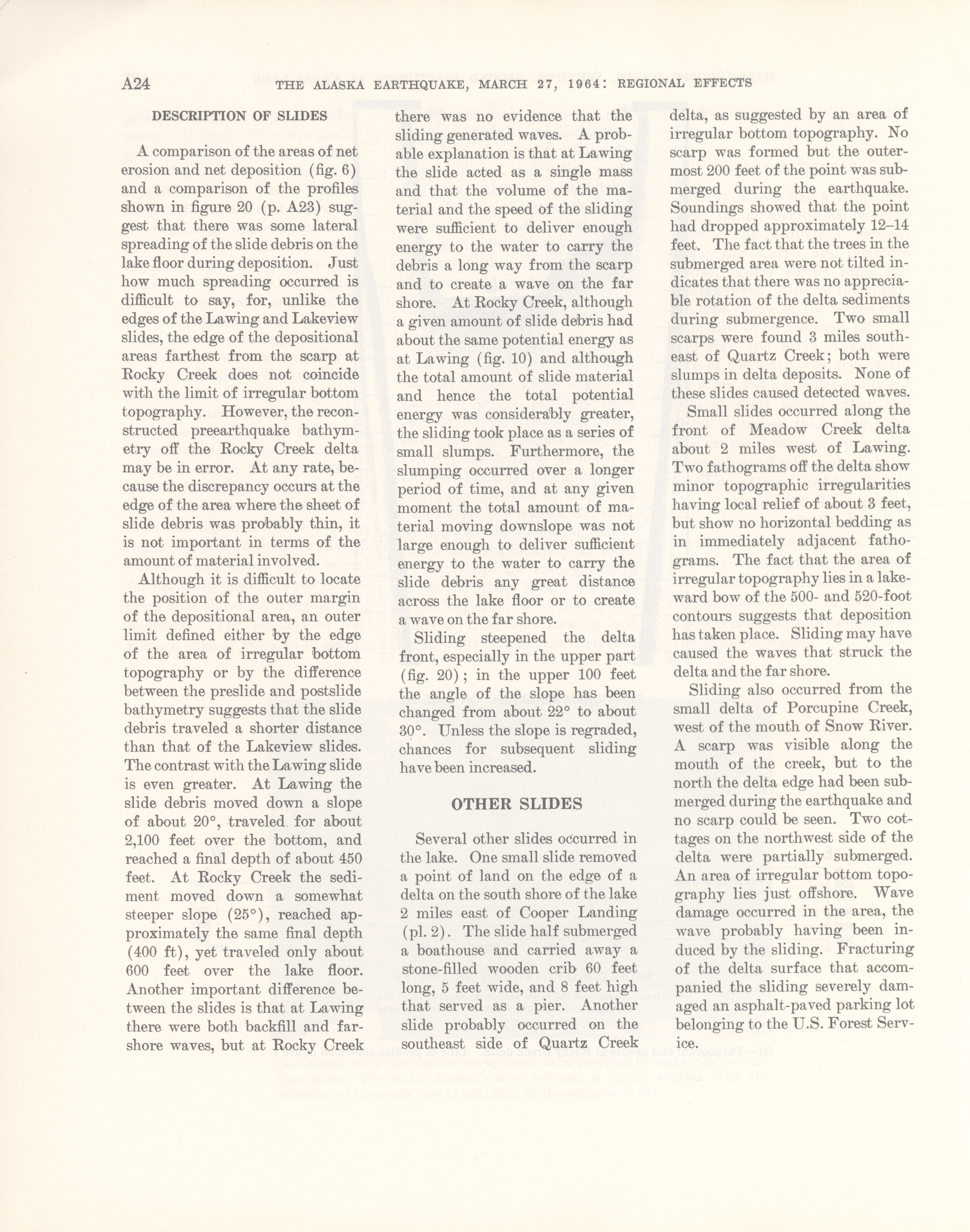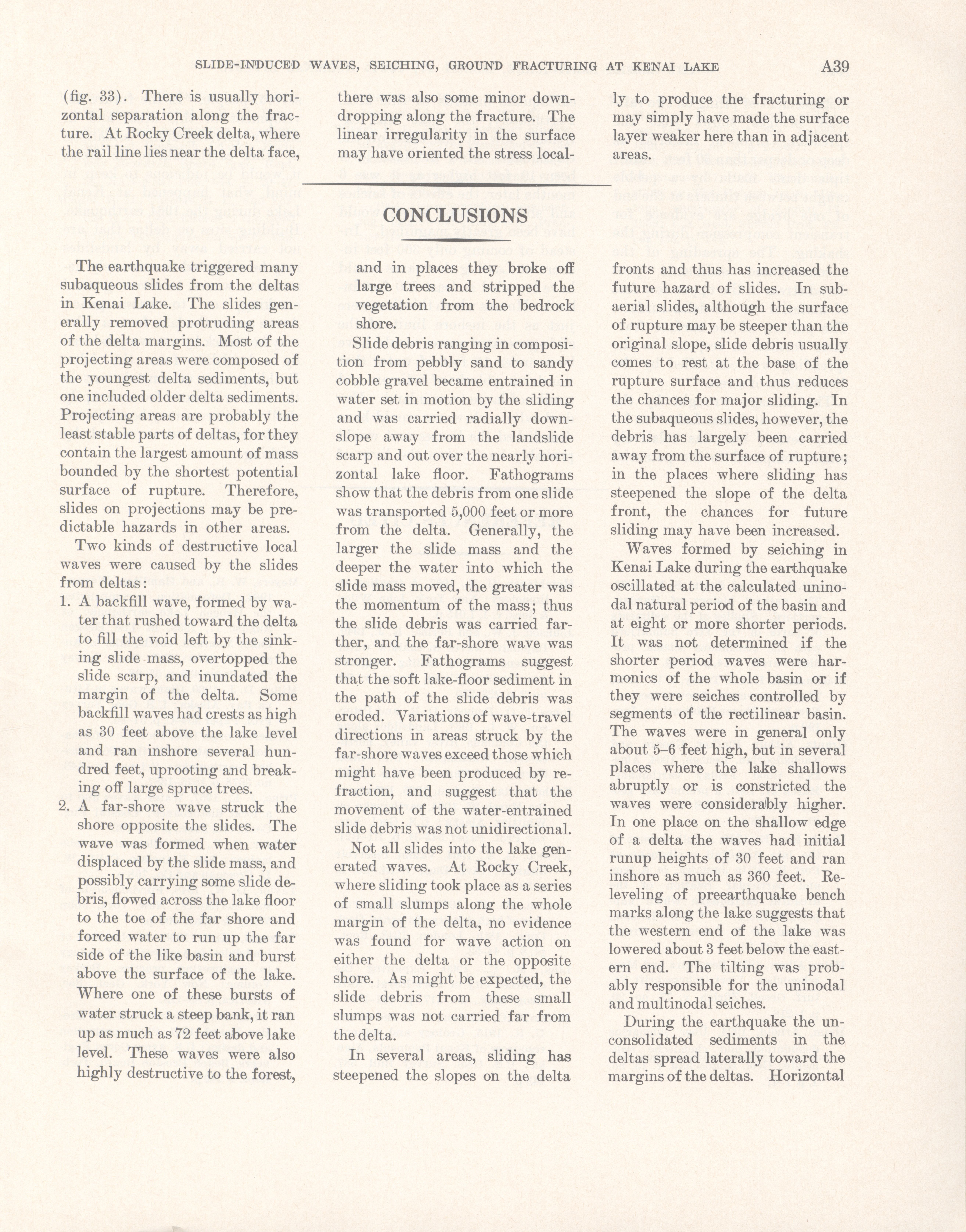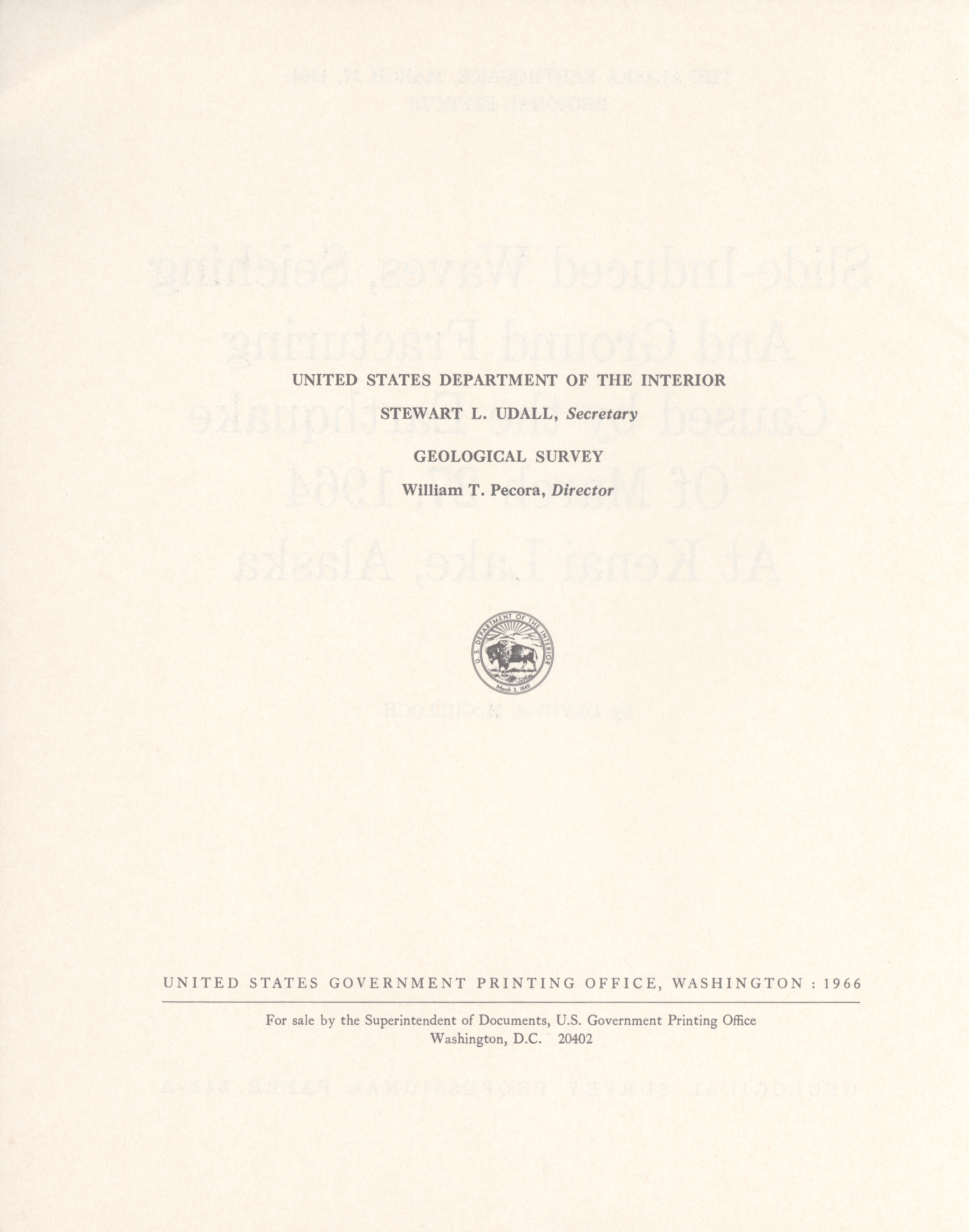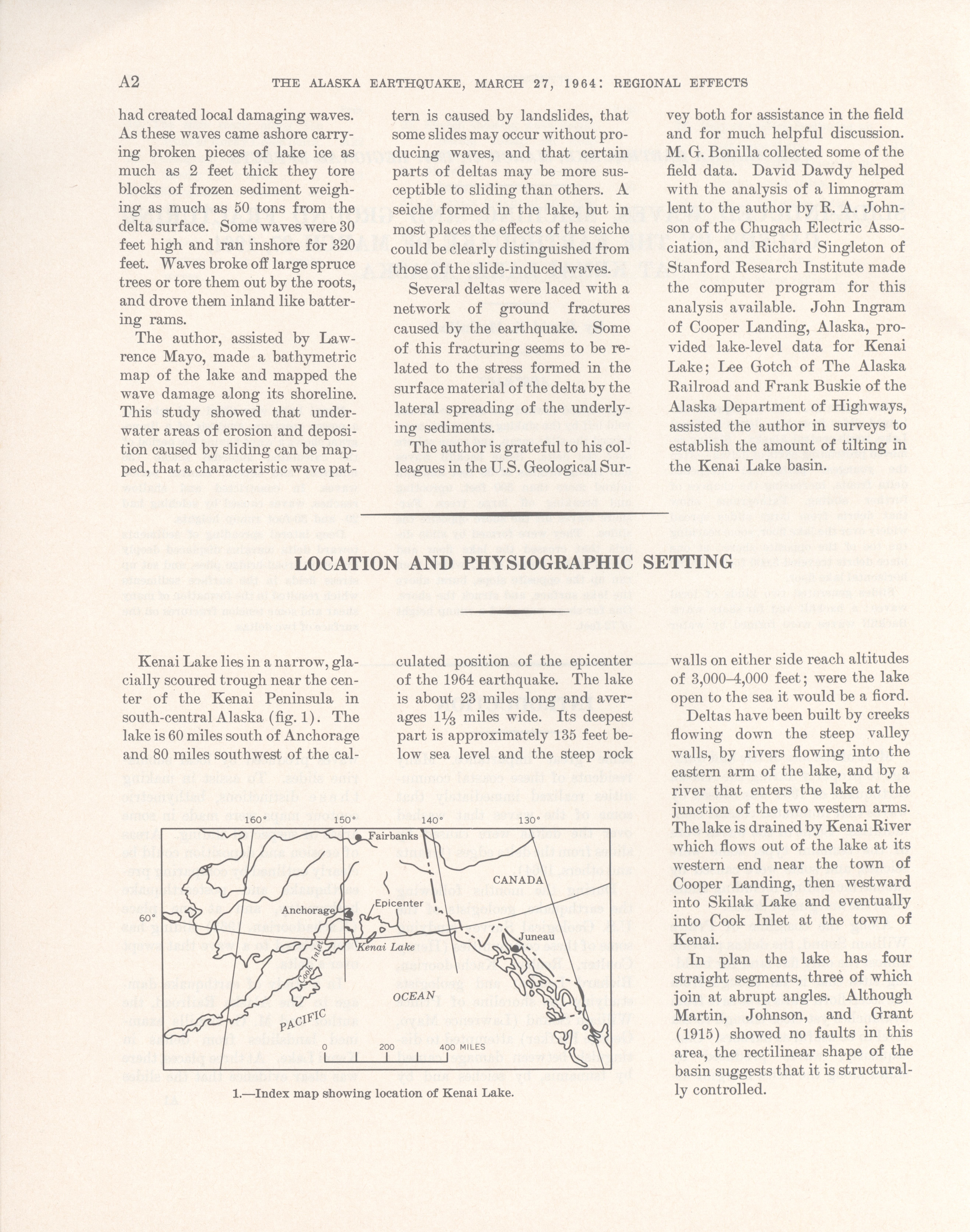- "The Alaska earthquake, March 27, 1964: regional effects. Slide-induced waves, seiching, and ground fracturing at Kenai Lake", Dwight Ink Collection, Iowa State University Library Digital Collections