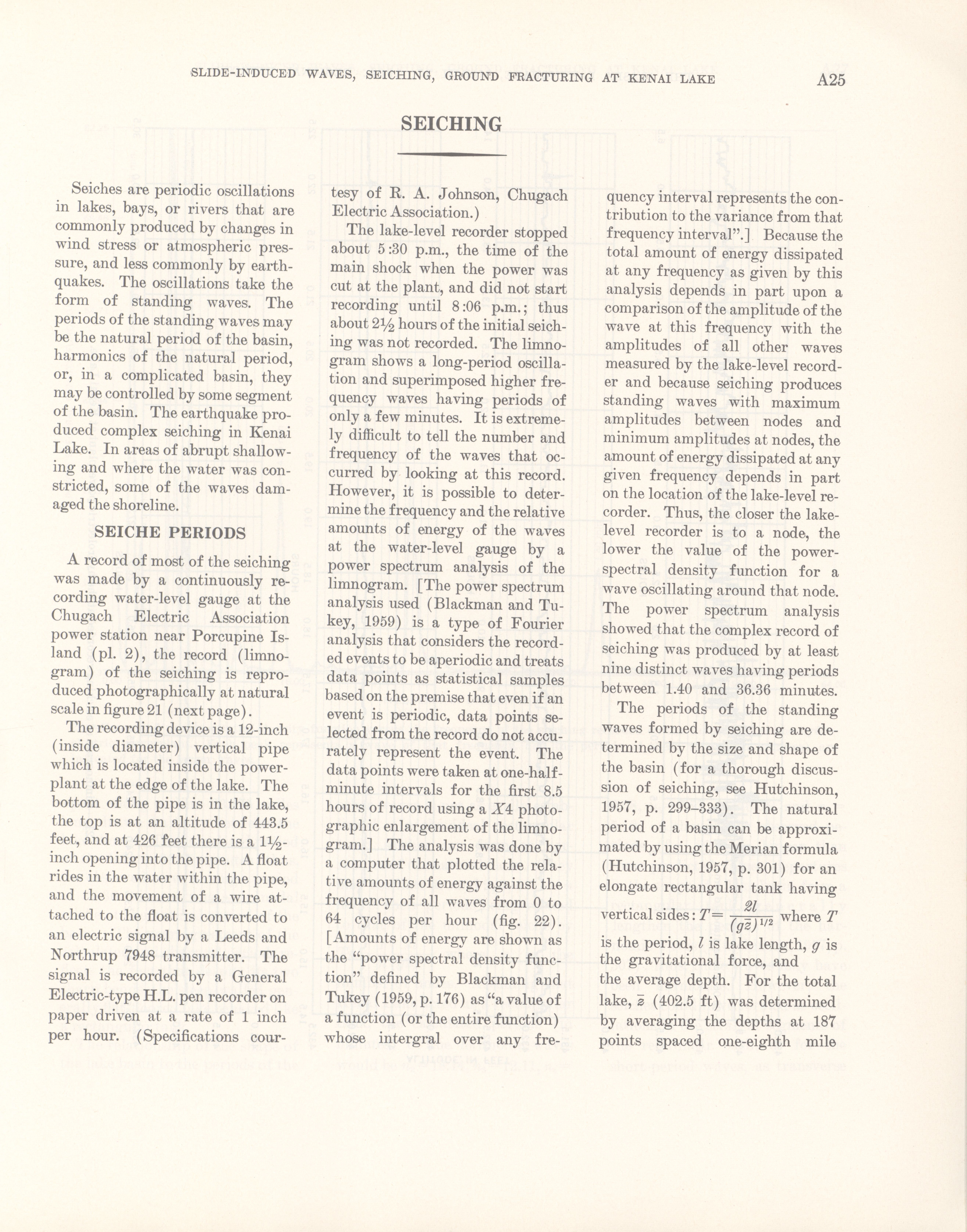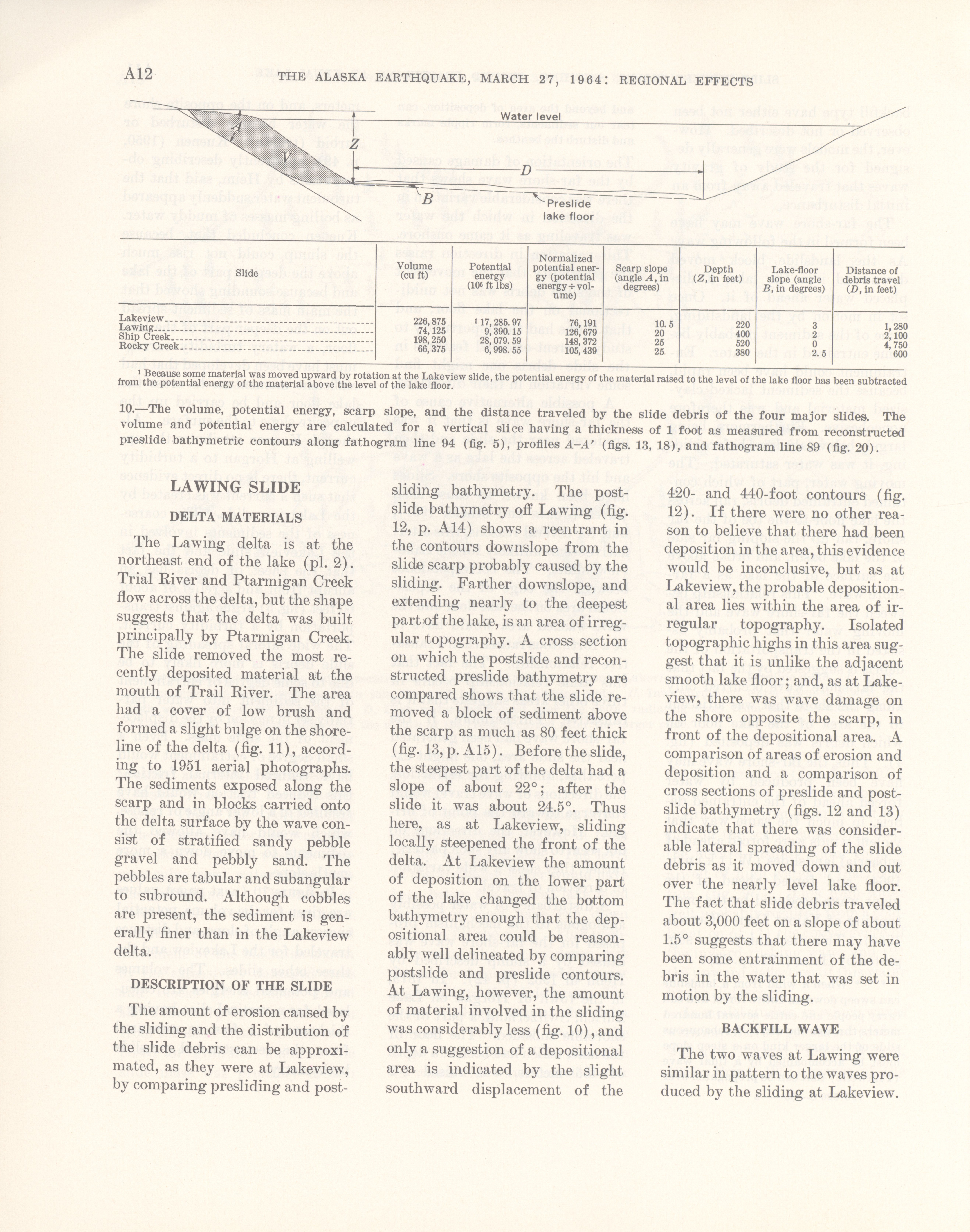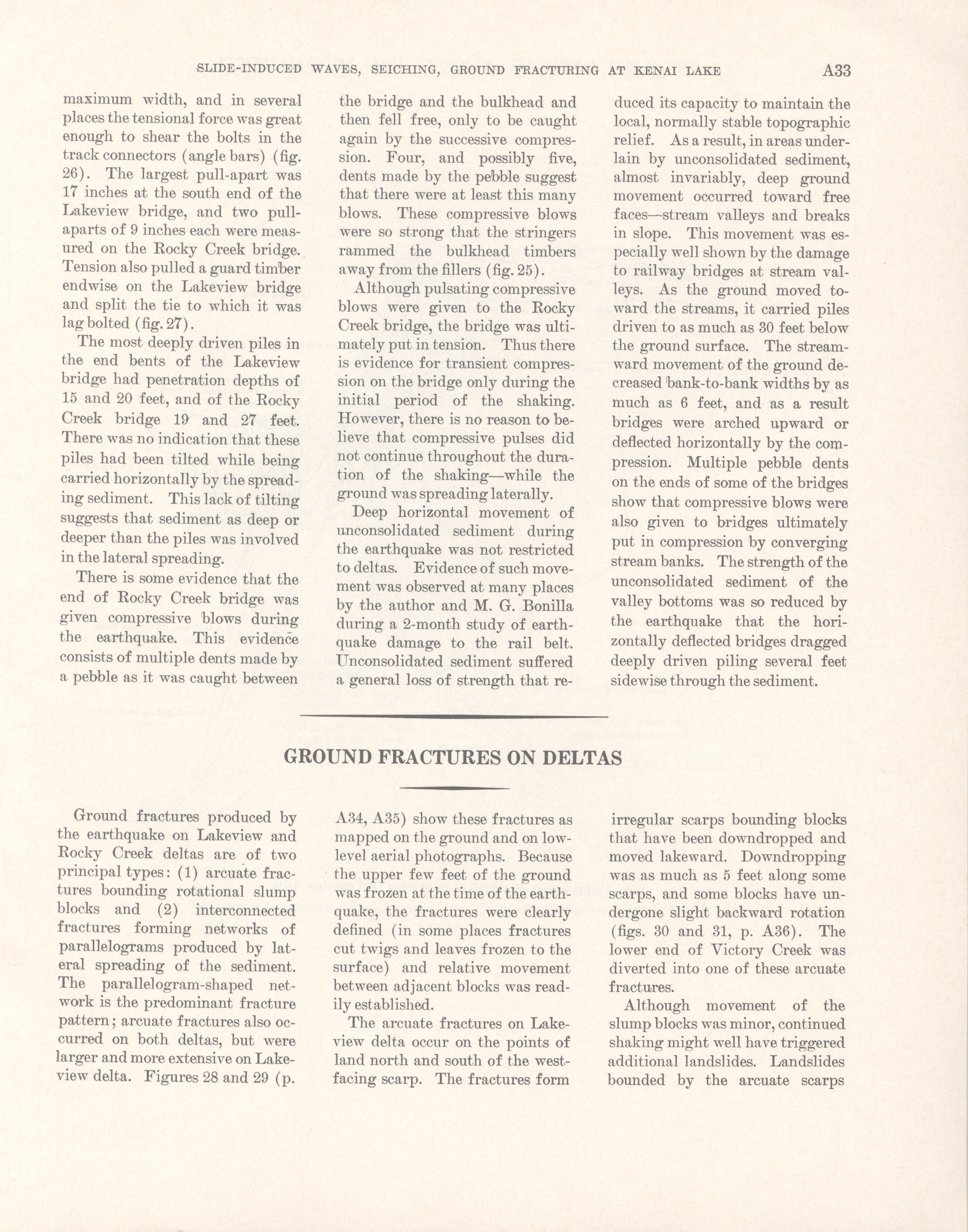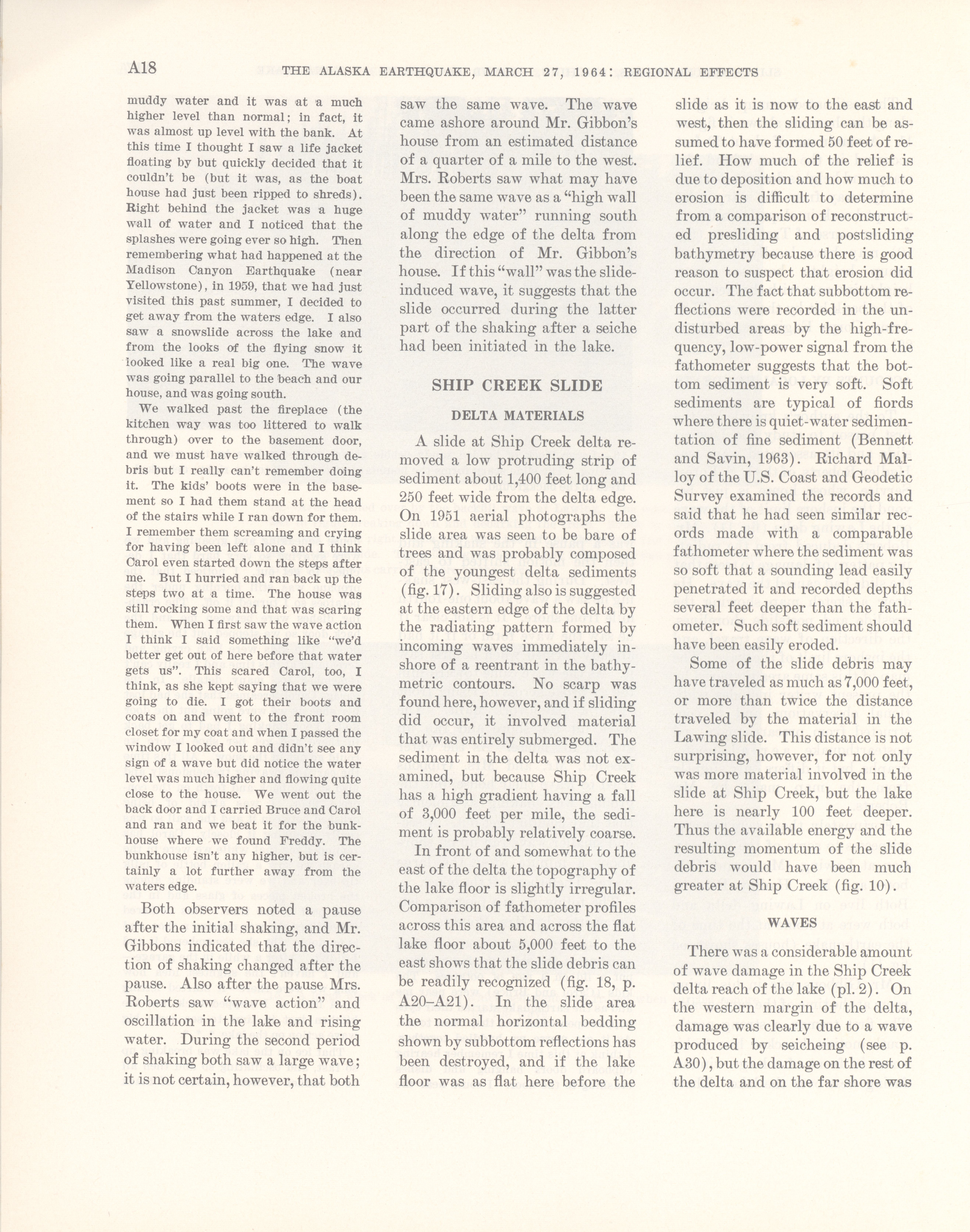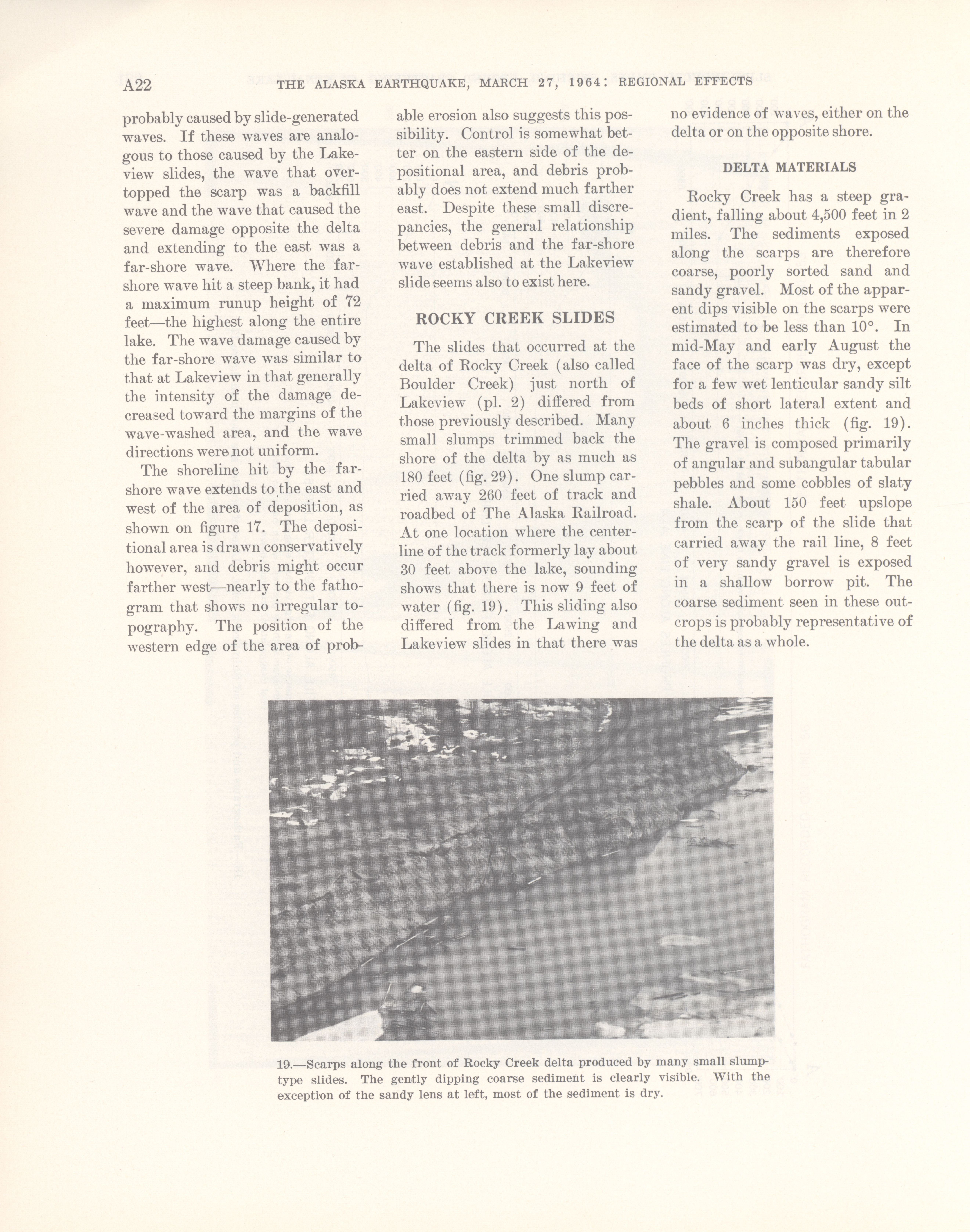 - "The Alaska earthquake, March 27, 1964: regional effects. Slide-induced waves, seiching, and ground fracturing at Kenai Lake", Dwight Ink Collection, Iowa State University Library Digital Collections