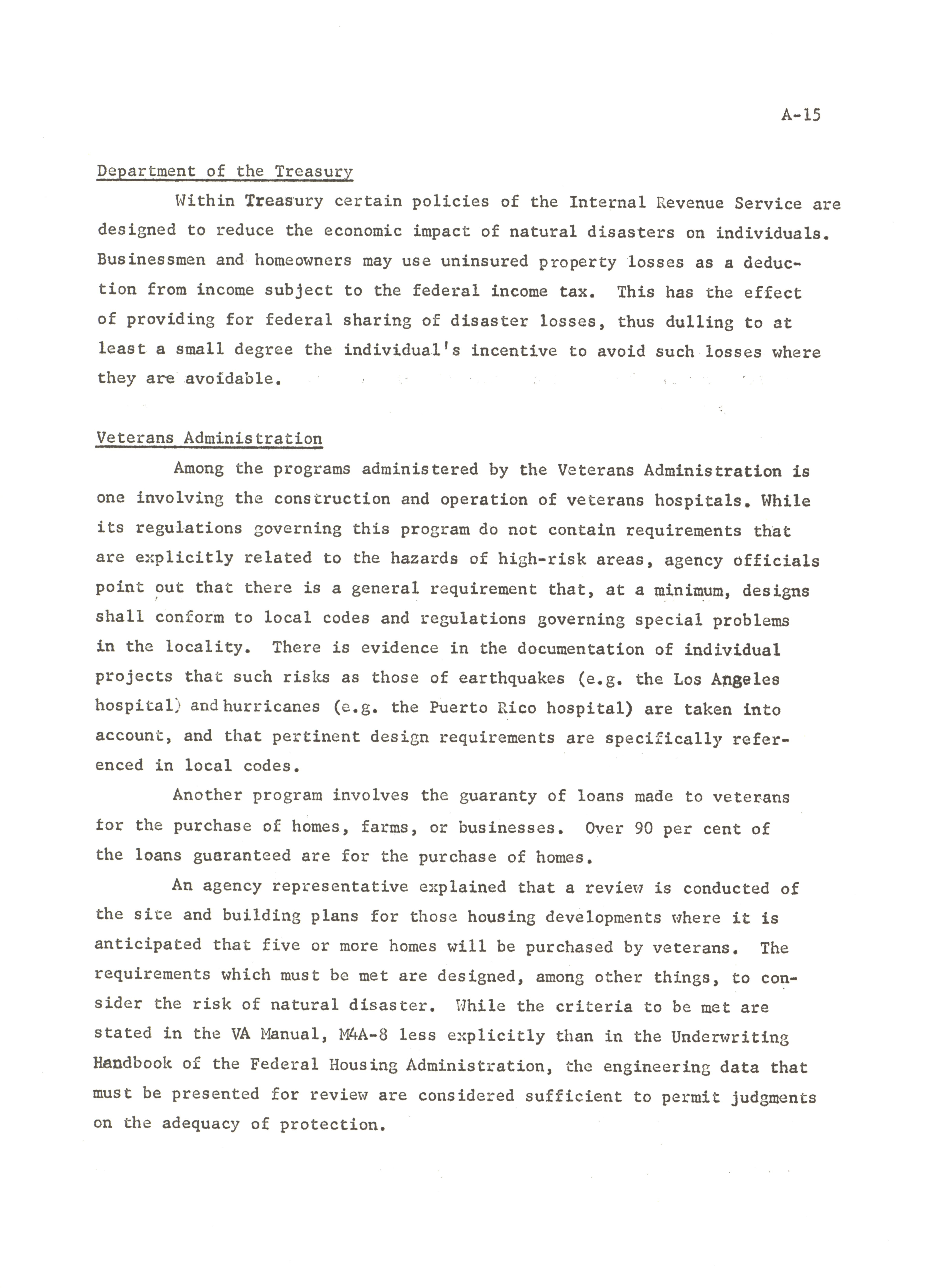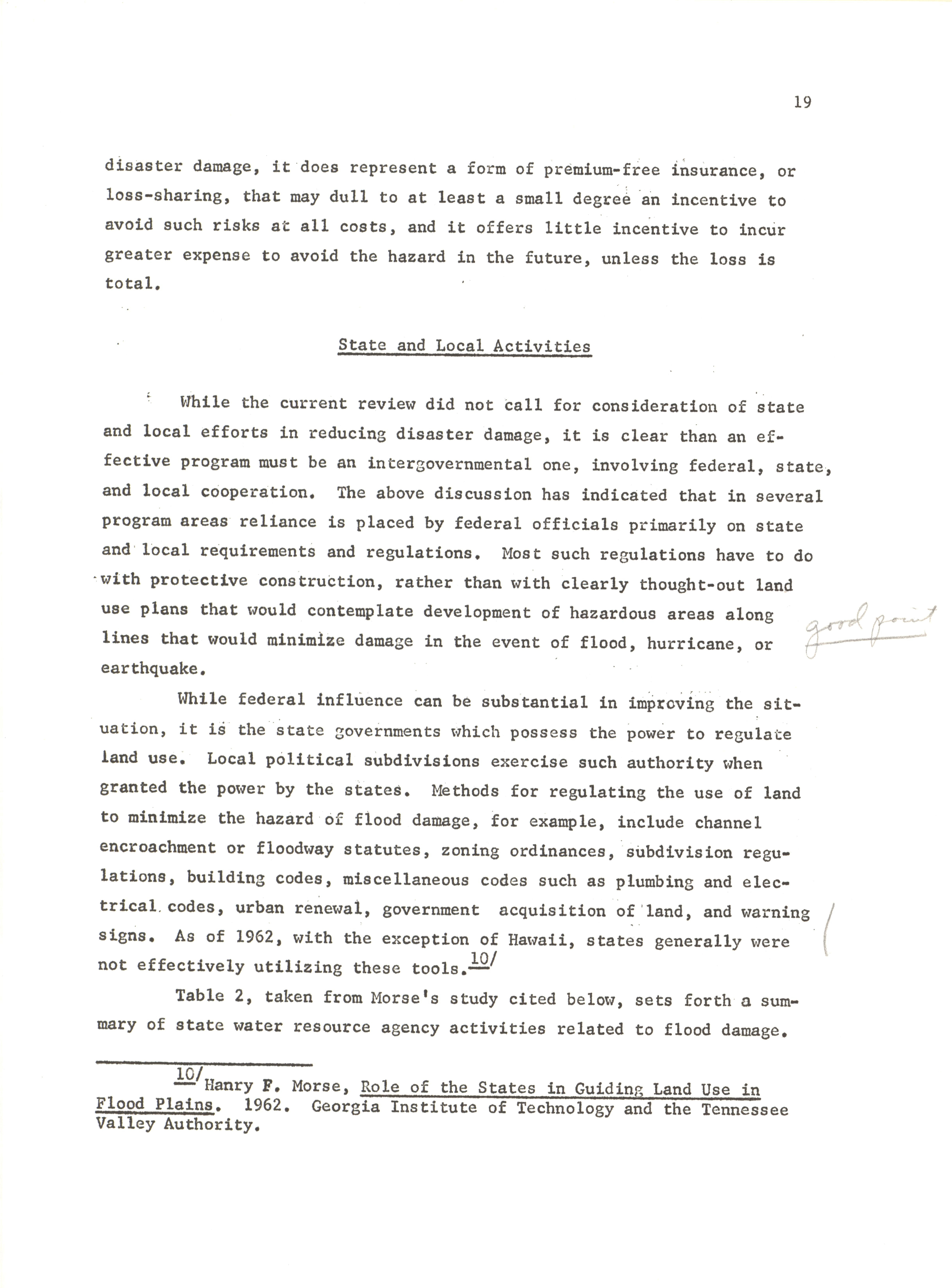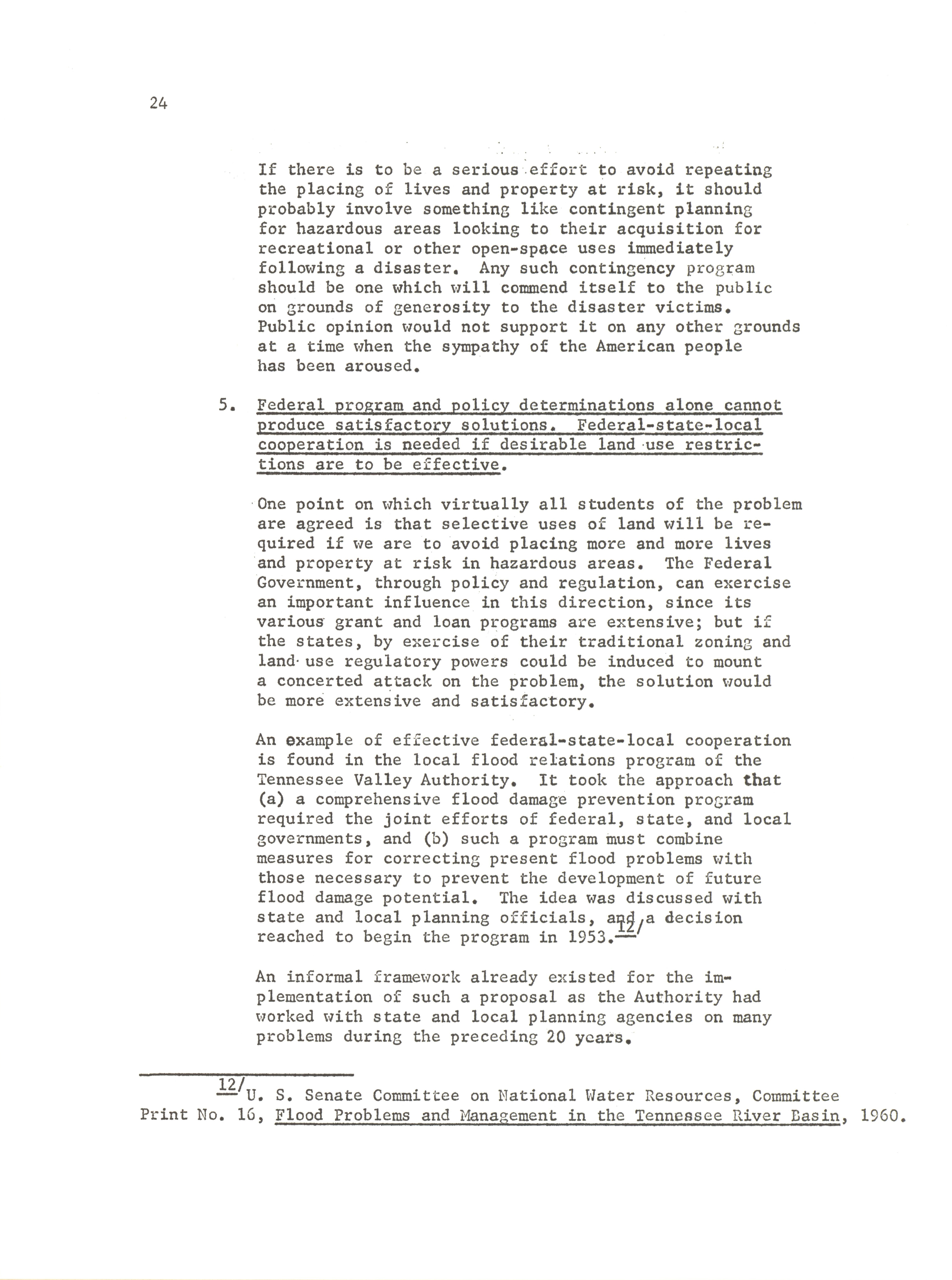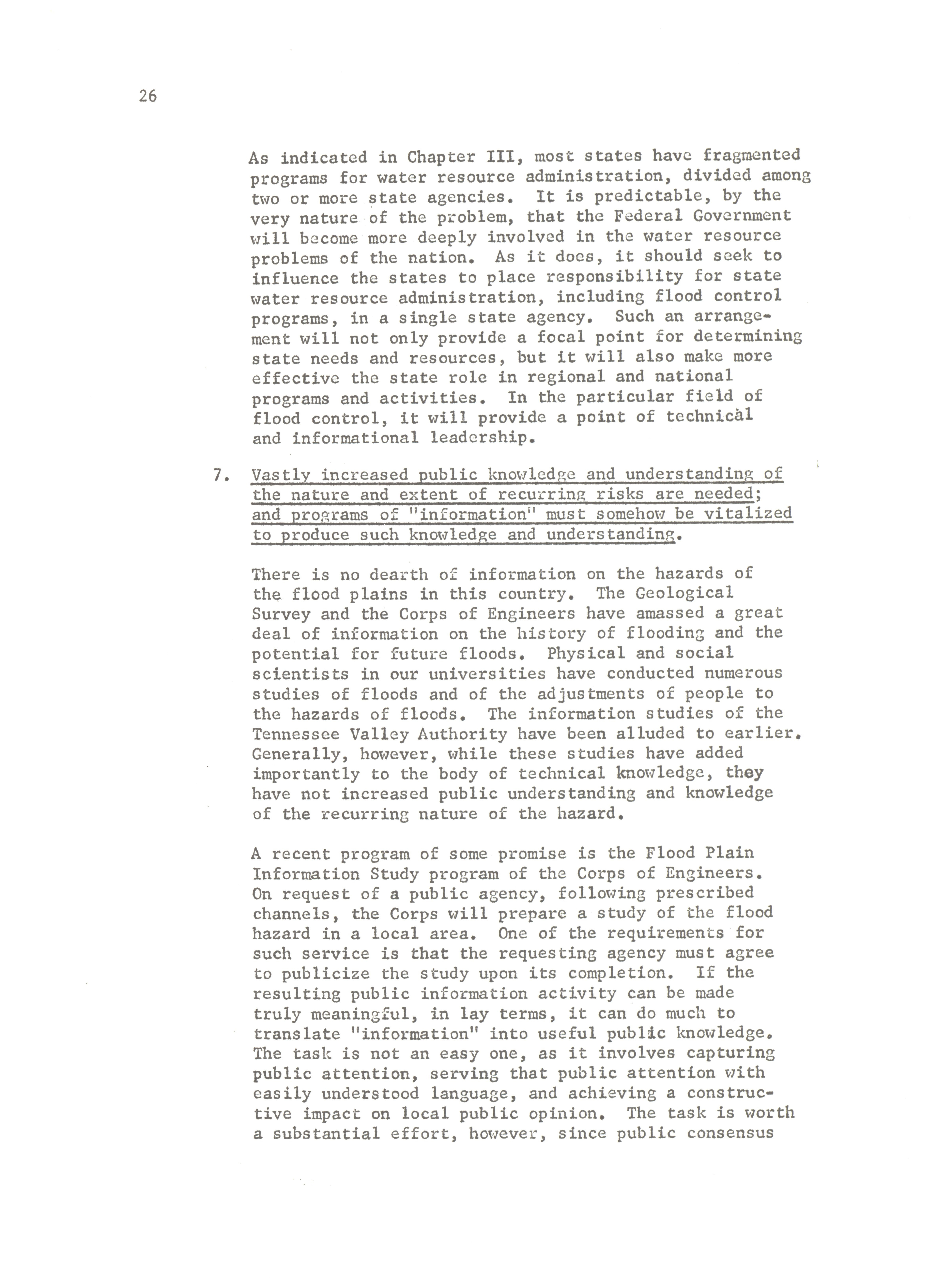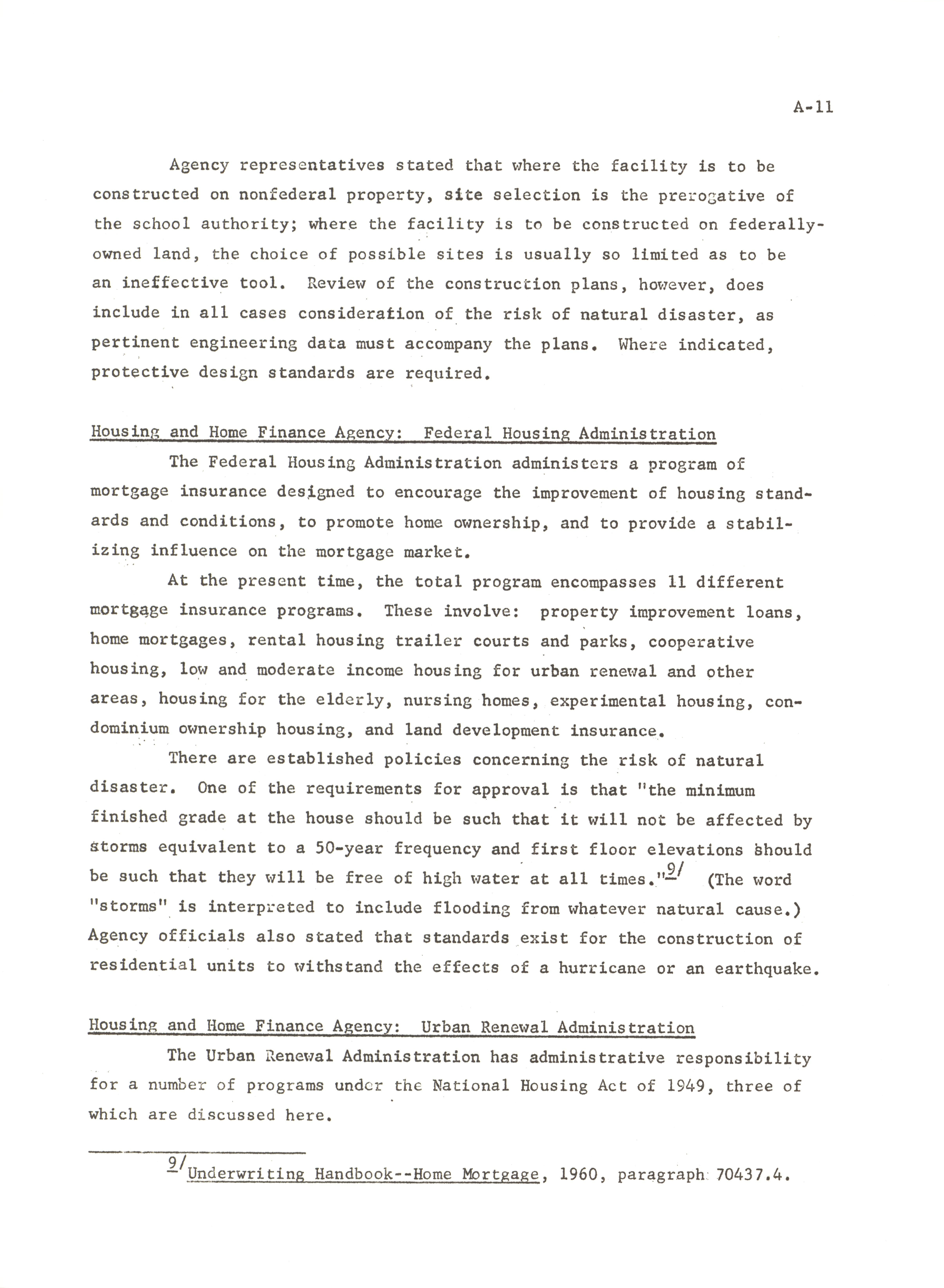 - "Report on a review of federal policy in grant, loan, and construction programs in areas of high risk of natural disaster damage", Dwight Ink Collection, Iowa State University Library Digital Collections