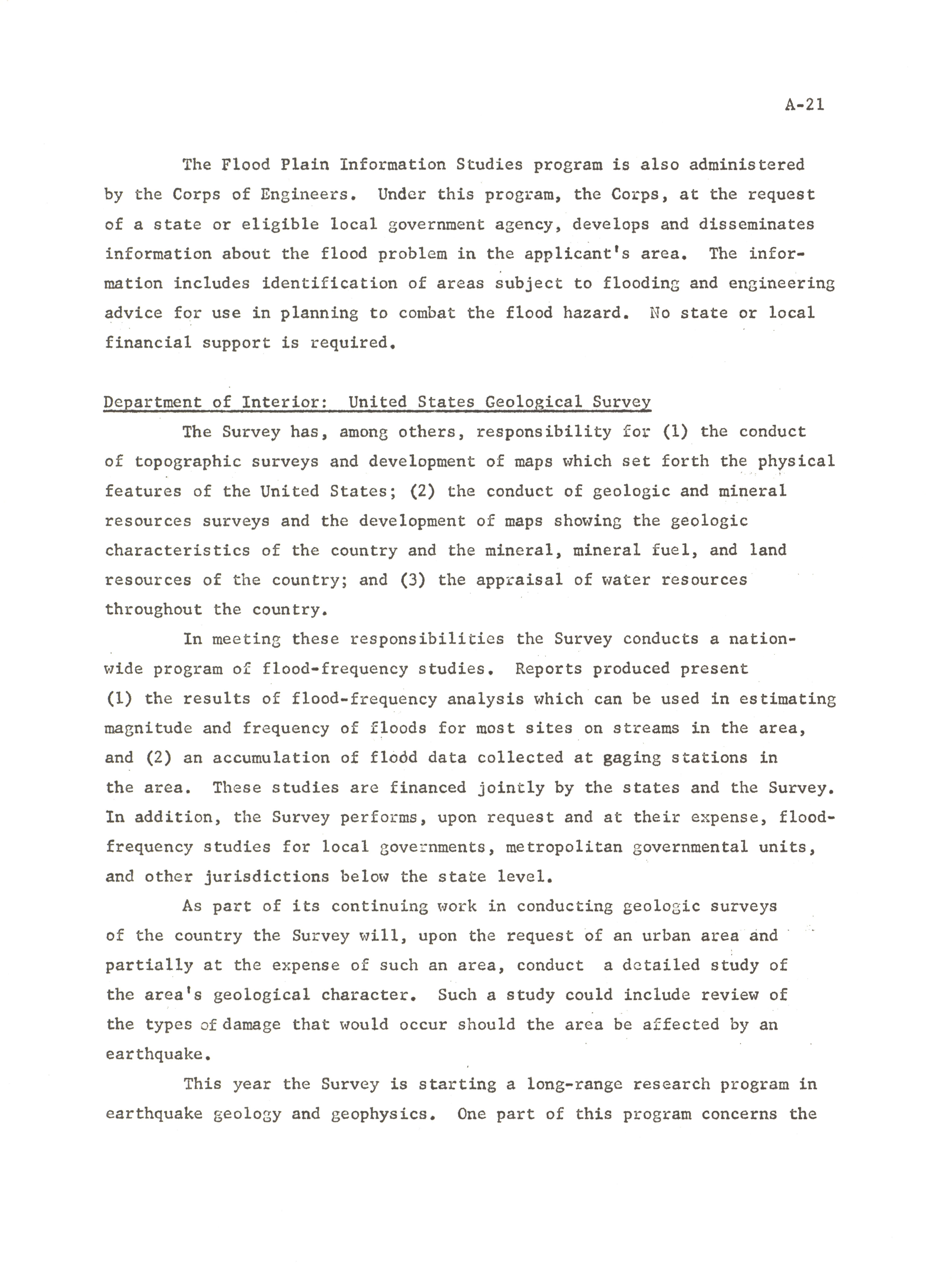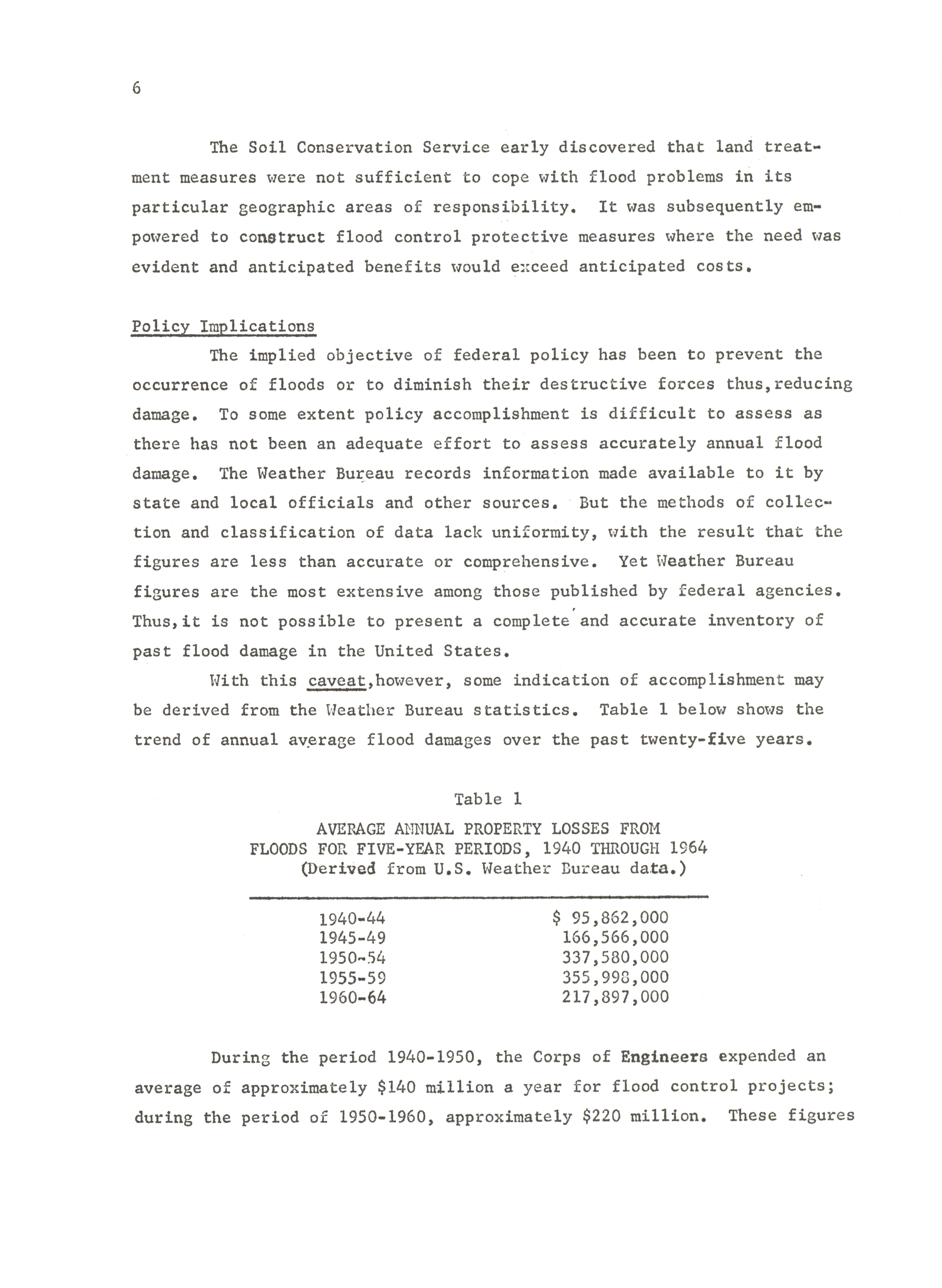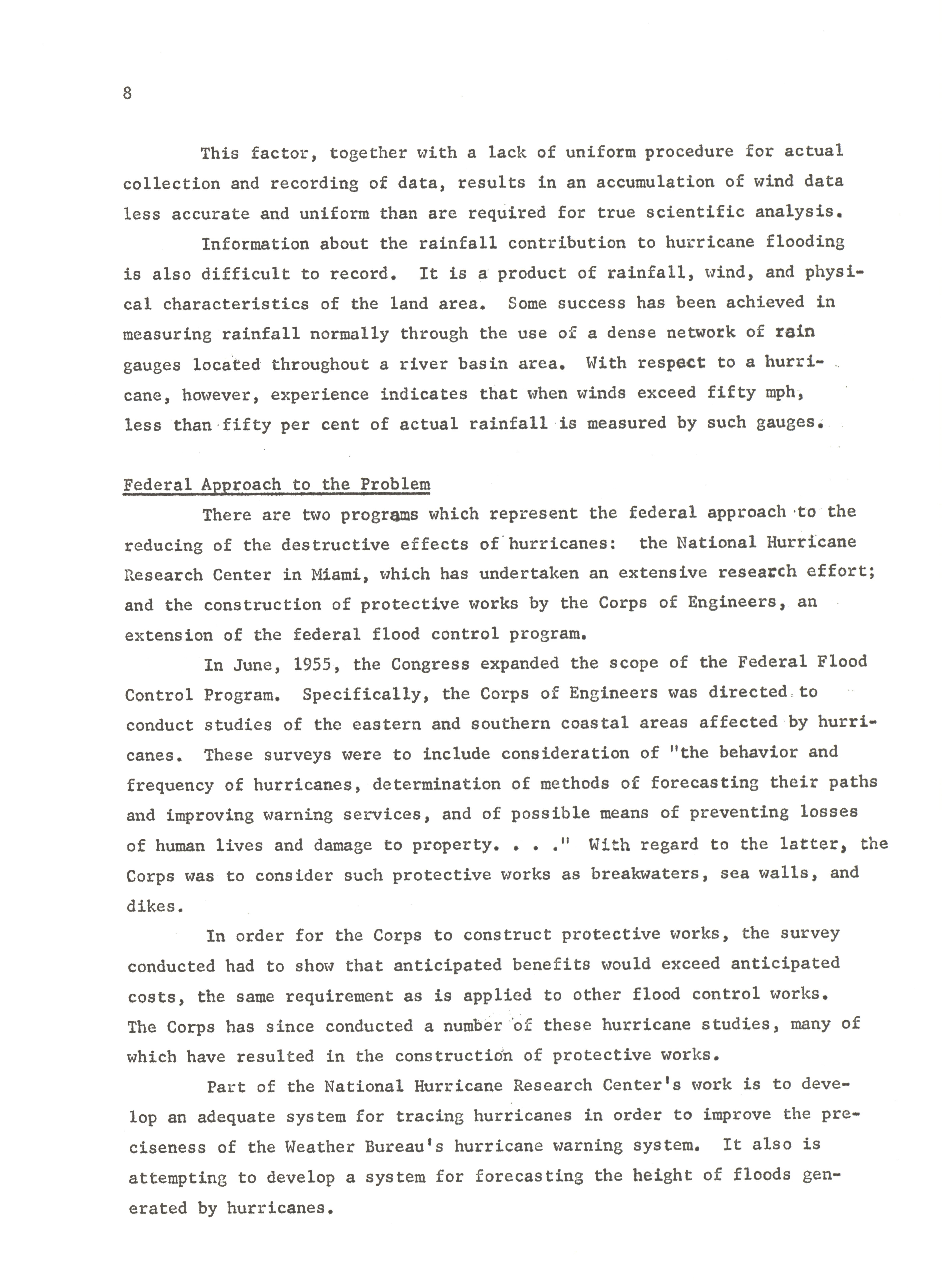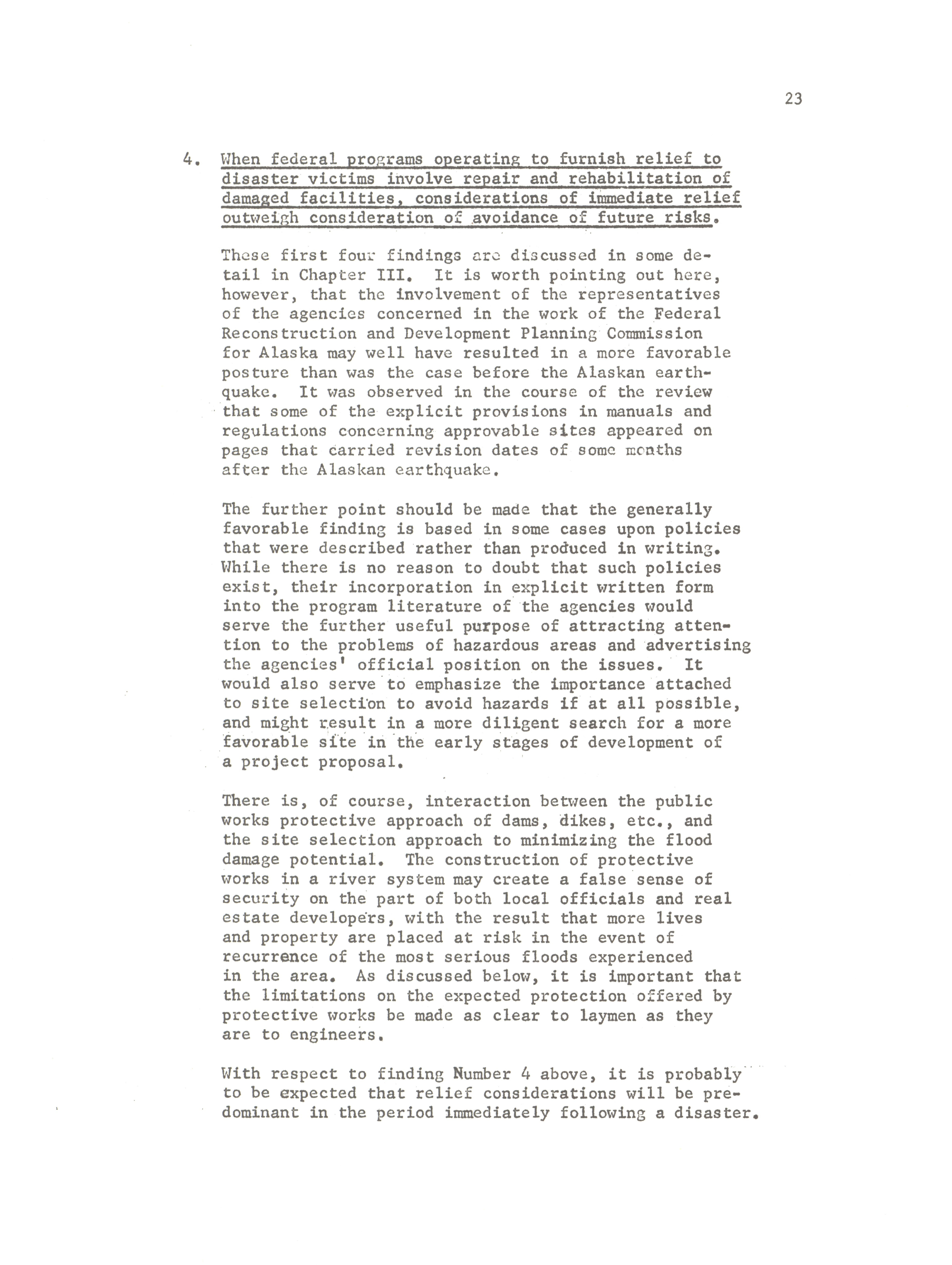 - "Report on a review of federal policy in grant, loan, and construction programs in areas of high risk of natural disaster damage", Dwight Ink Collection, Iowa State University Library Digital Collections