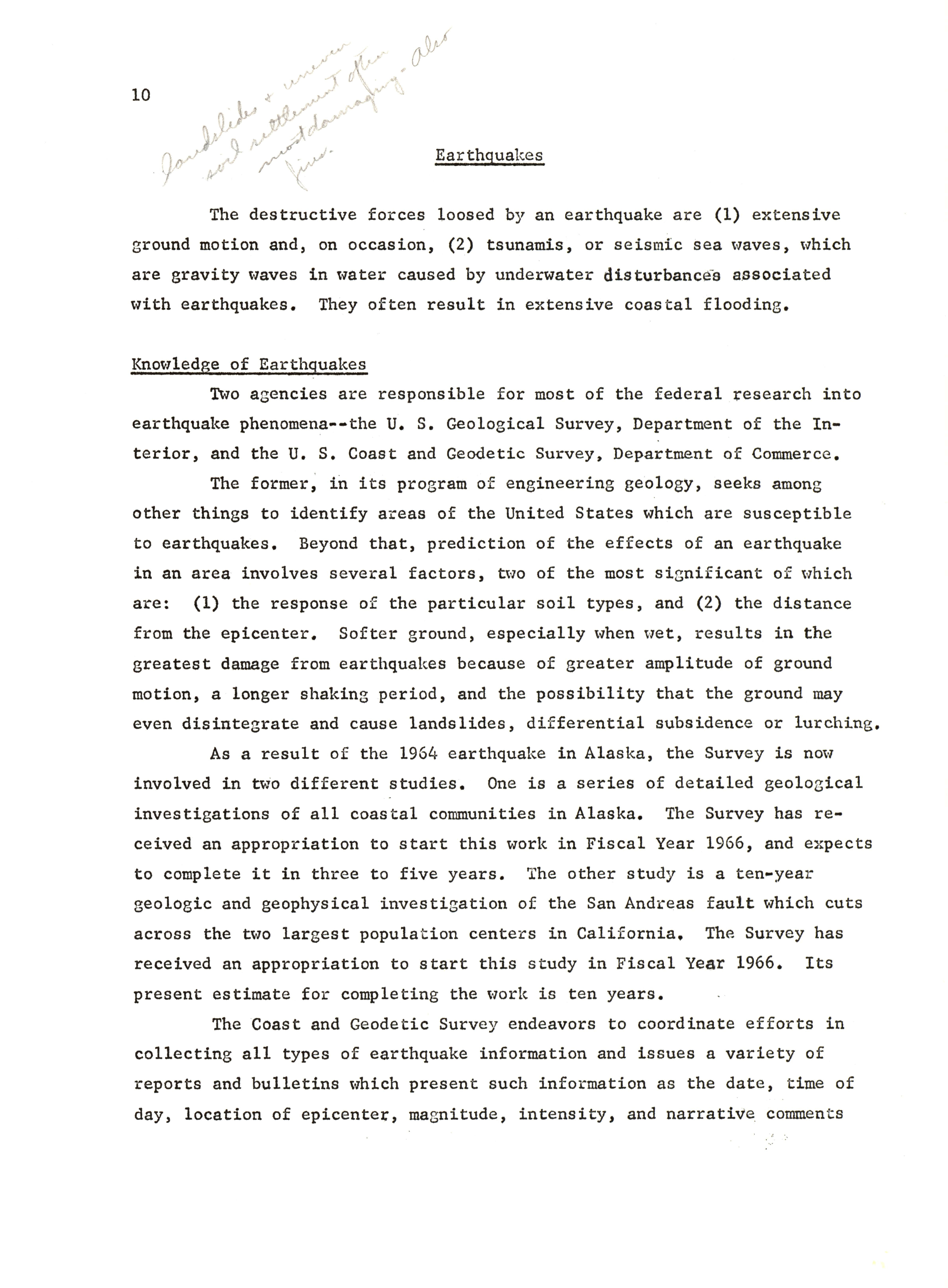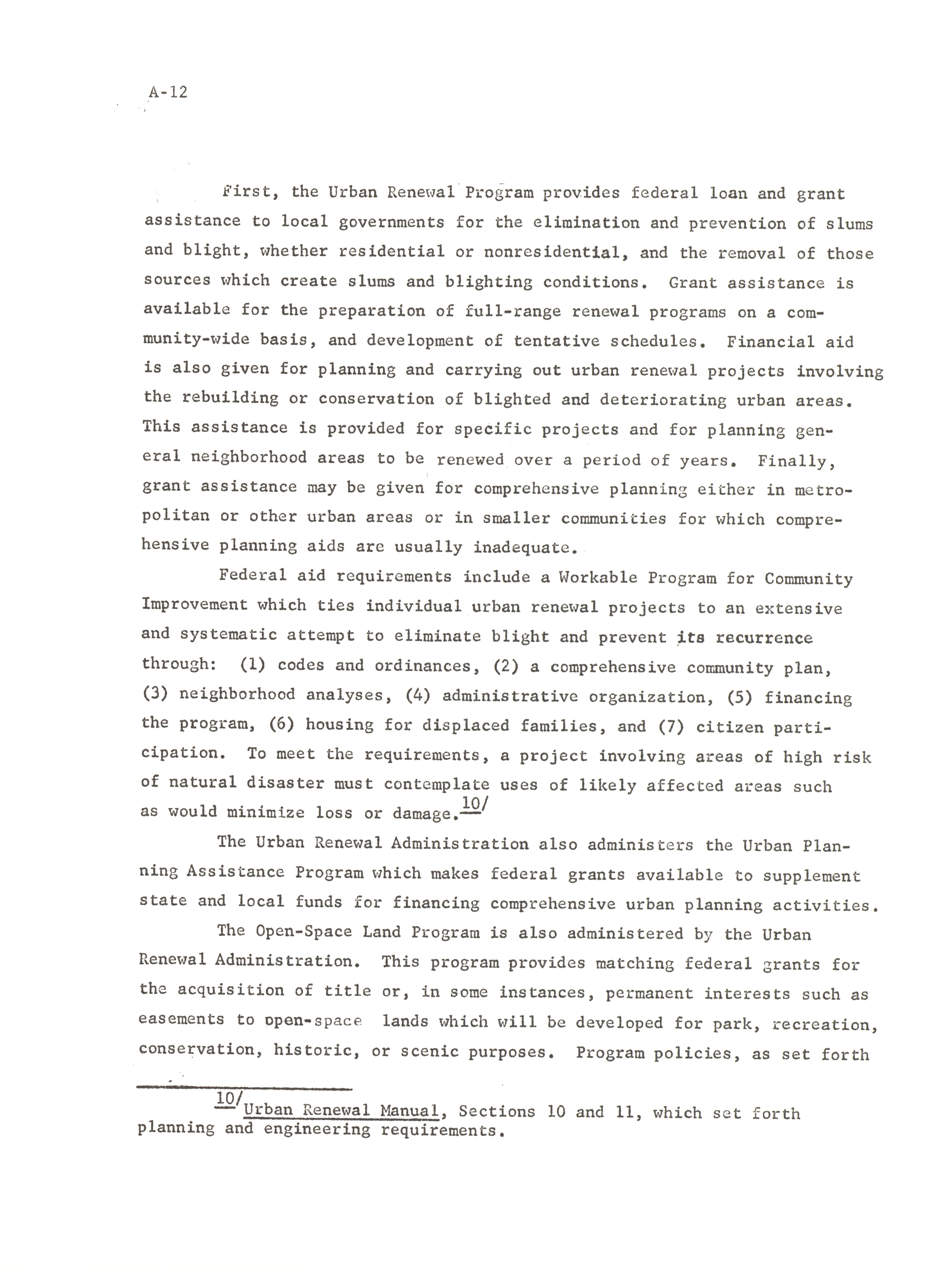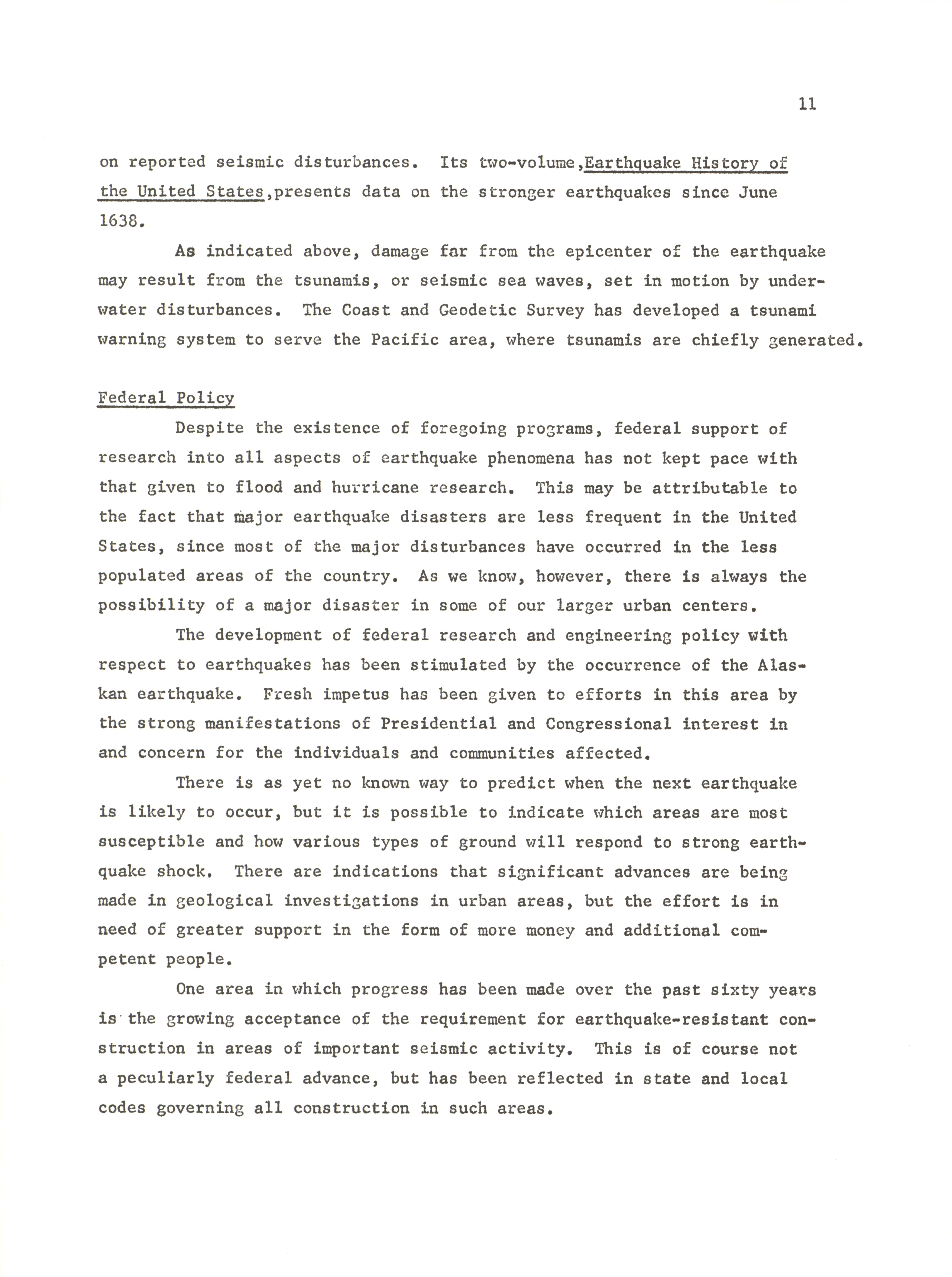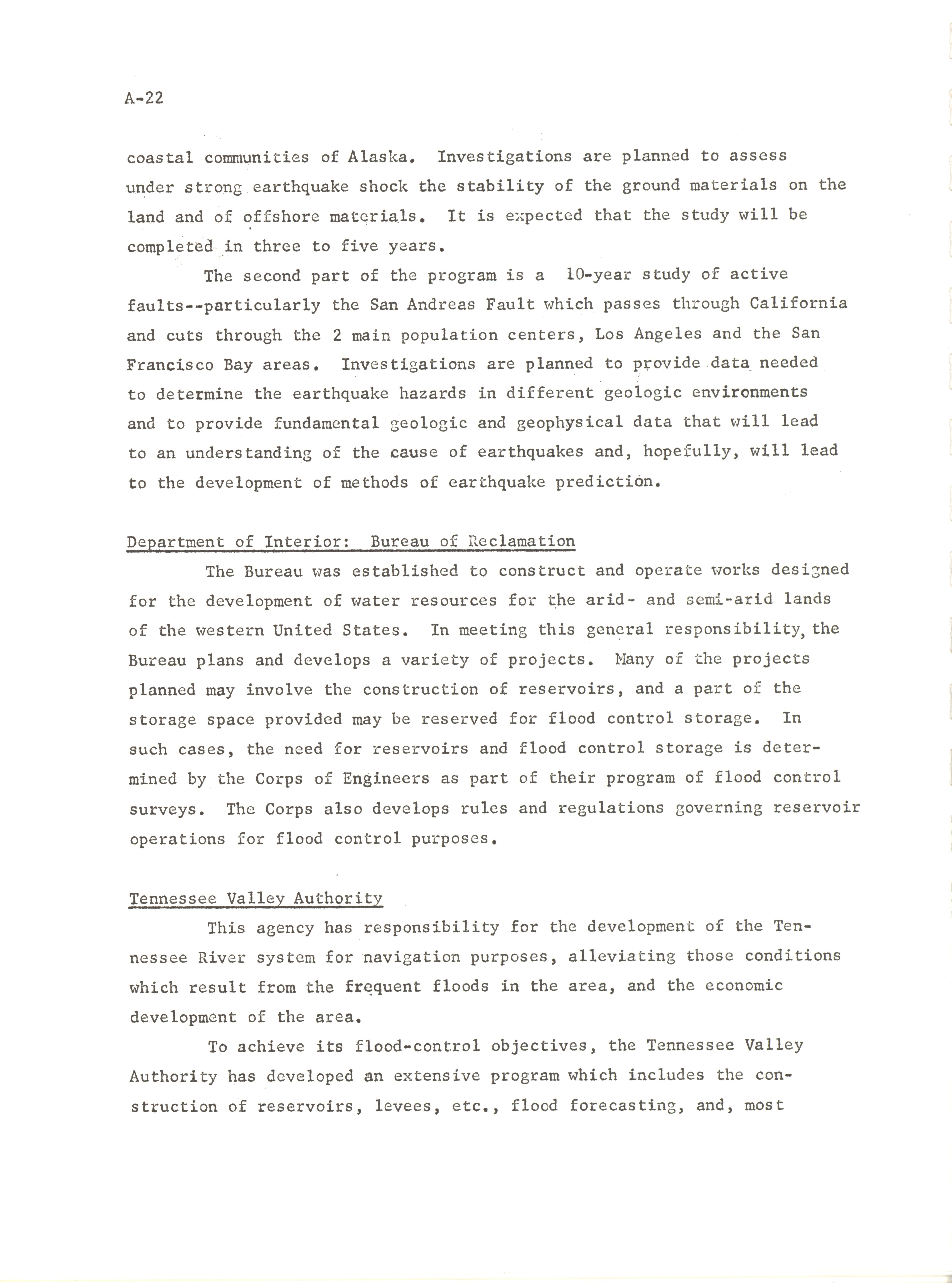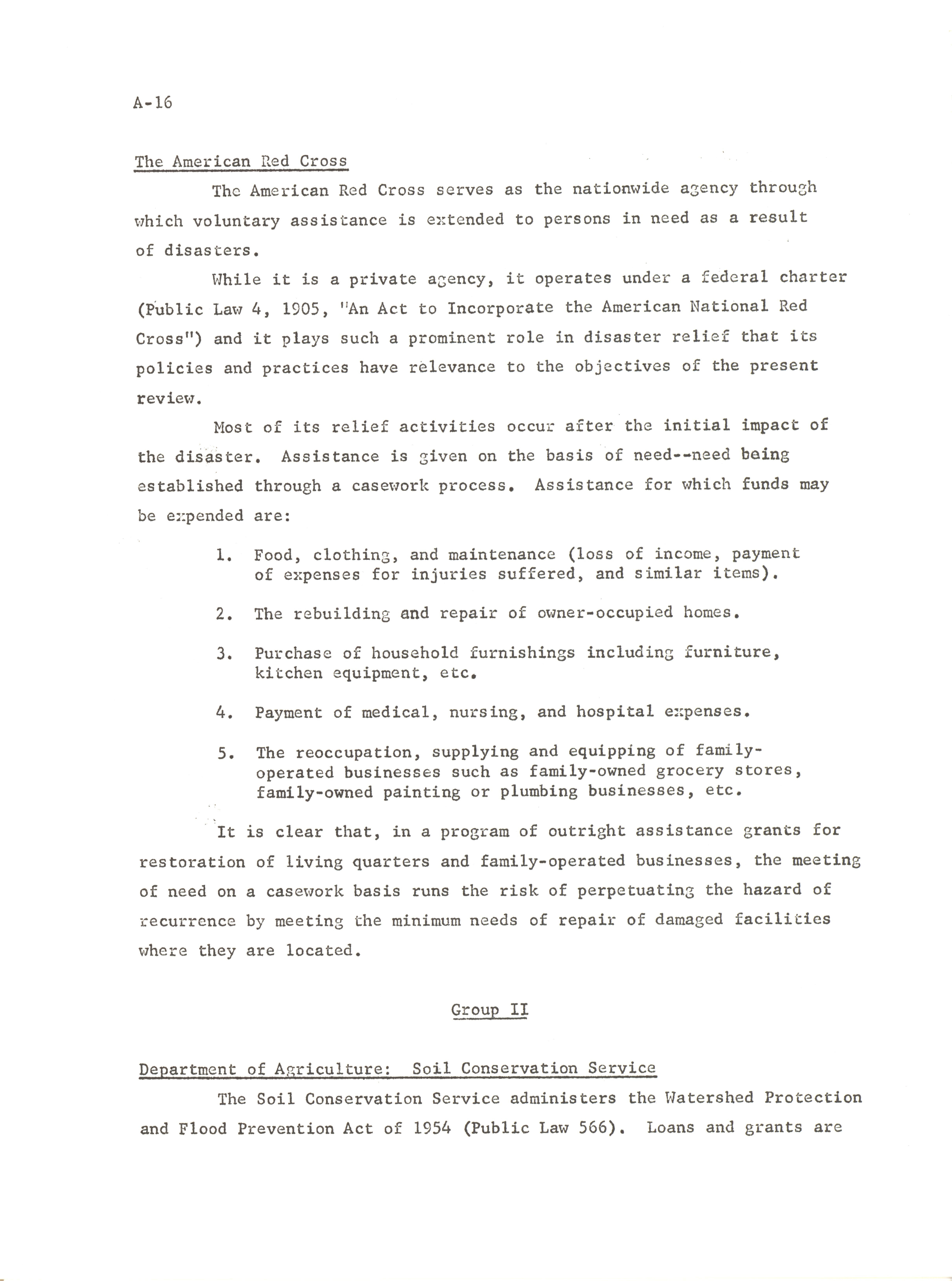 - "Report on a review of federal policy in grant, loan, and construction programs in areas of high risk of natural disaster damage", Dwight Ink Collection, Iowa State University Library Digital Collections