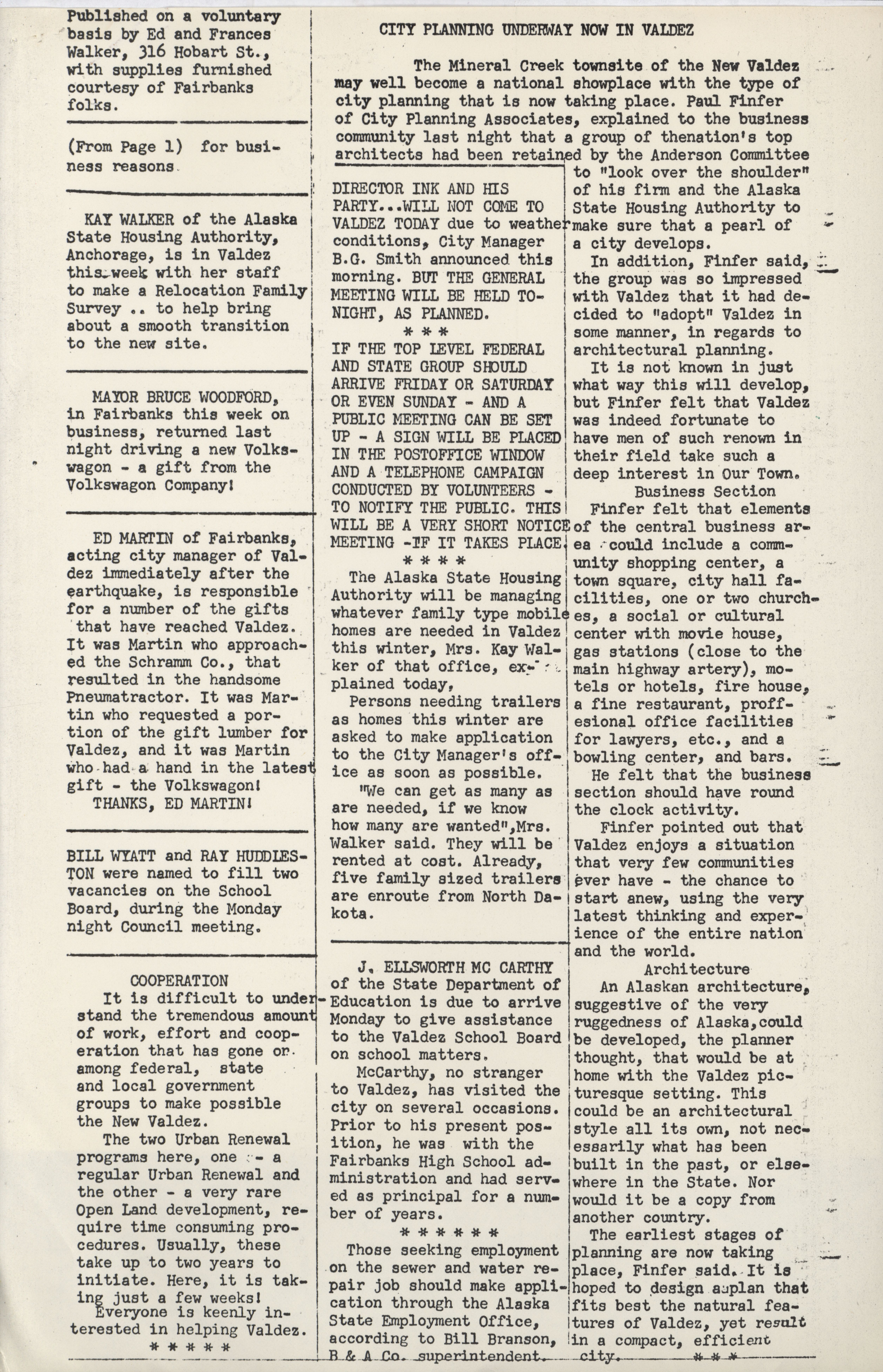 - "The Valdez earthquake bugle, June 25, 1964", Dwight Ink Collection, Iowa State University Library Digital Collections