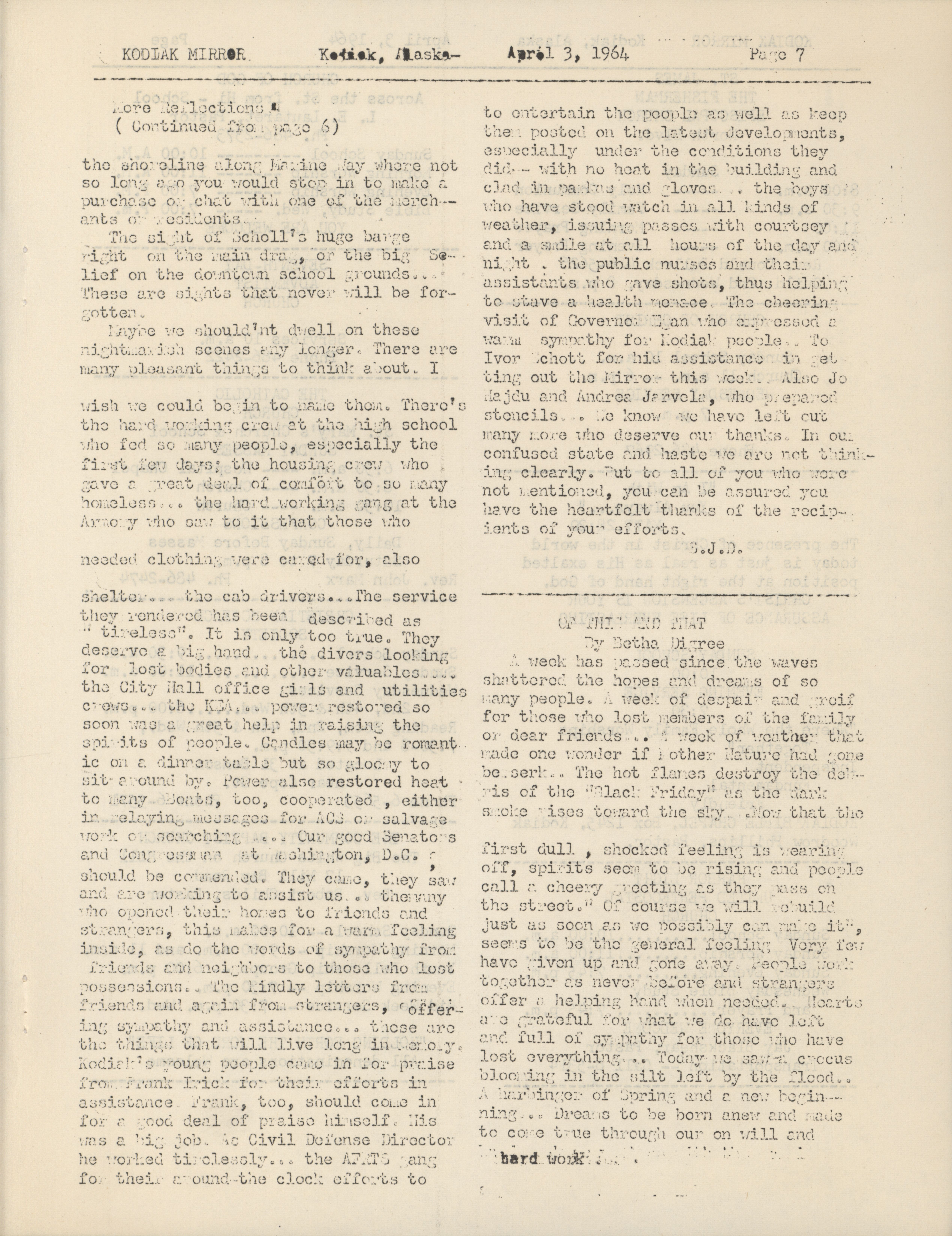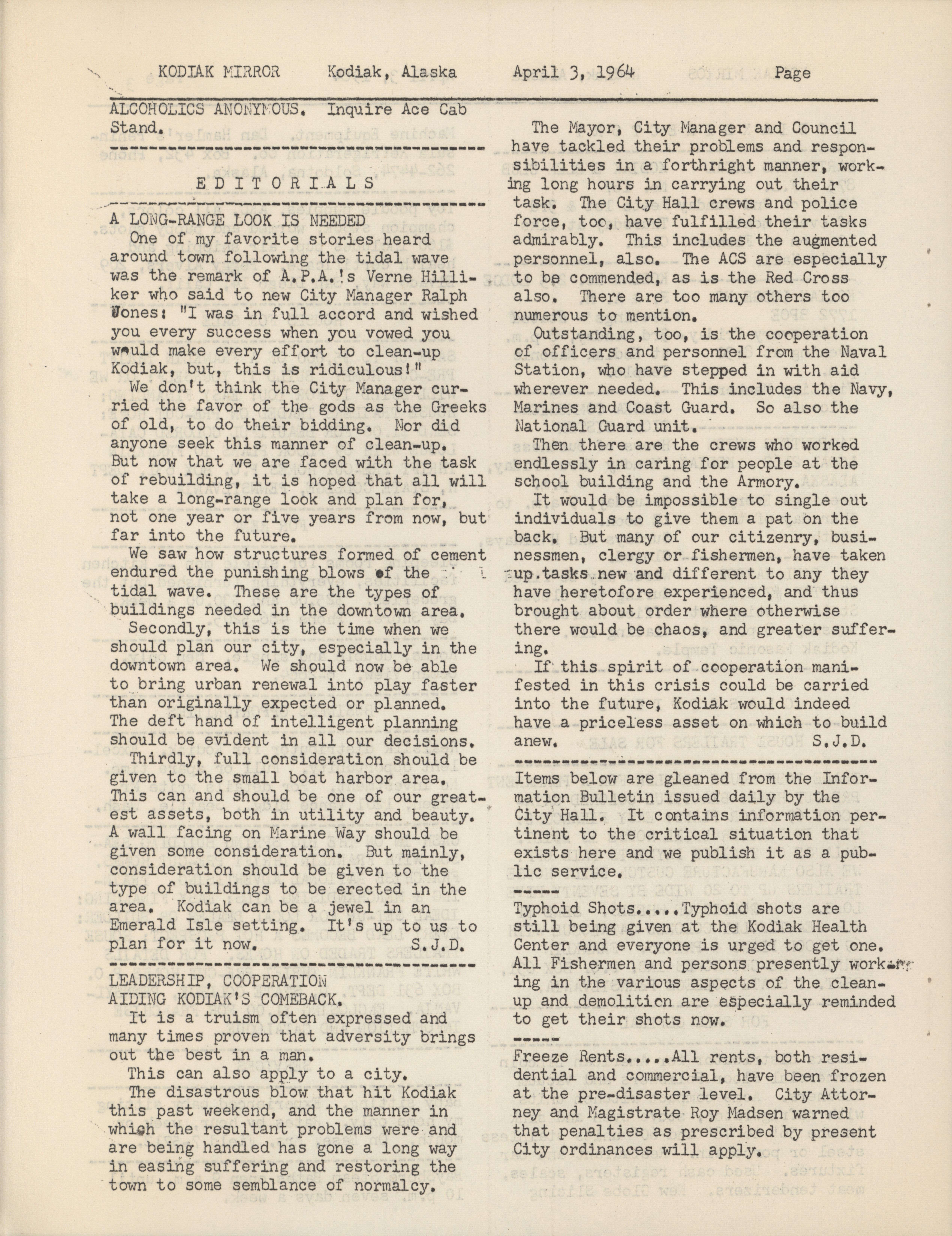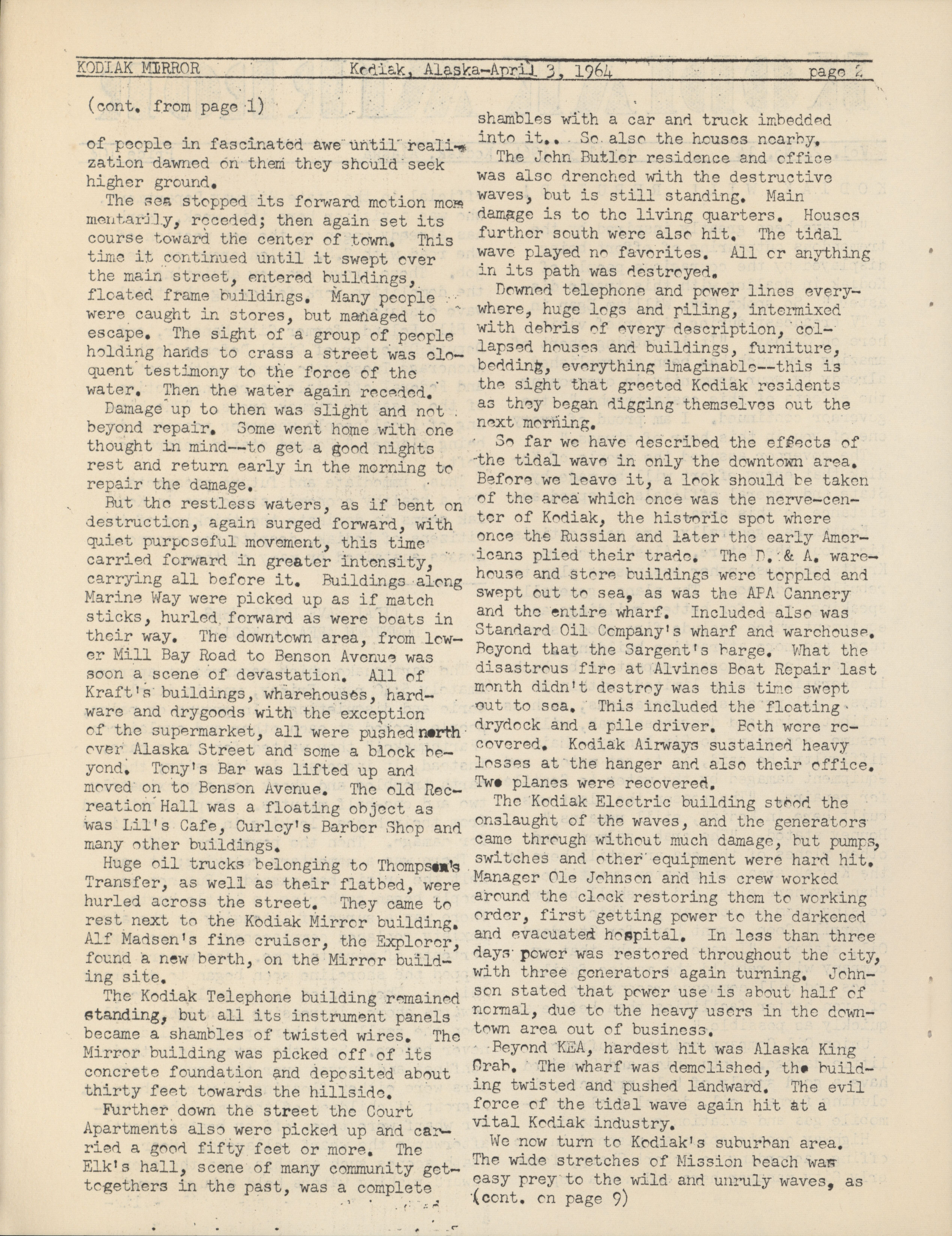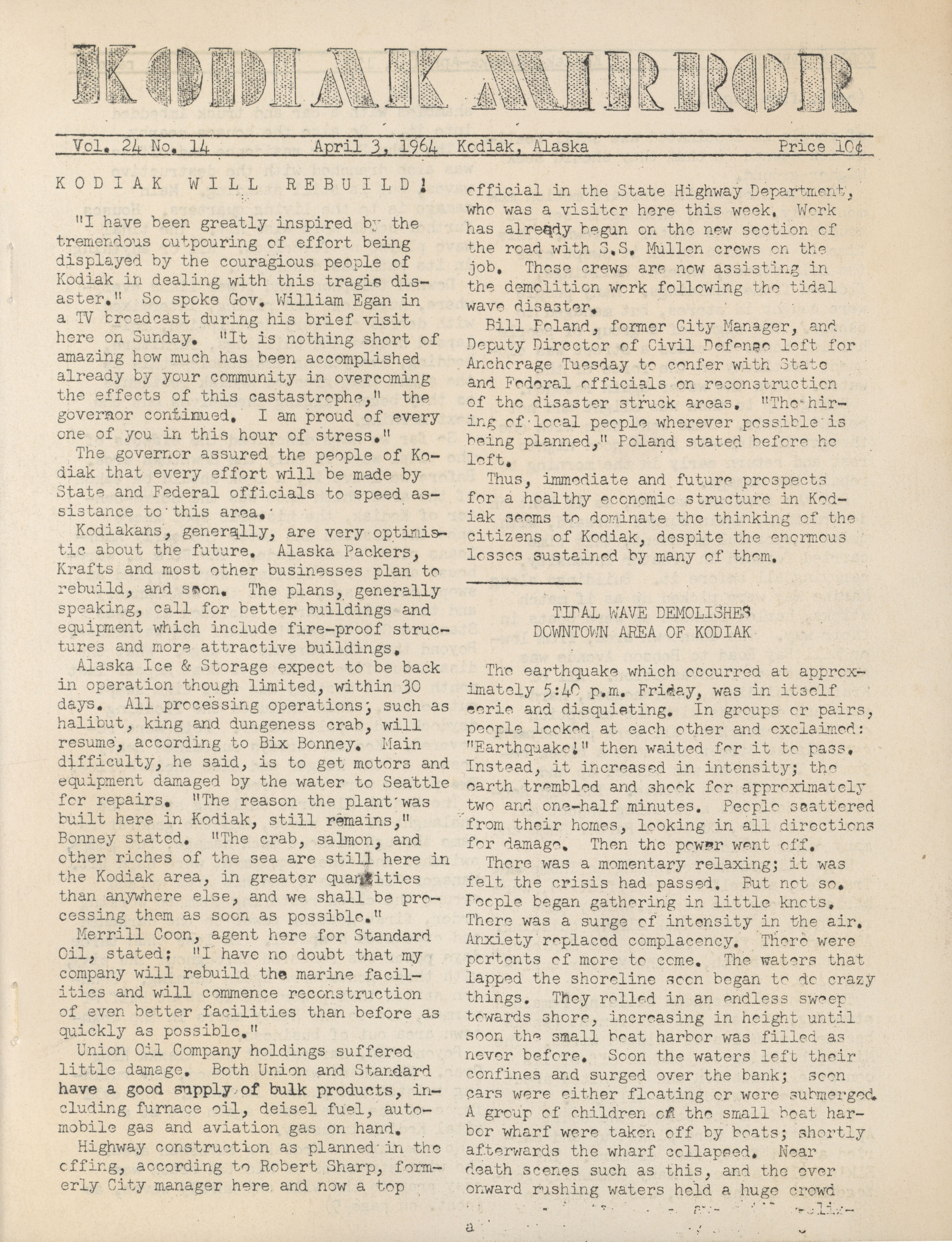 - "Kodiak mirror, April 3, 1964", Dwight Ink Collection, Iowa State University Library Digital Collections