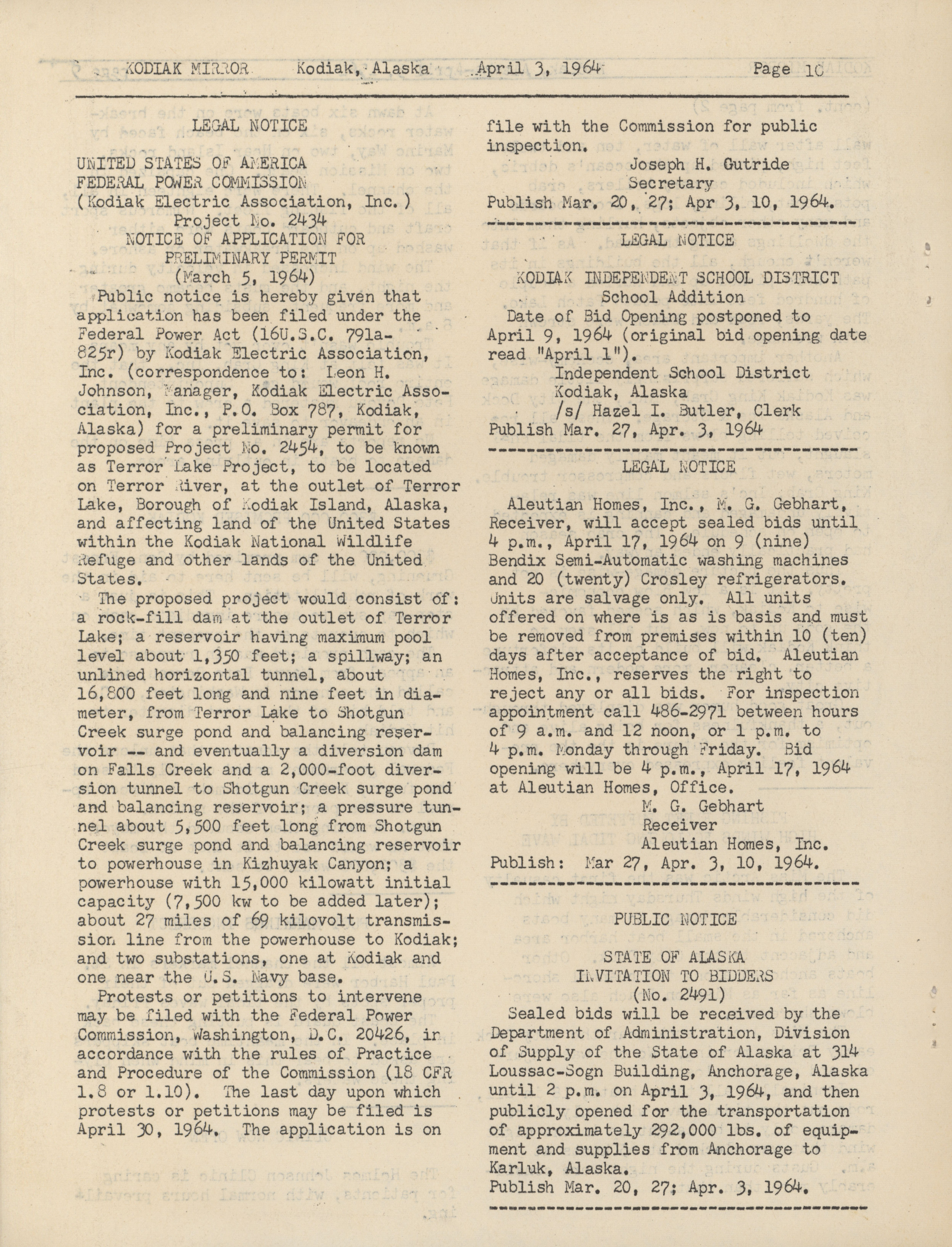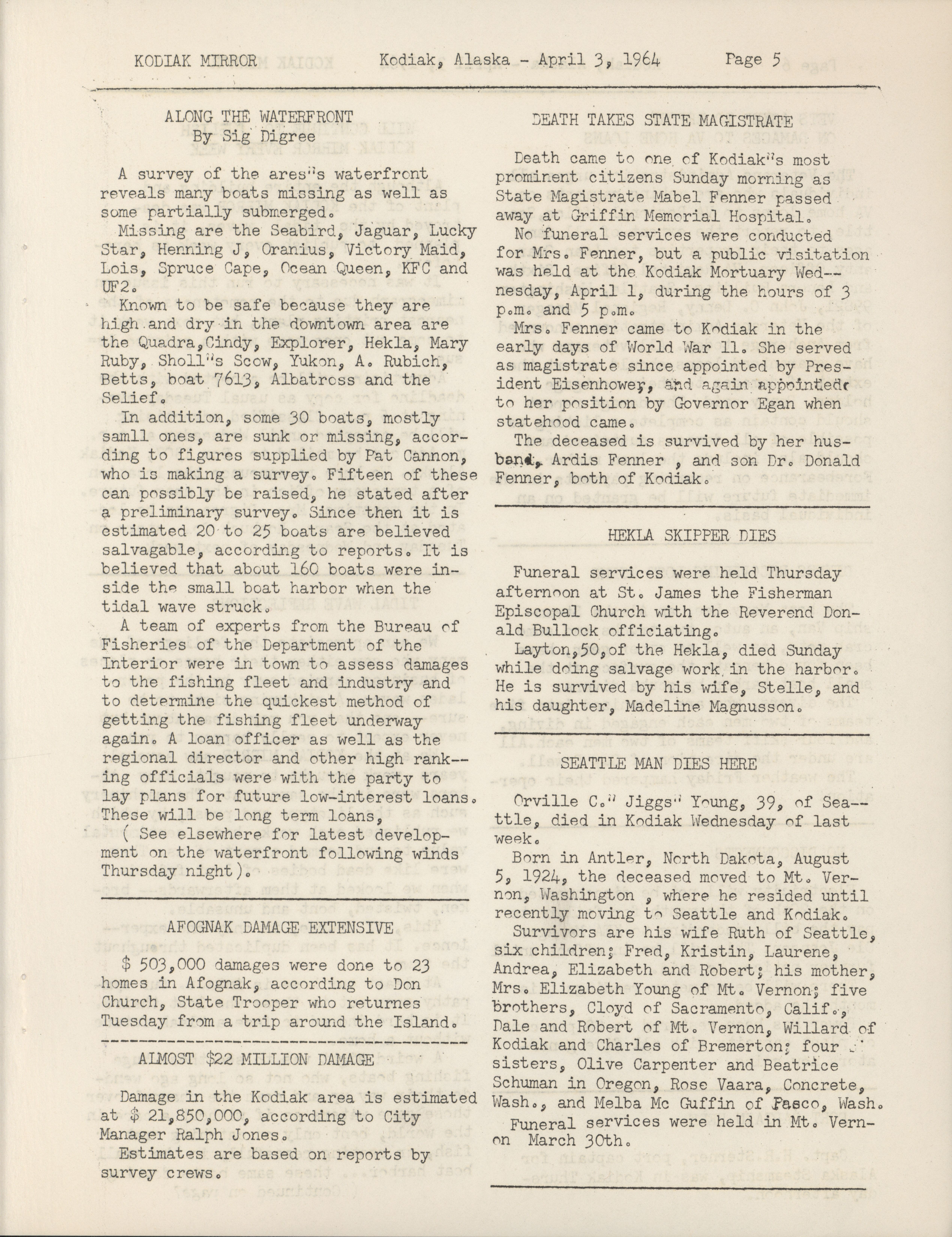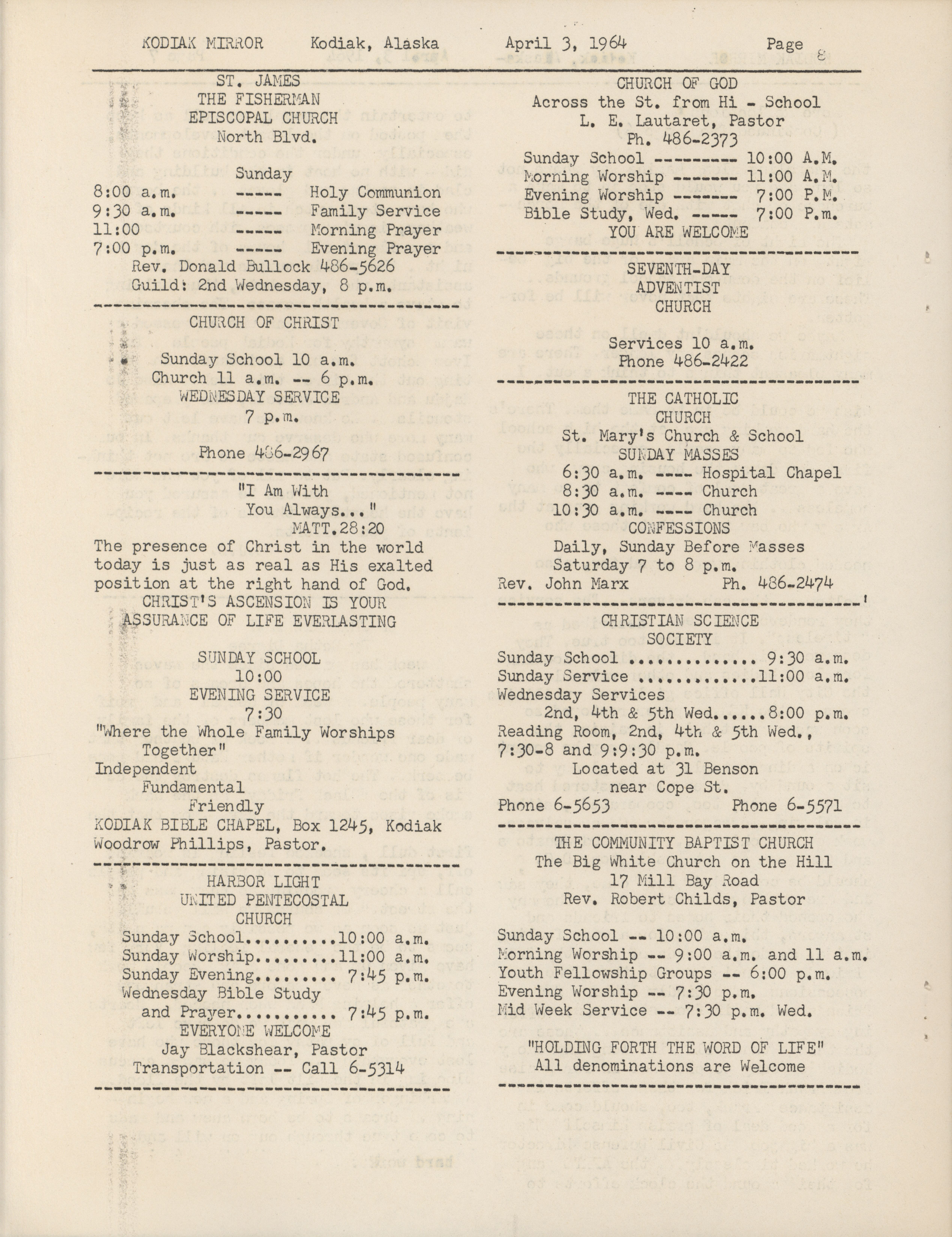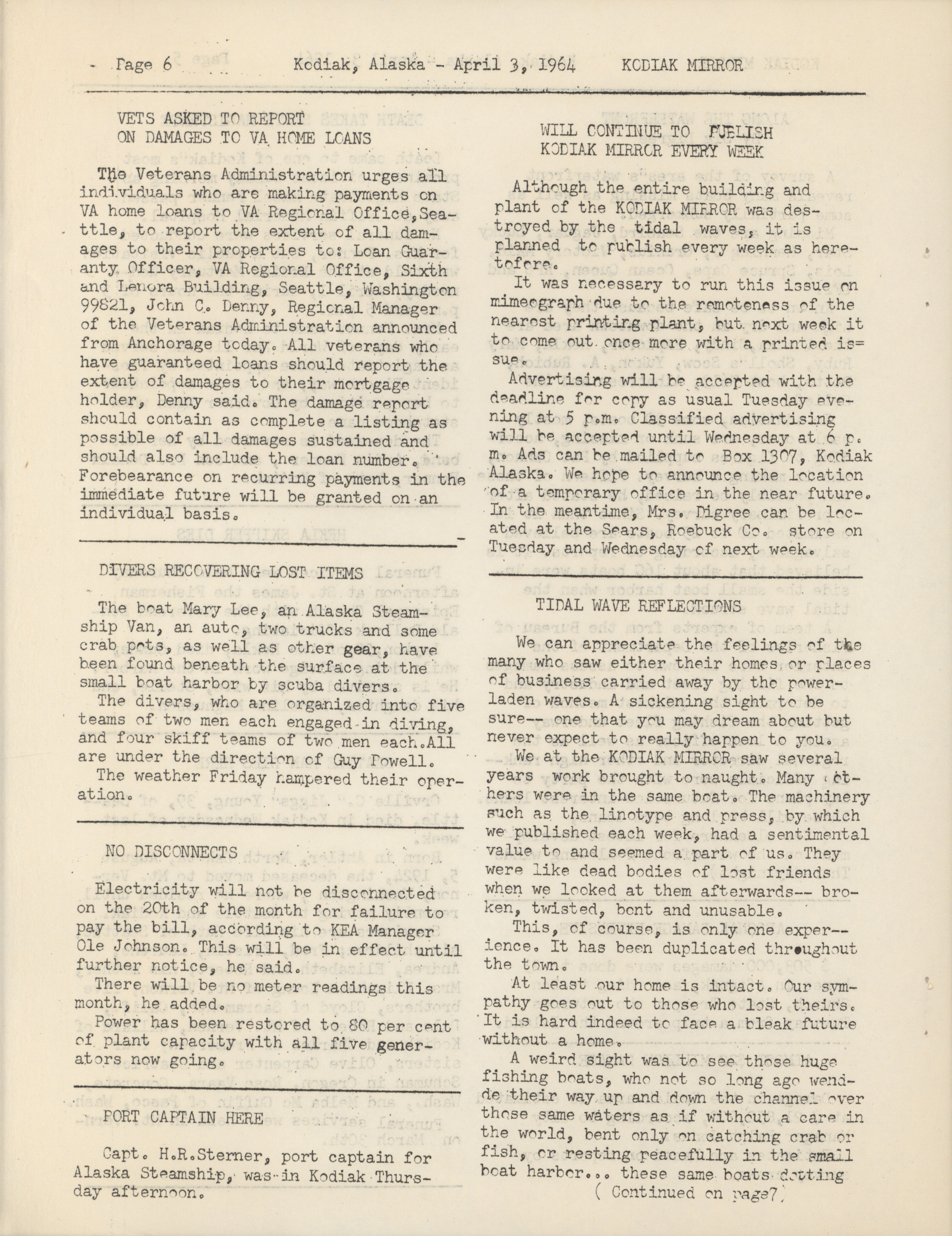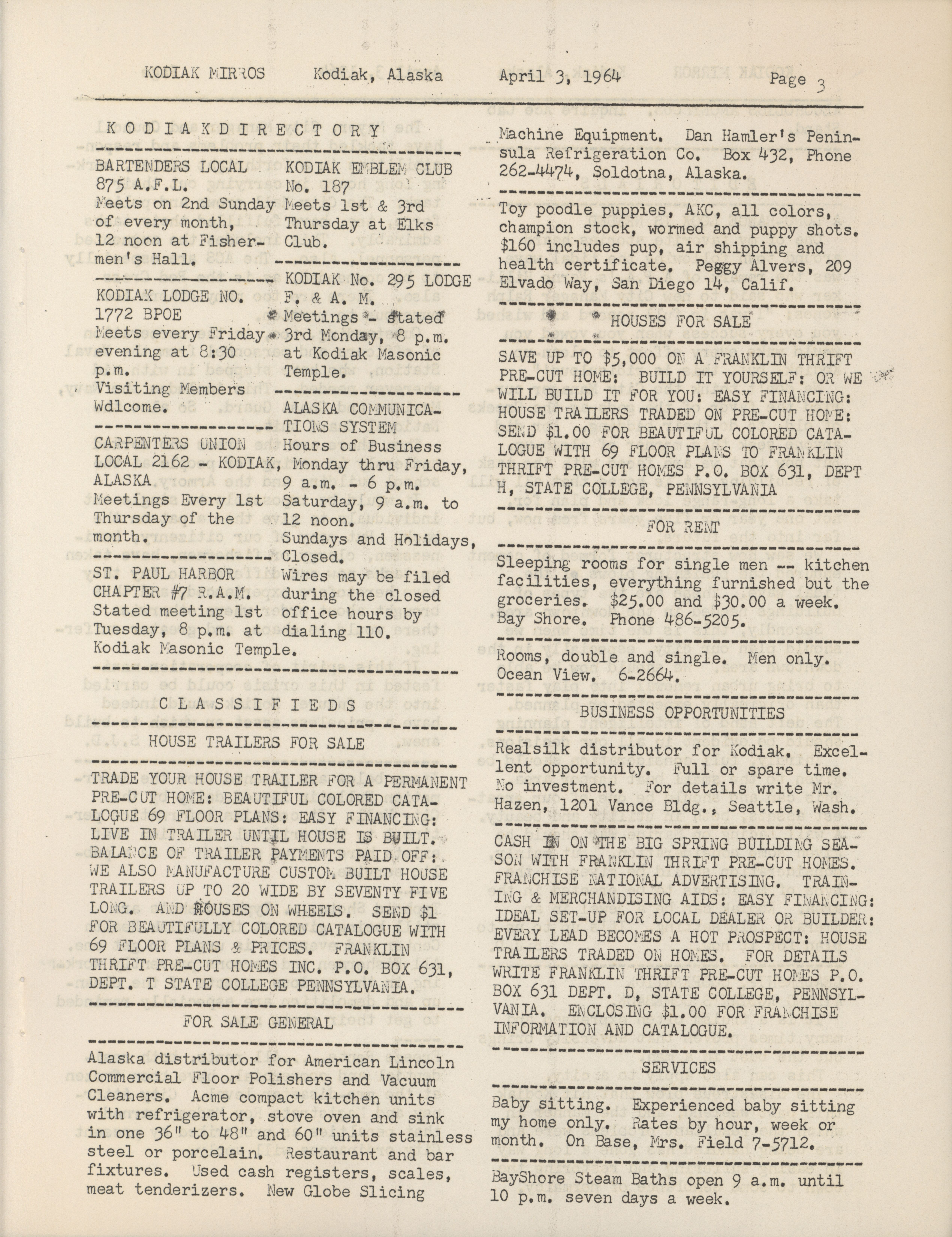 - "Kodiak mirror, April 3, 1964", Dwight Ink Collection, Iowa State University Library Digital Collections