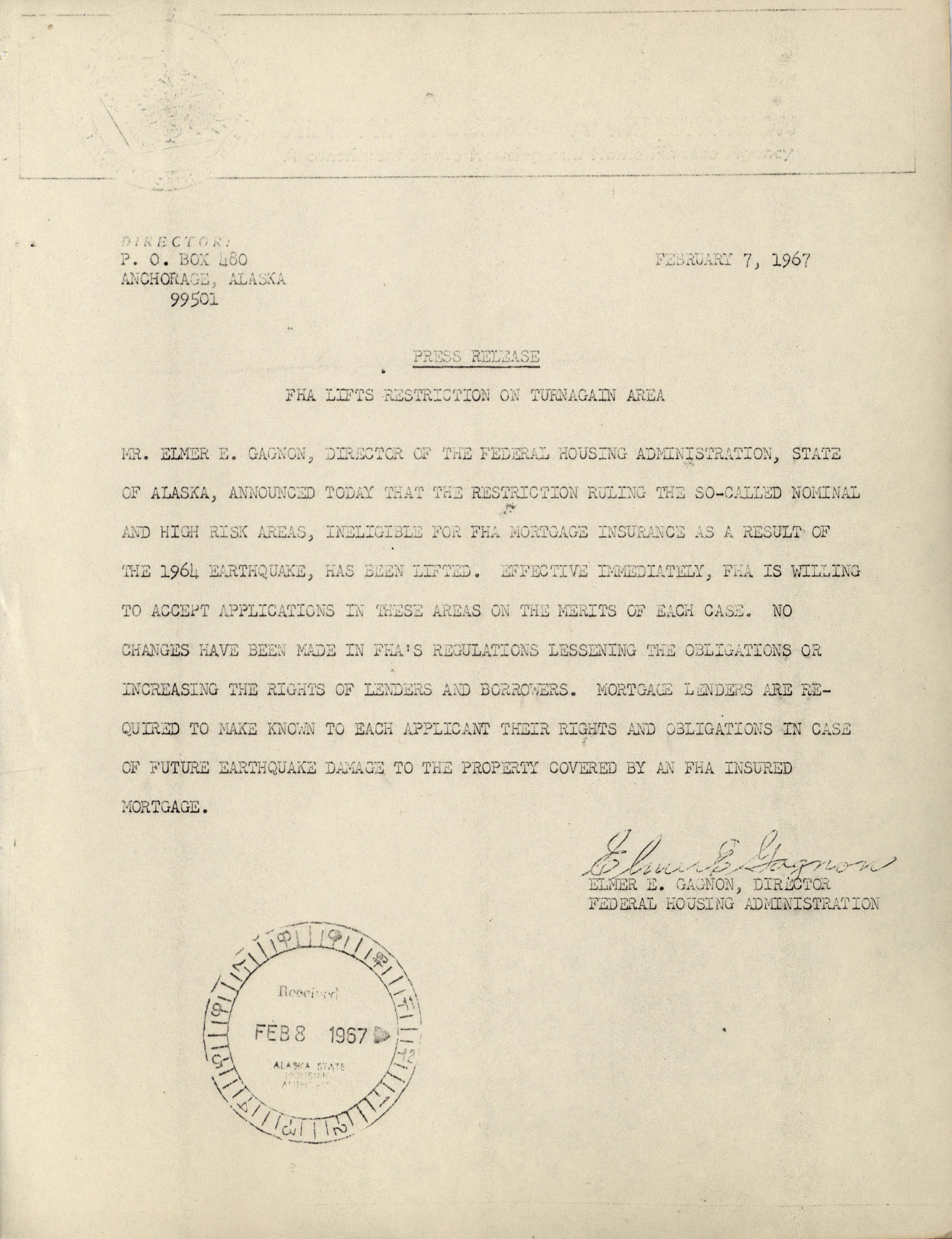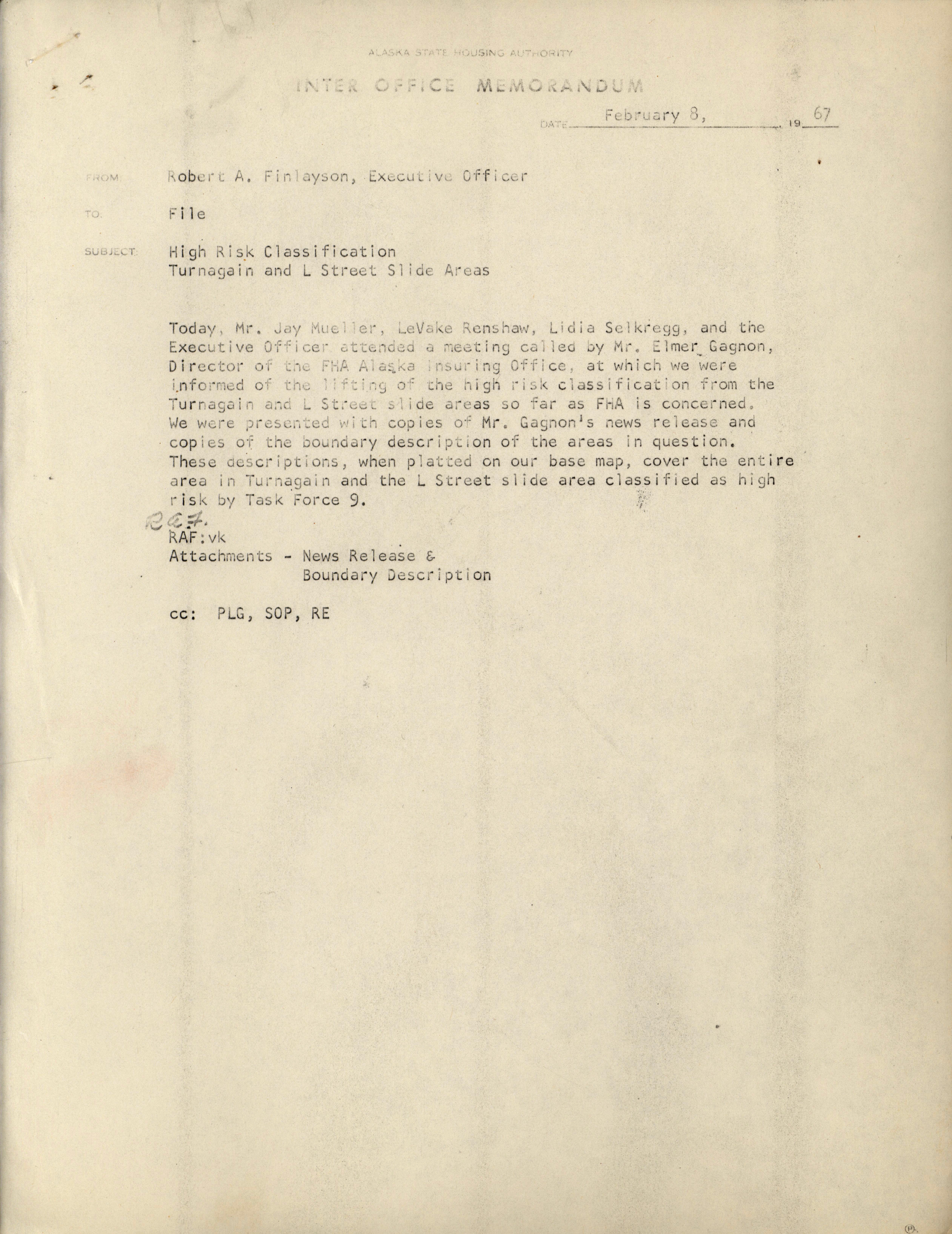 - Robert A. Finlayson memorandum, February 8, 1967