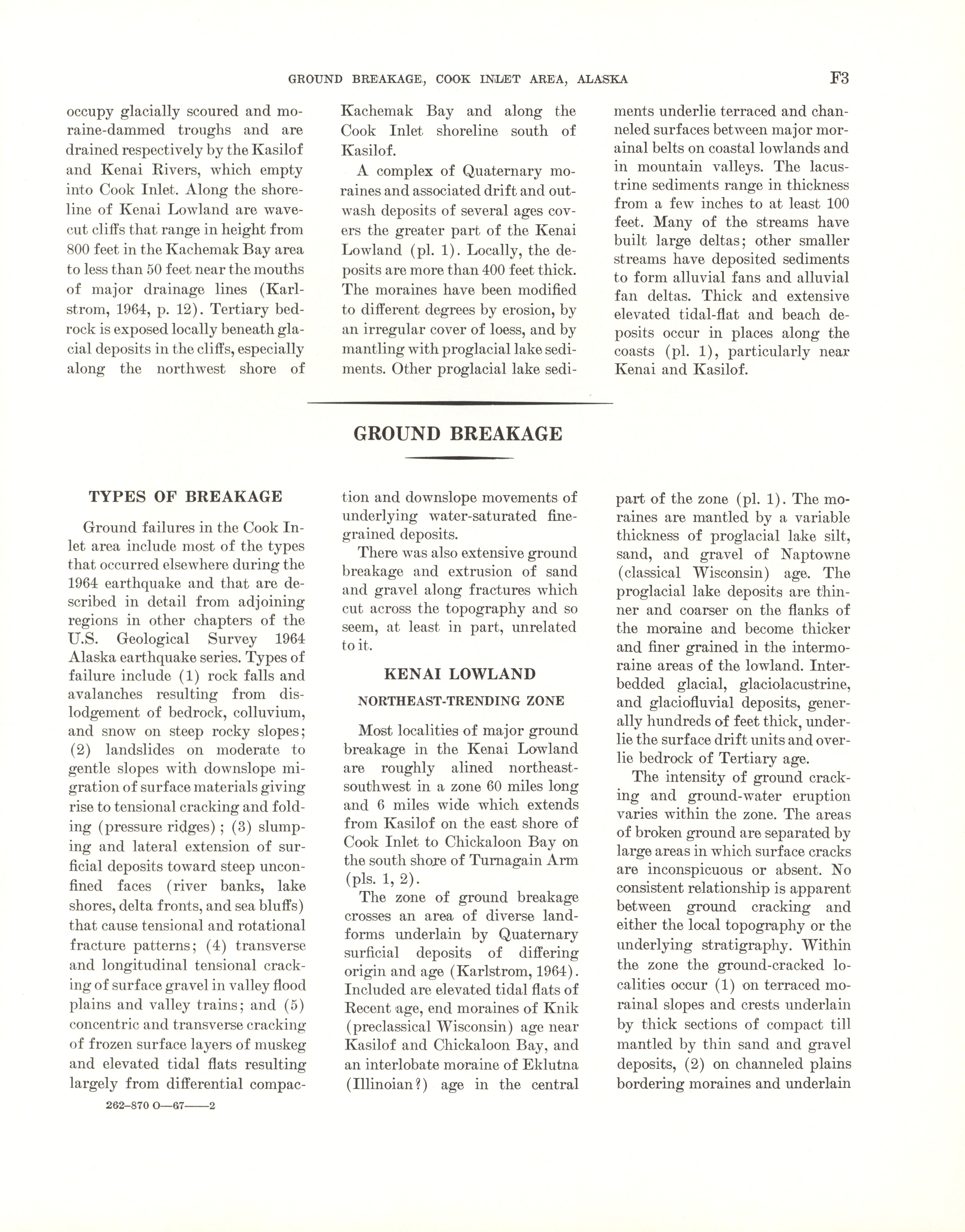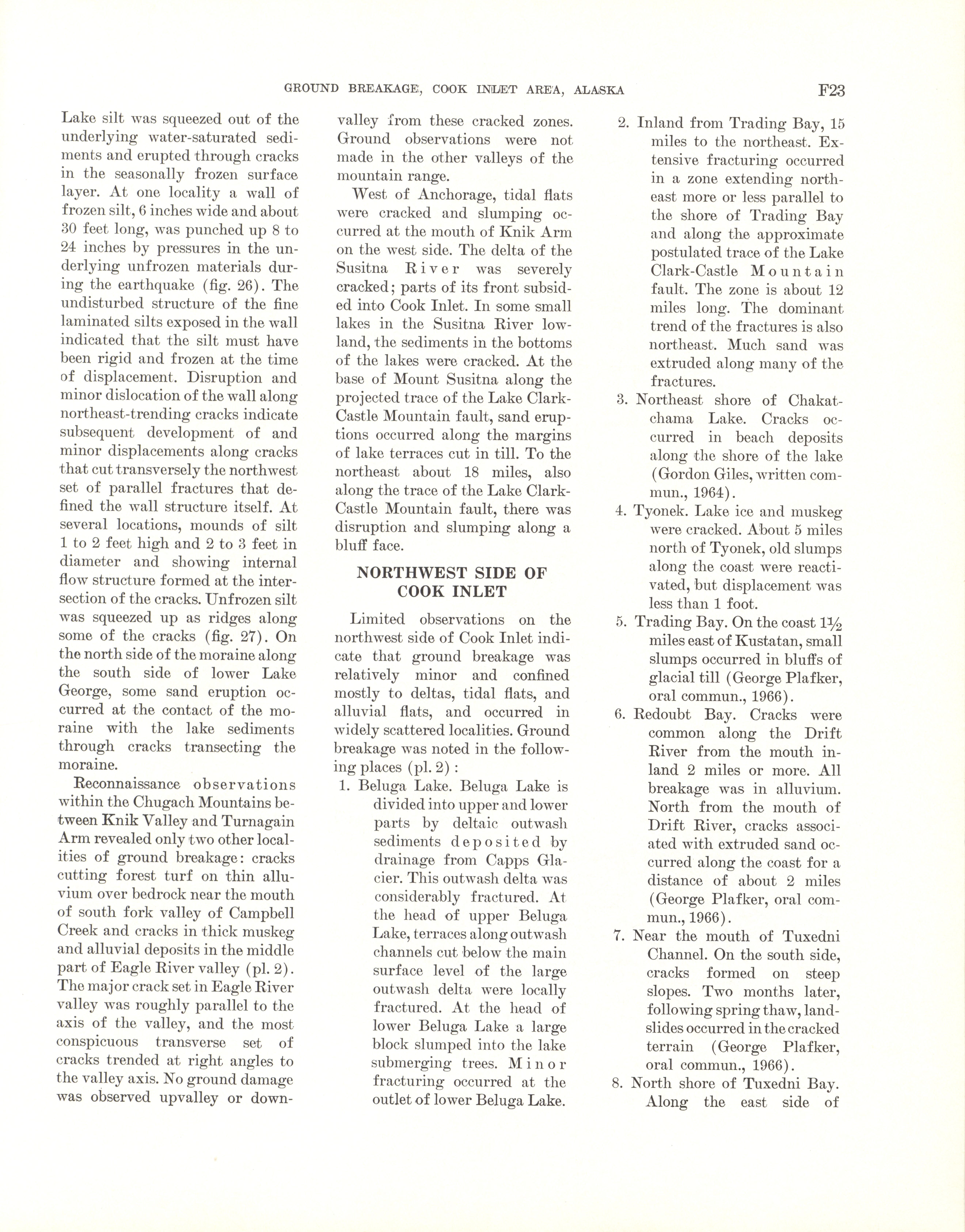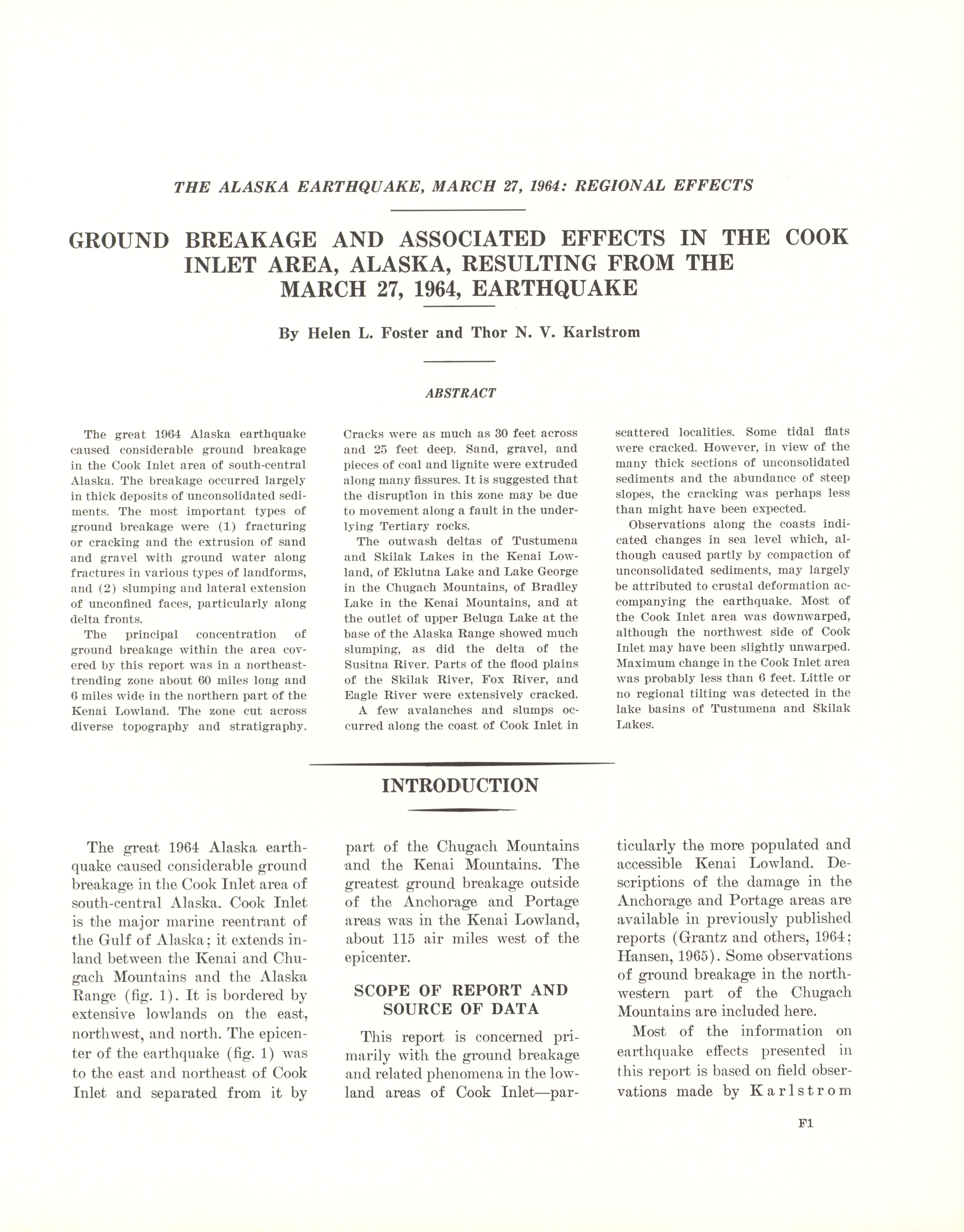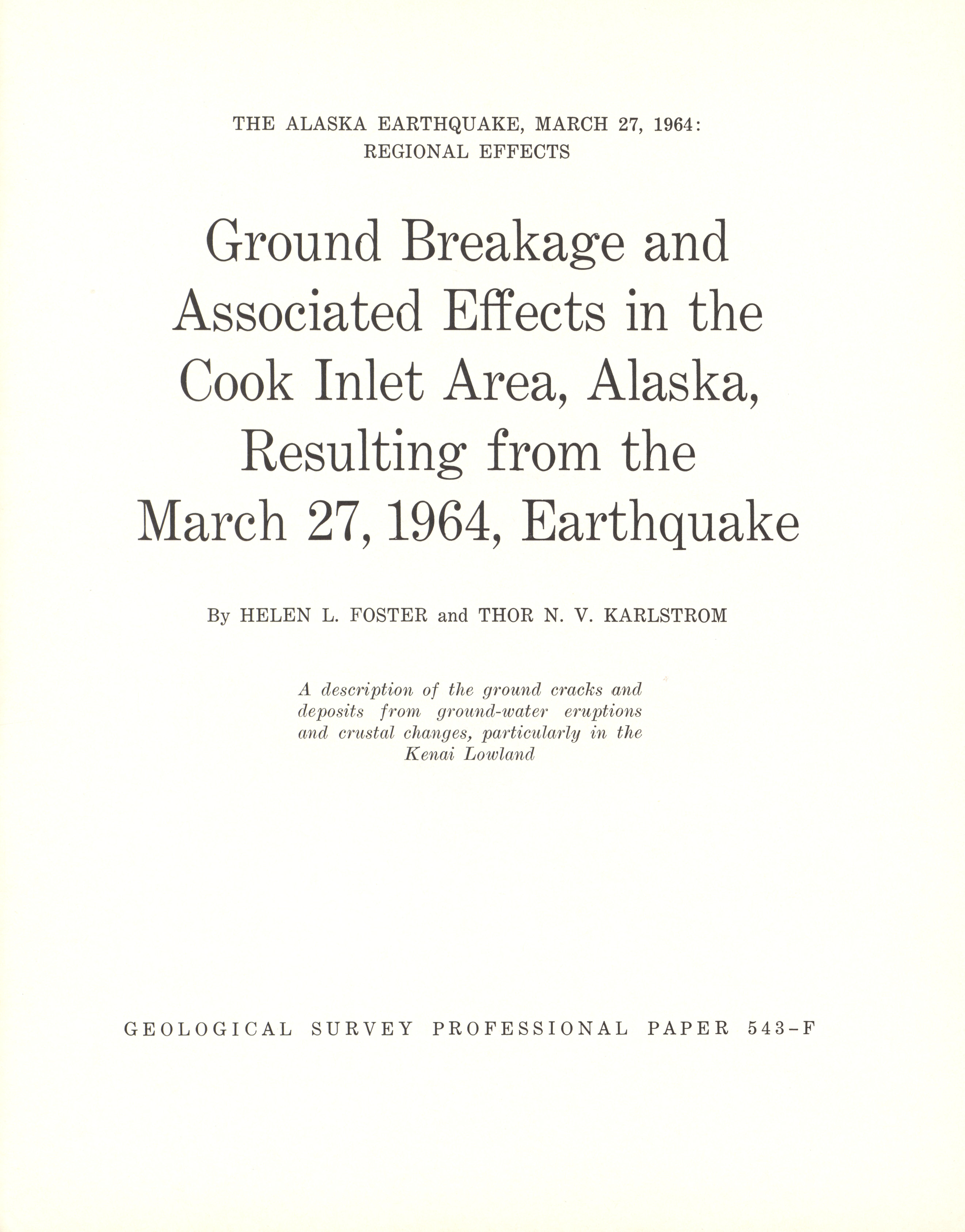 - Geological Survey professional paper 543F: regional effects, ground breakage in Cook Inlet area, 1967