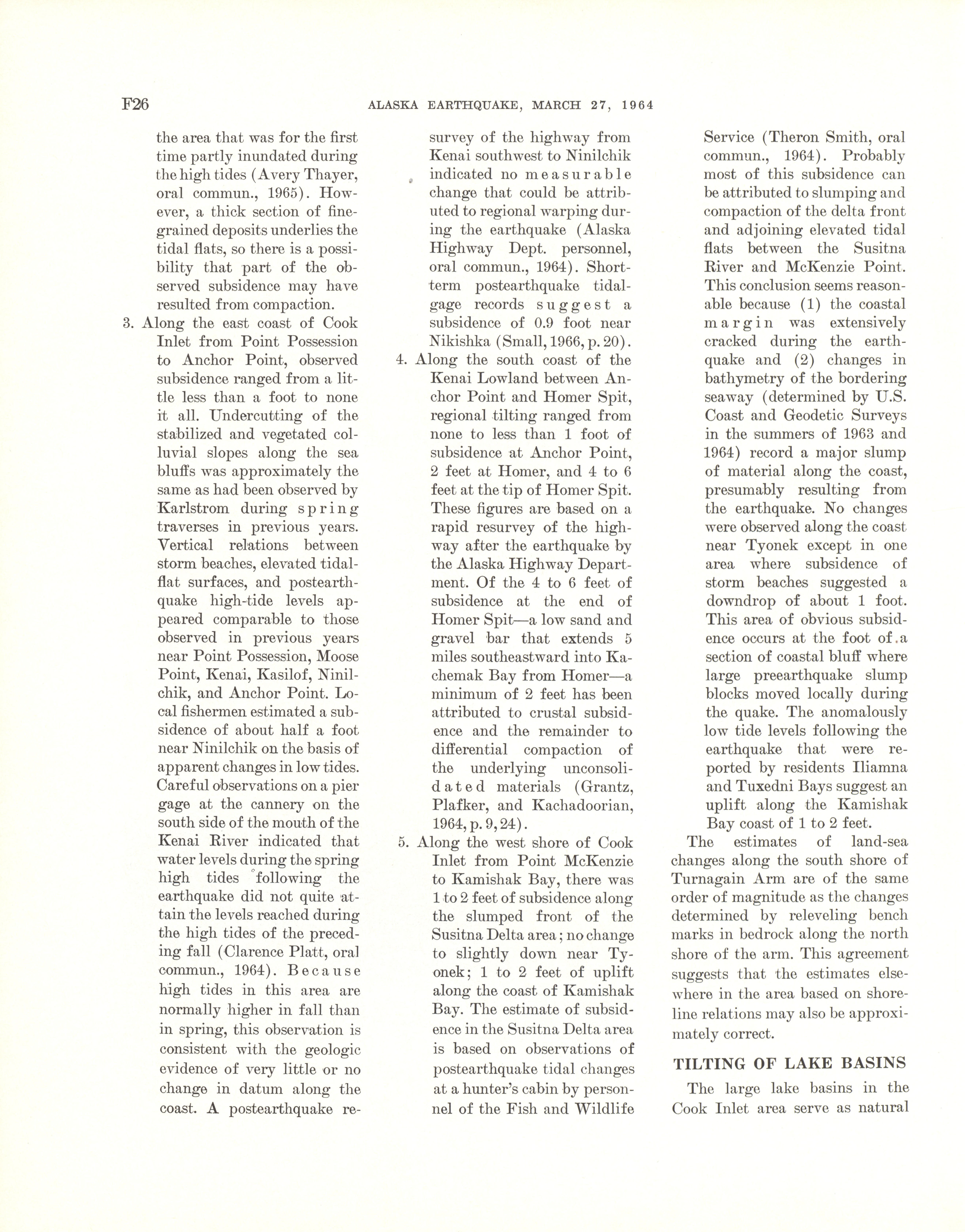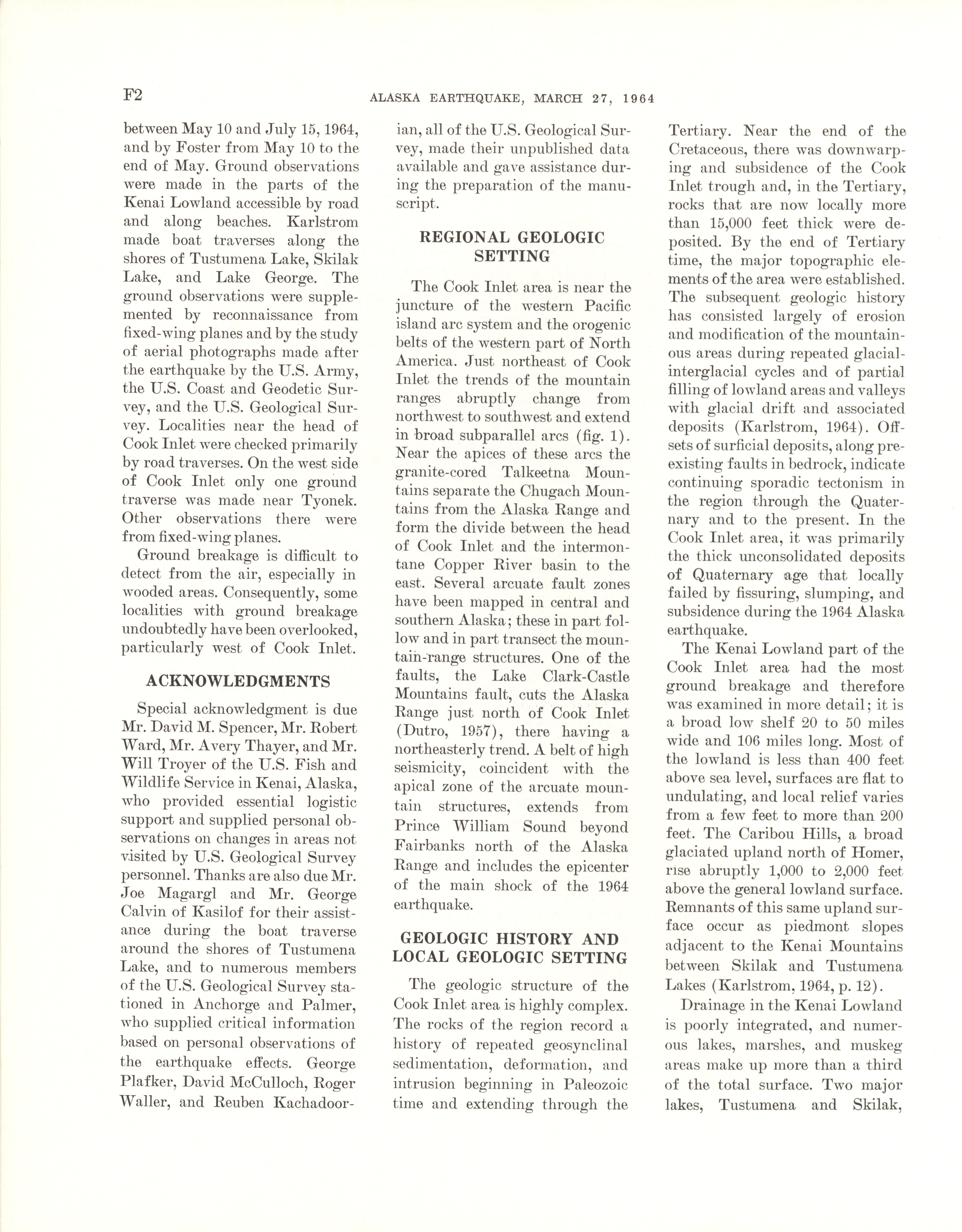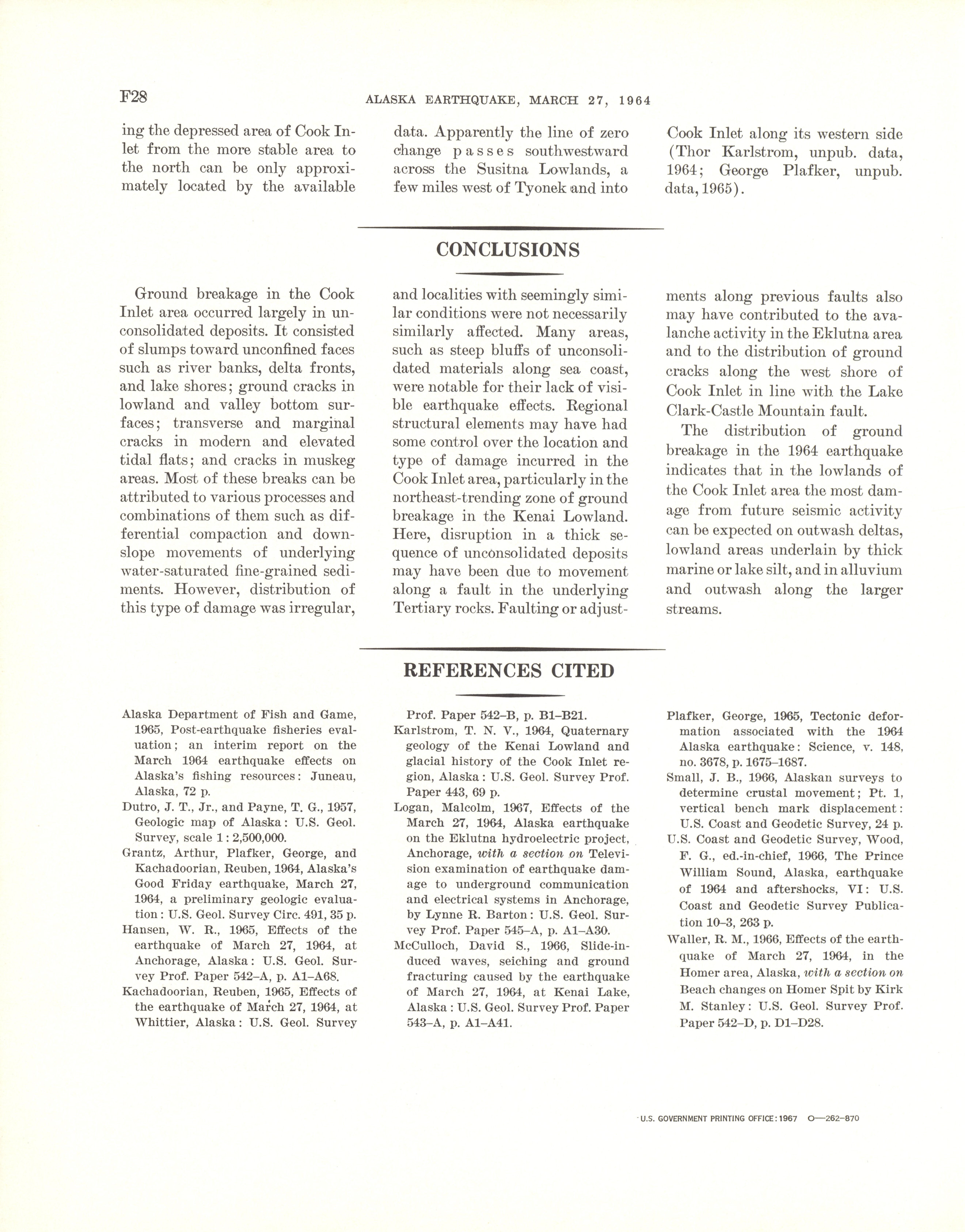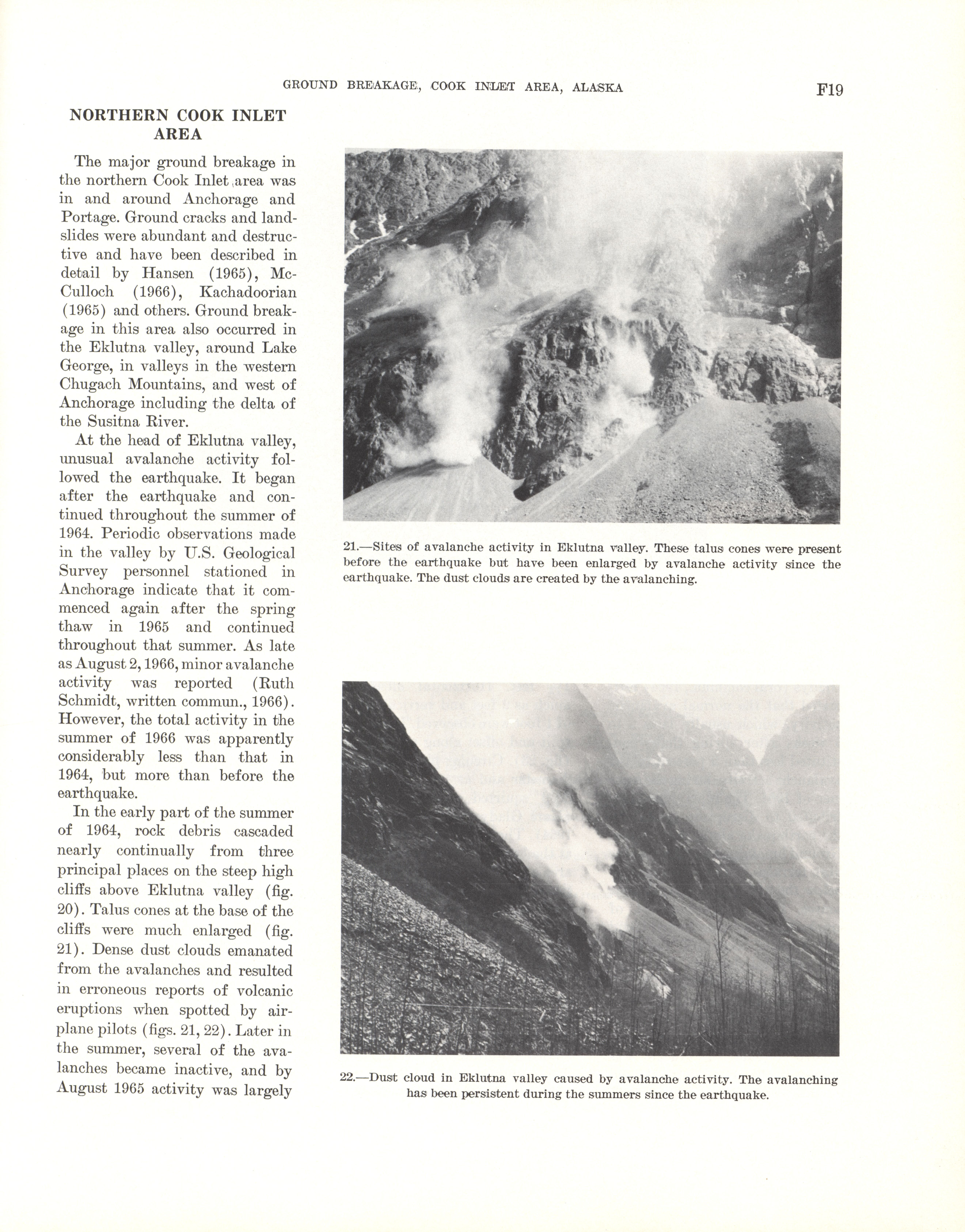 - Geological Survey professional paper 543F: regional effects, ground breakage in Cook Inlet area, 1967