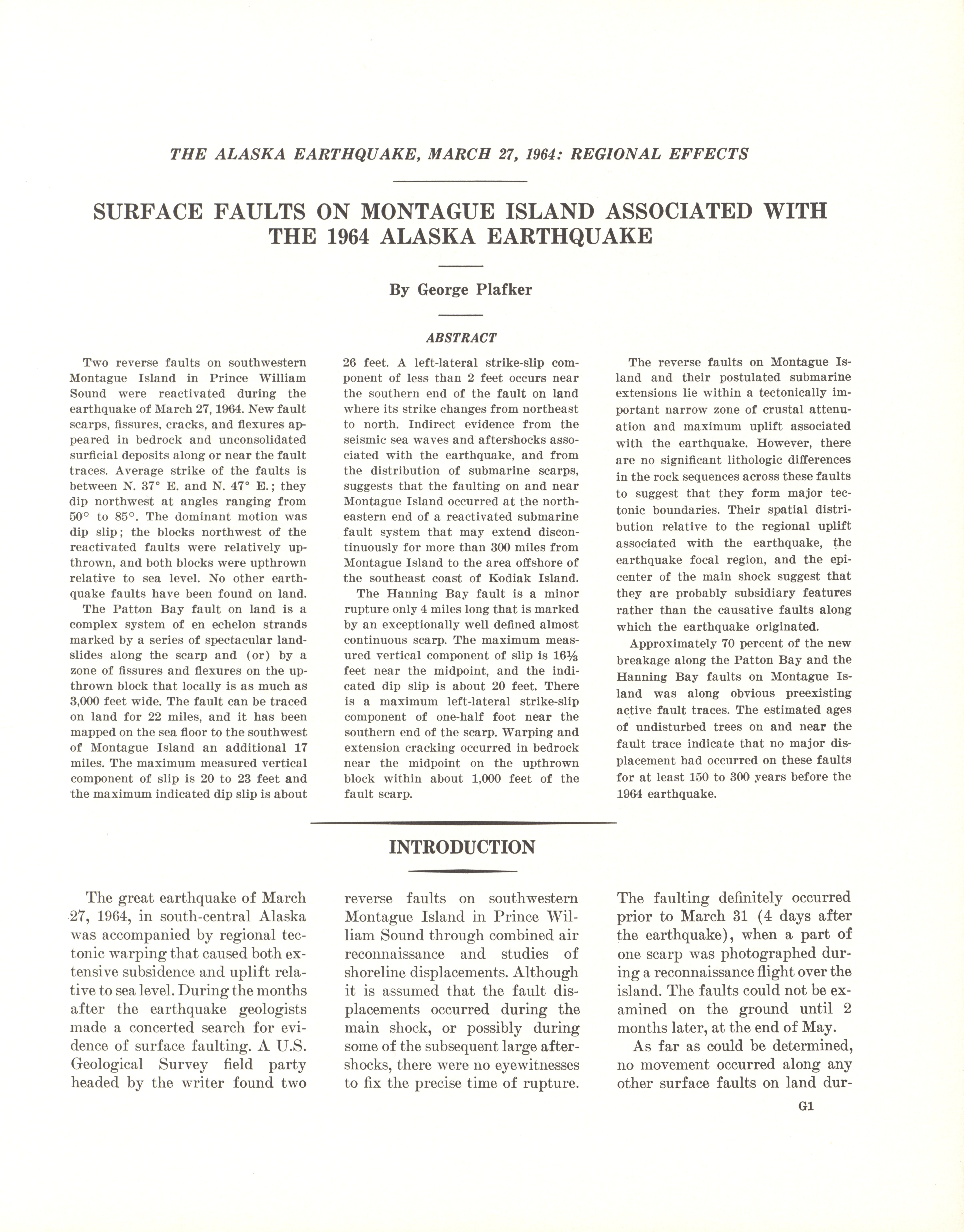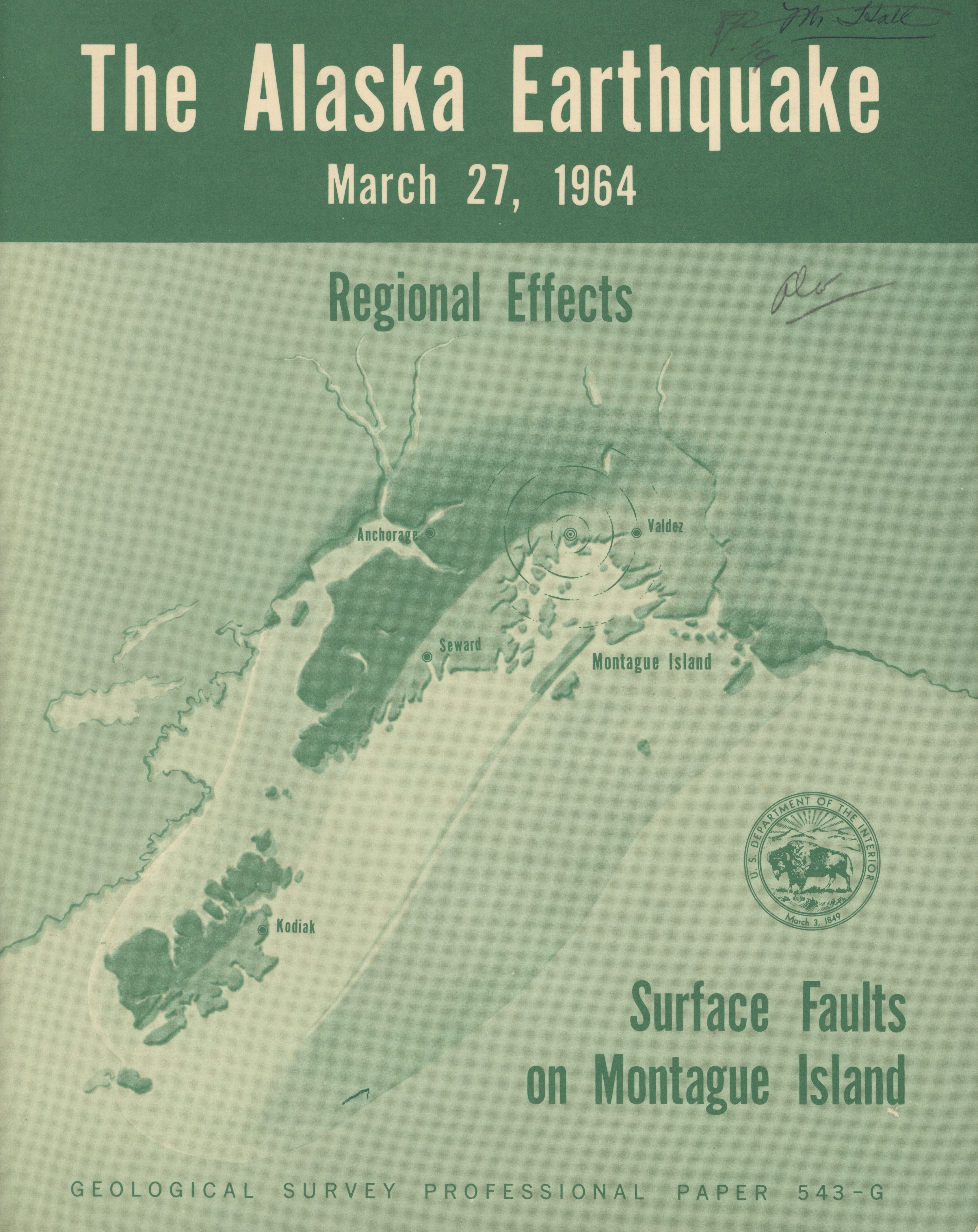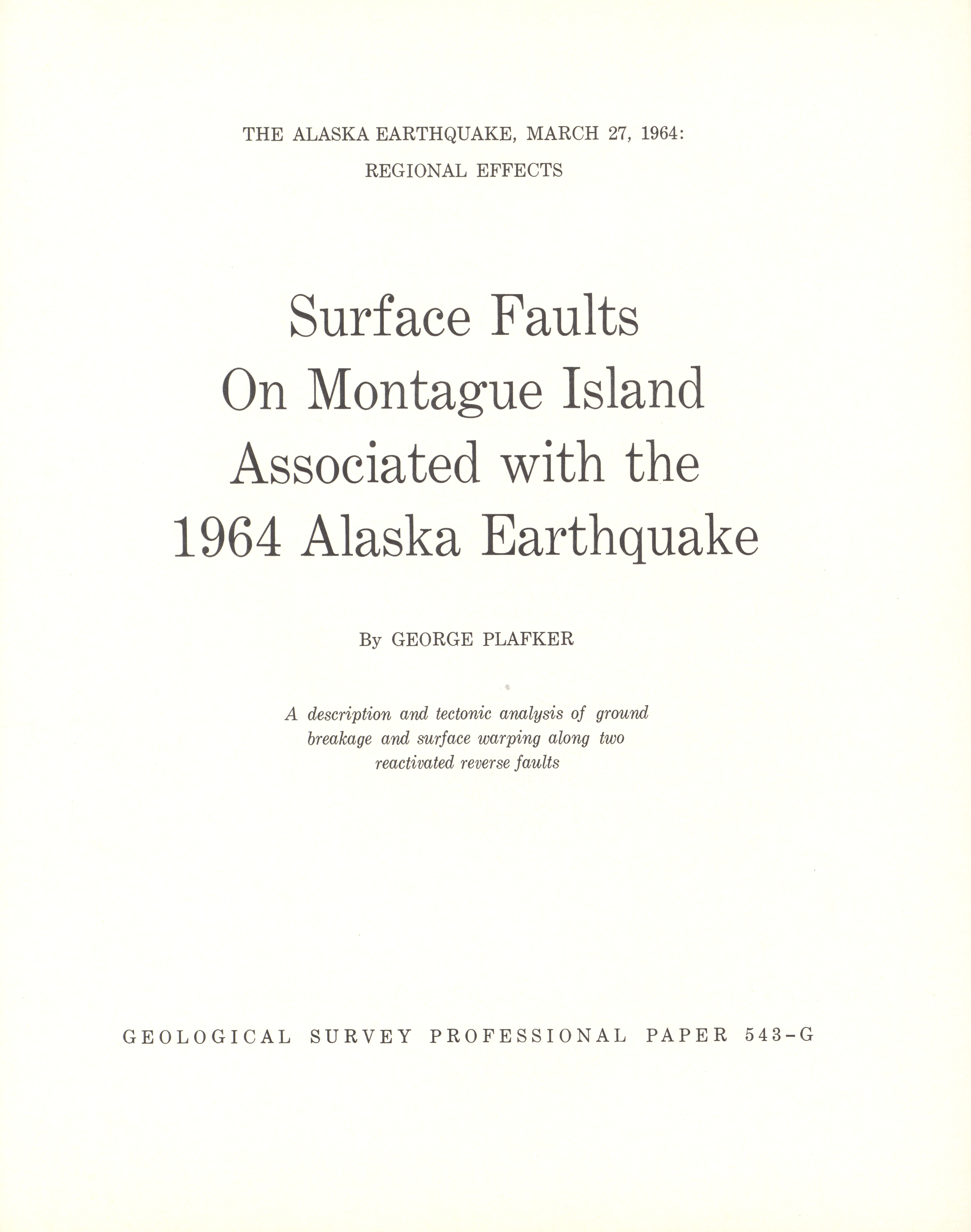 - Geological Survey professional paper 543G: regional effects, surface faults on Montague Island, 1967