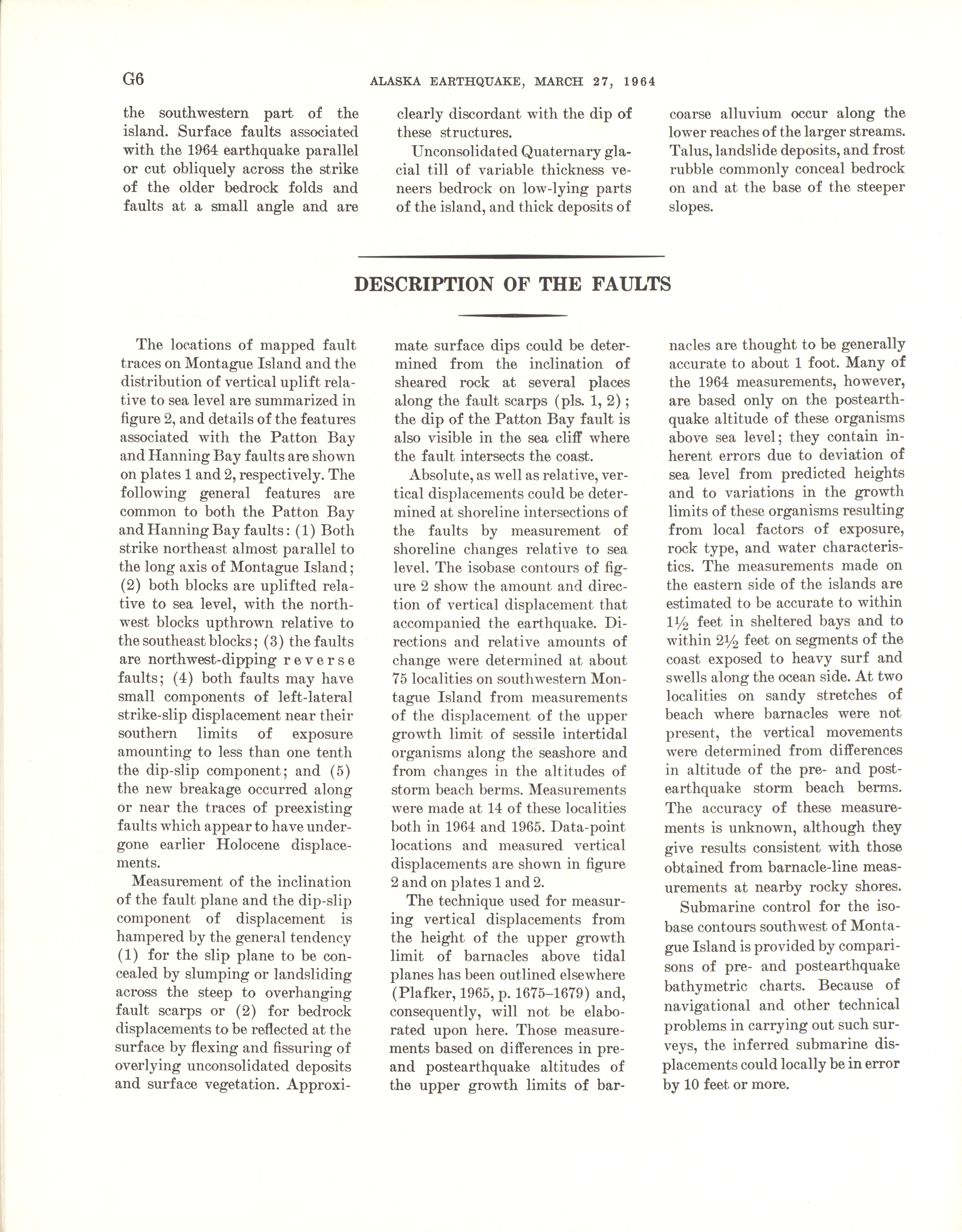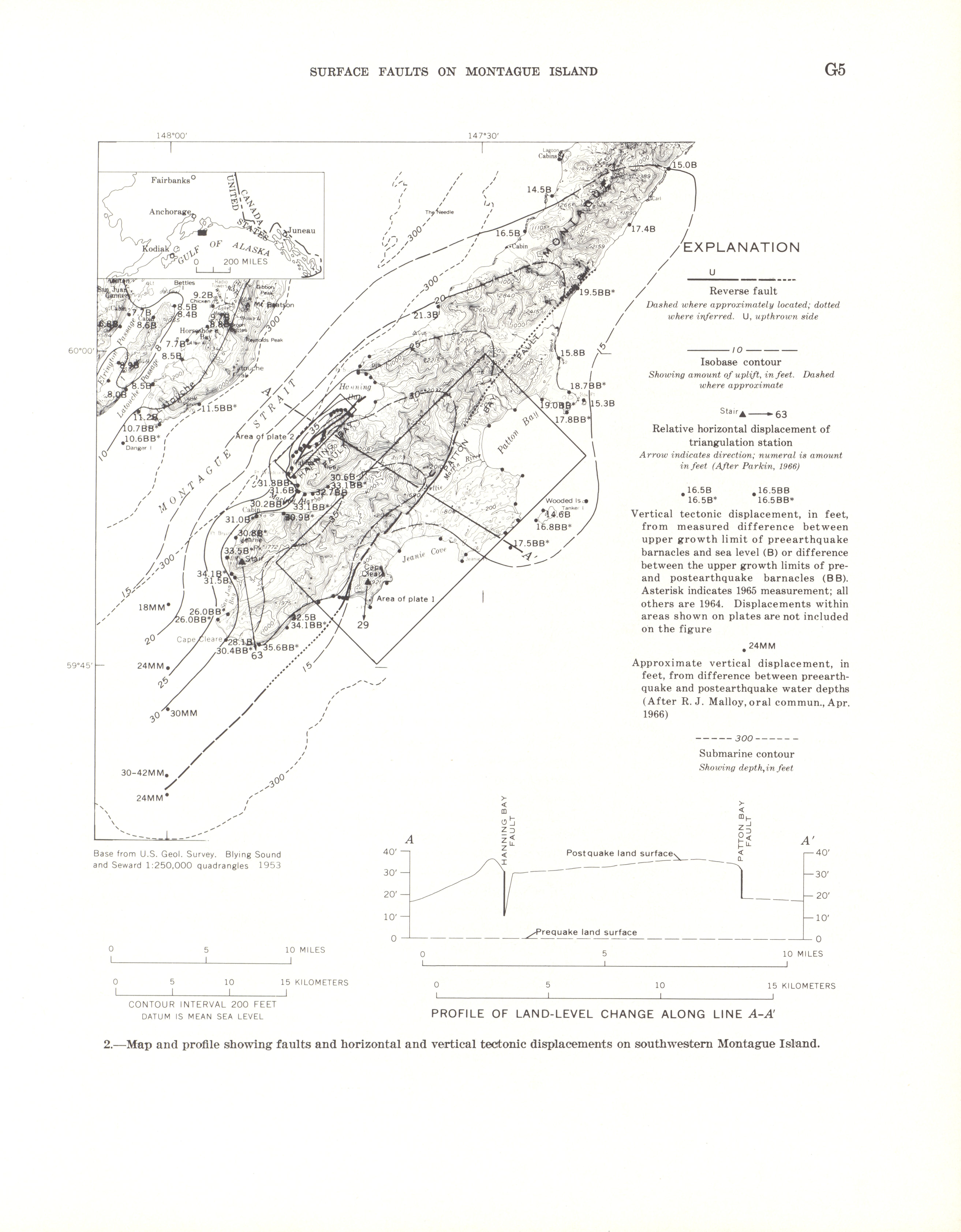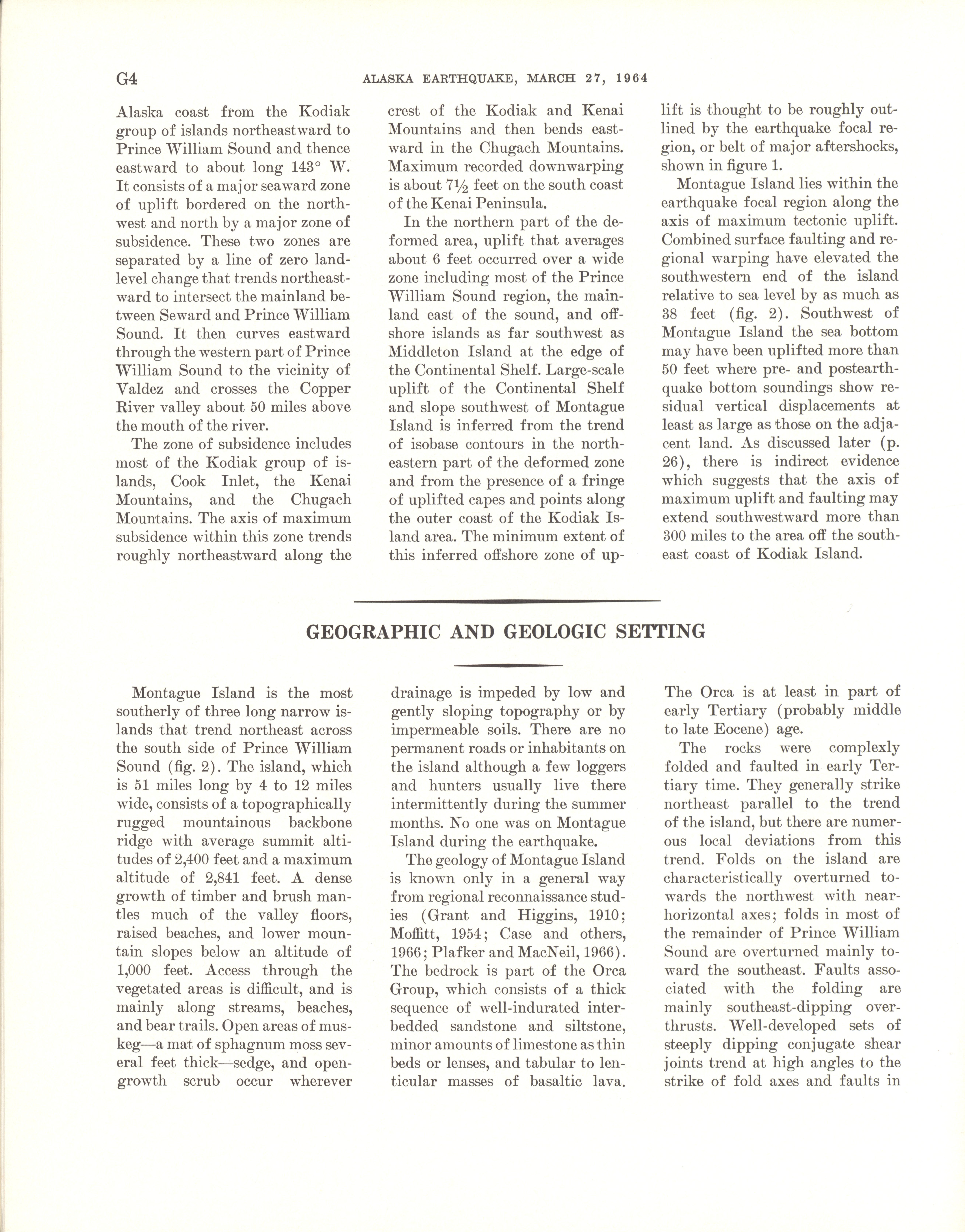 - Geological Survey professional paper 543G: regional effects, surface faults on Montague Island, 1967