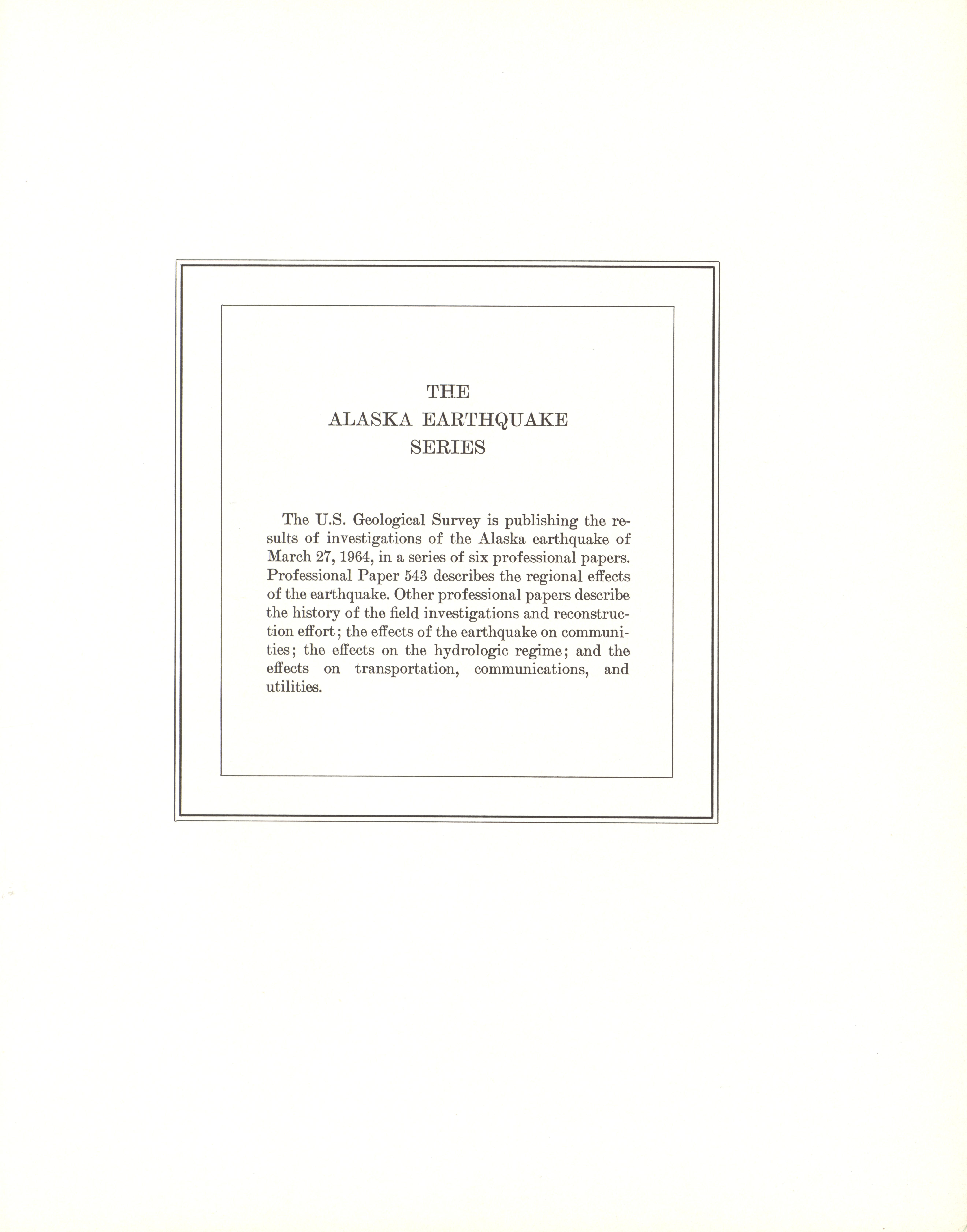 - "The Alaska earthquake, March 27, 1964: regional effects. Surface faults on Montague Island", Dwight Ink Collection, Iowa State University Library Digital Collections
