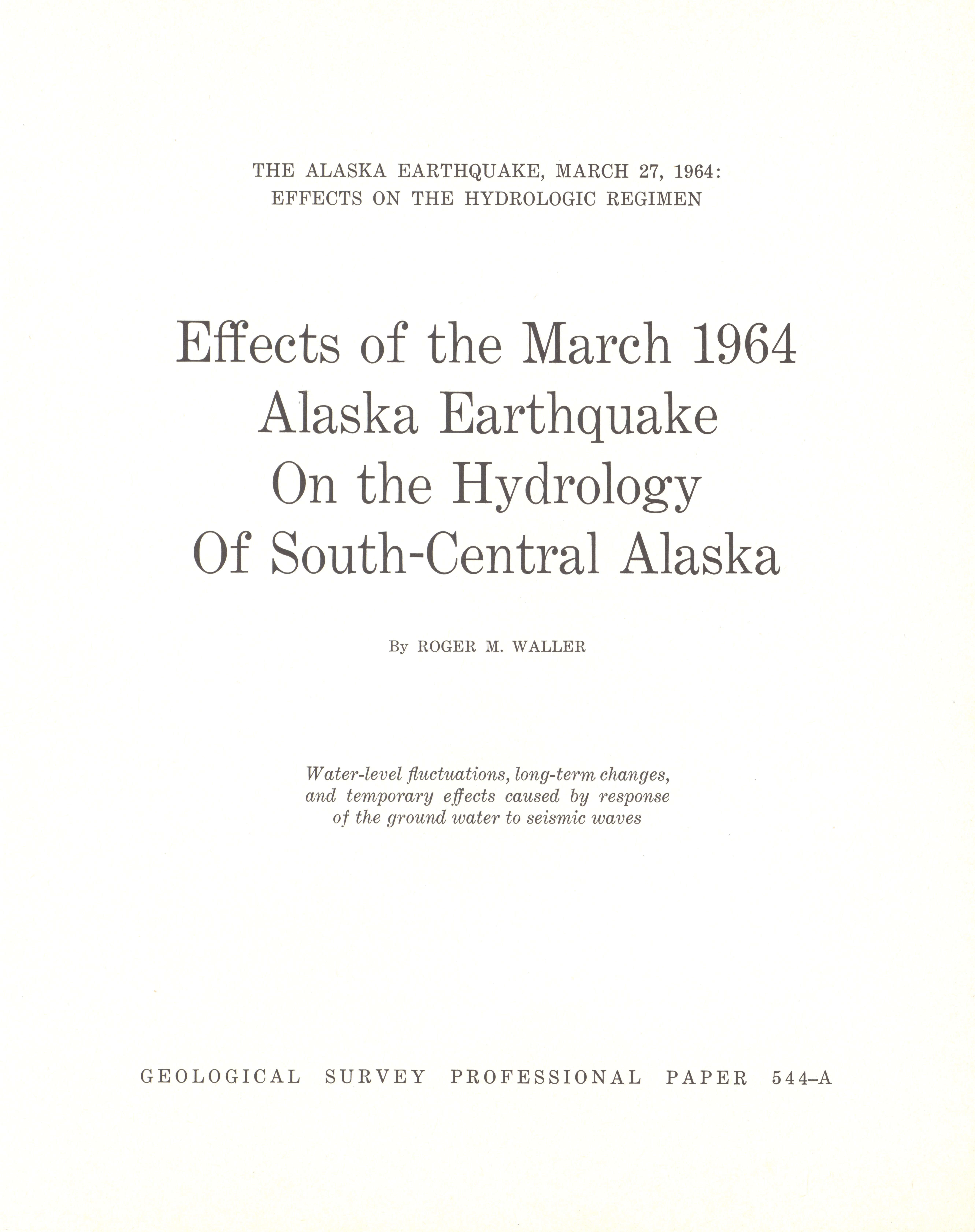 - The Alaska earthquake, March 27, 1964: effects on hydrologic regimen. South-central Alaska