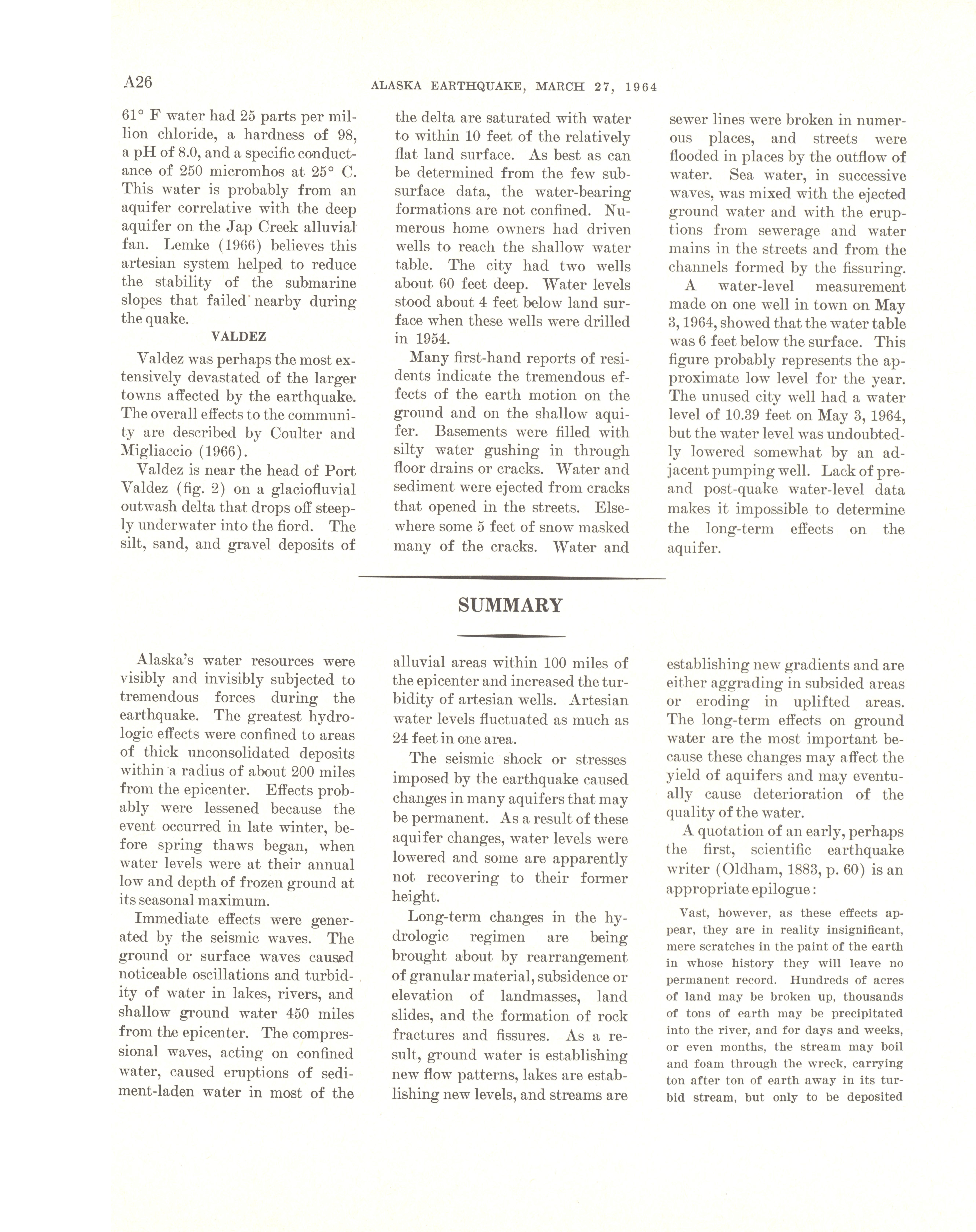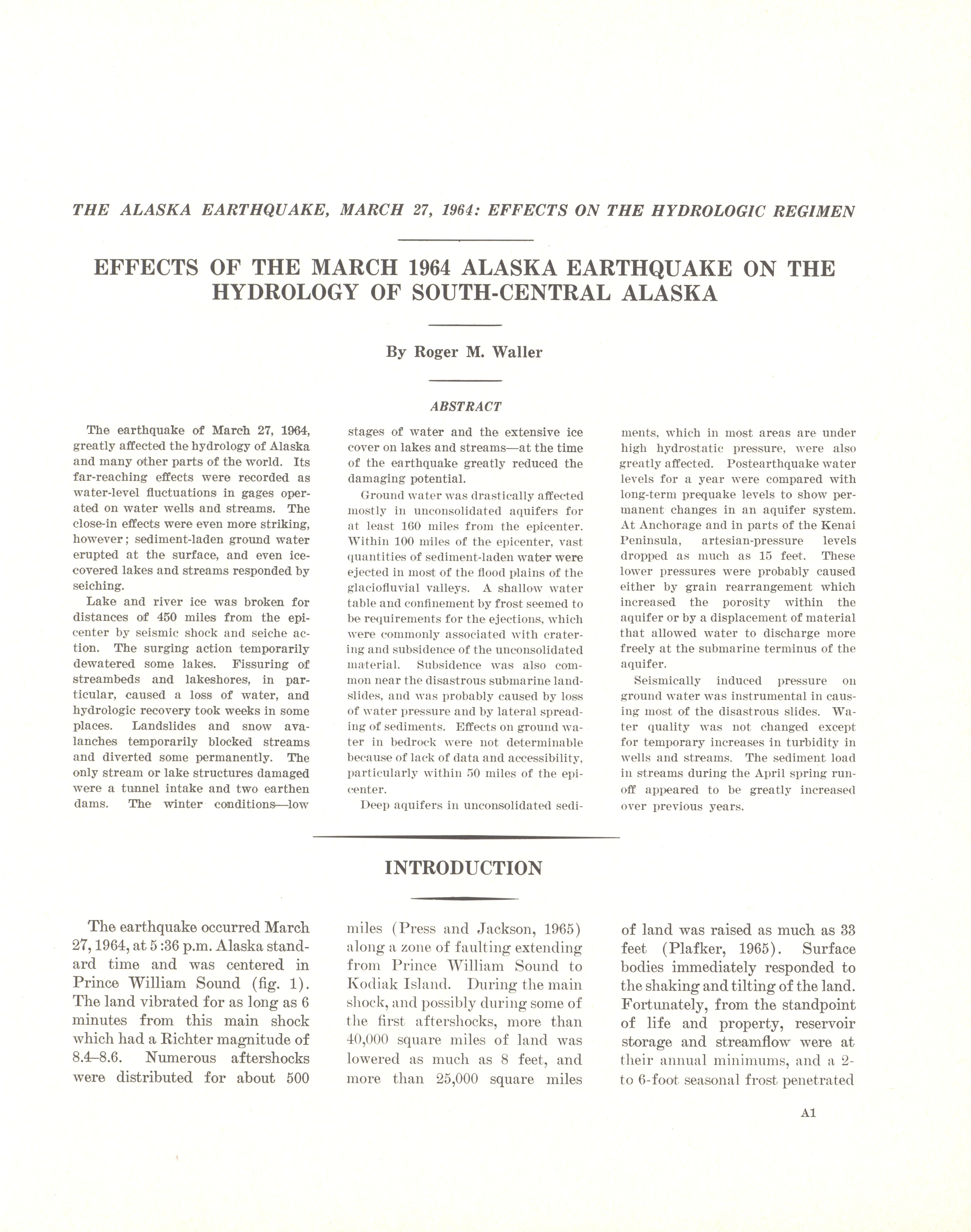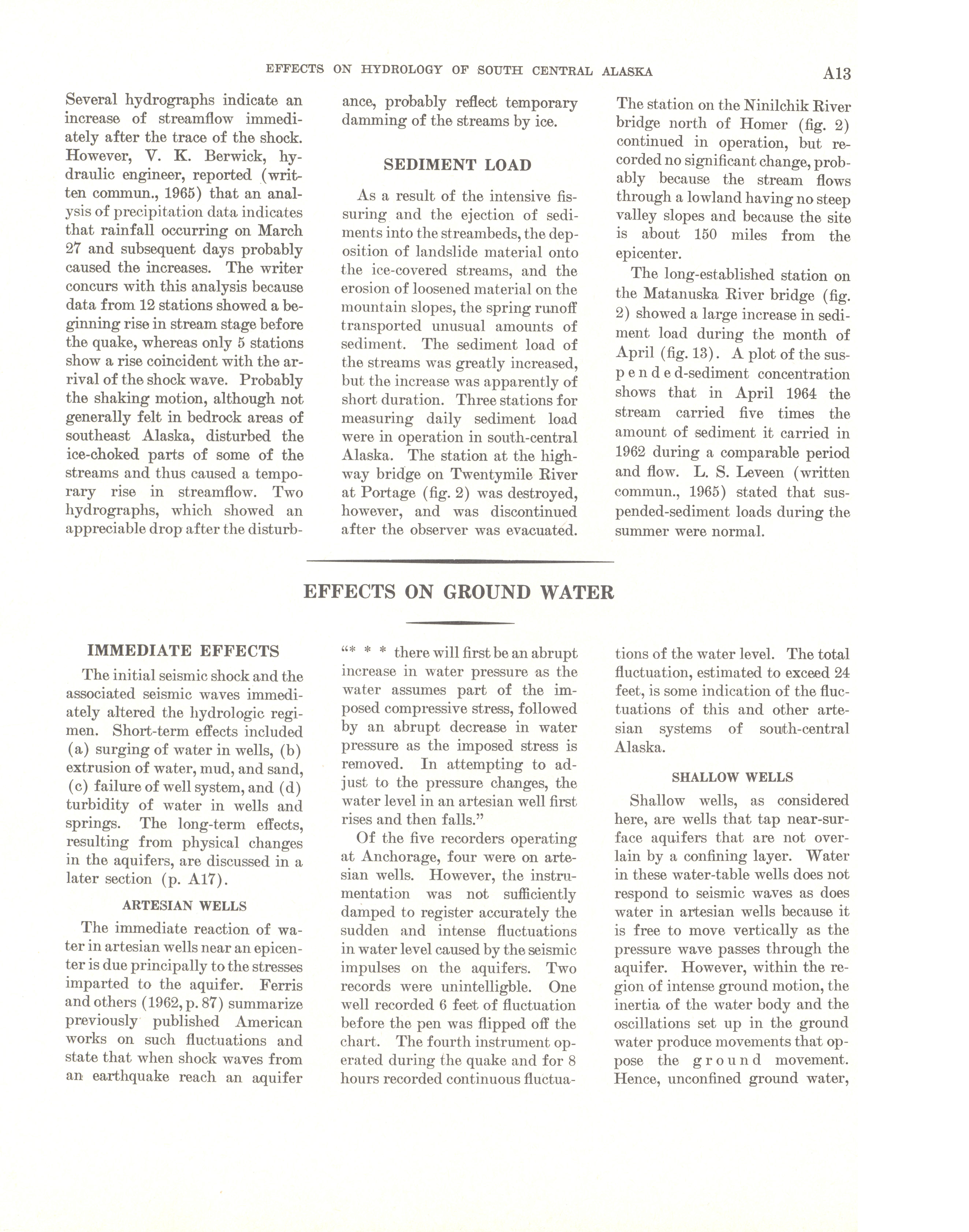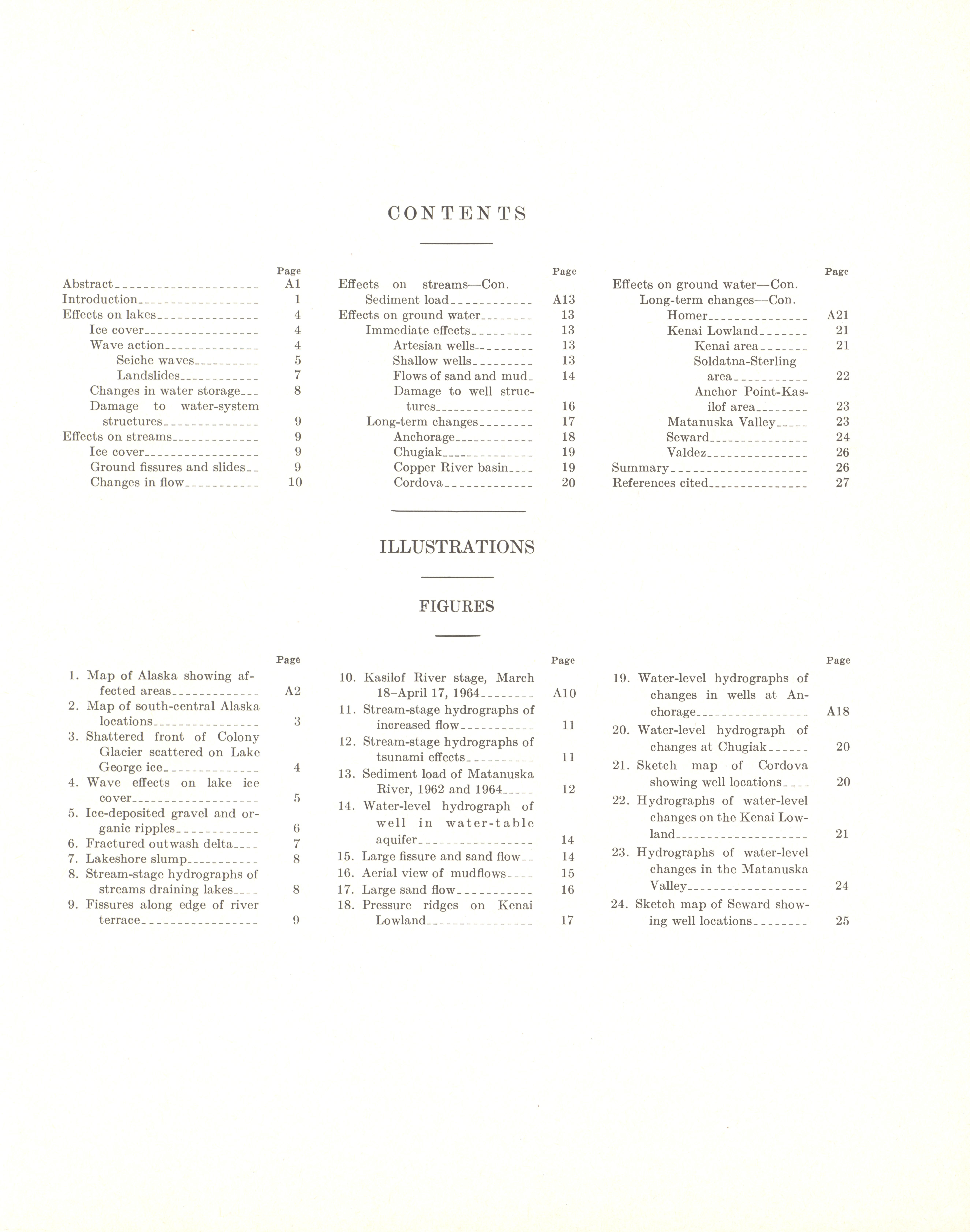 - "The Alaska earthquake, March 27, 1964: effects on hydrologic regimen. South-central Alaska", Dwight Ink Collection, Iowa State University Library Digital Collections