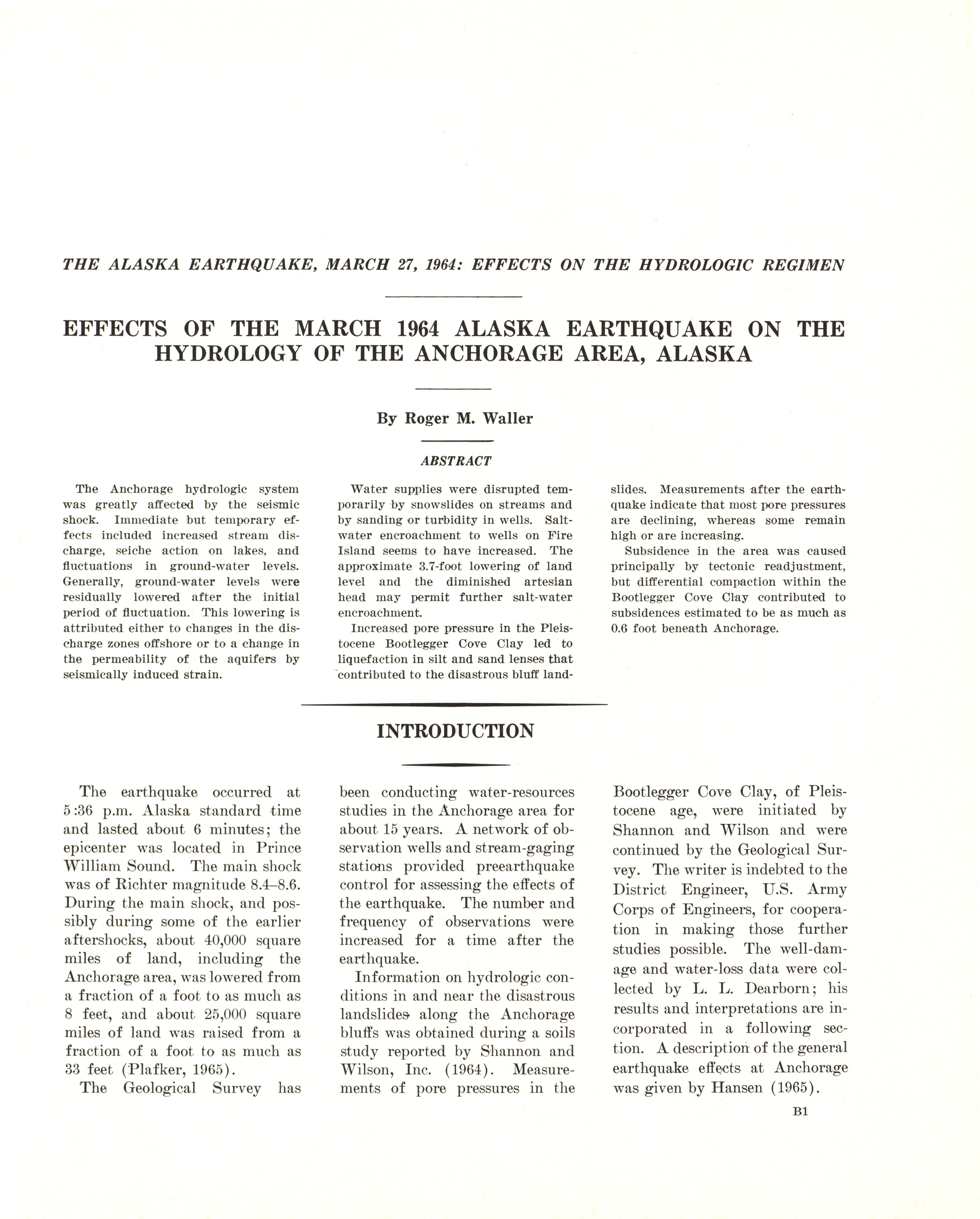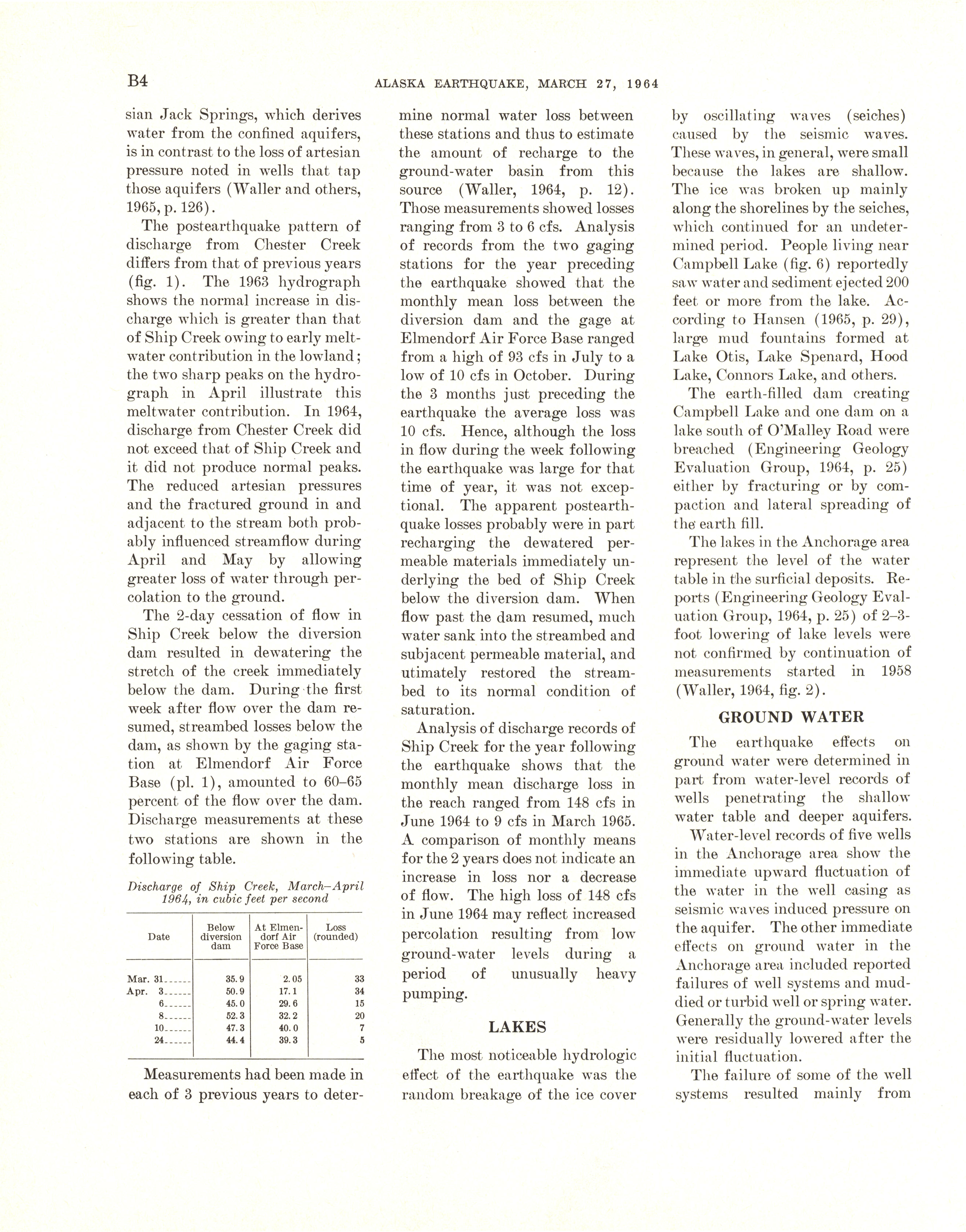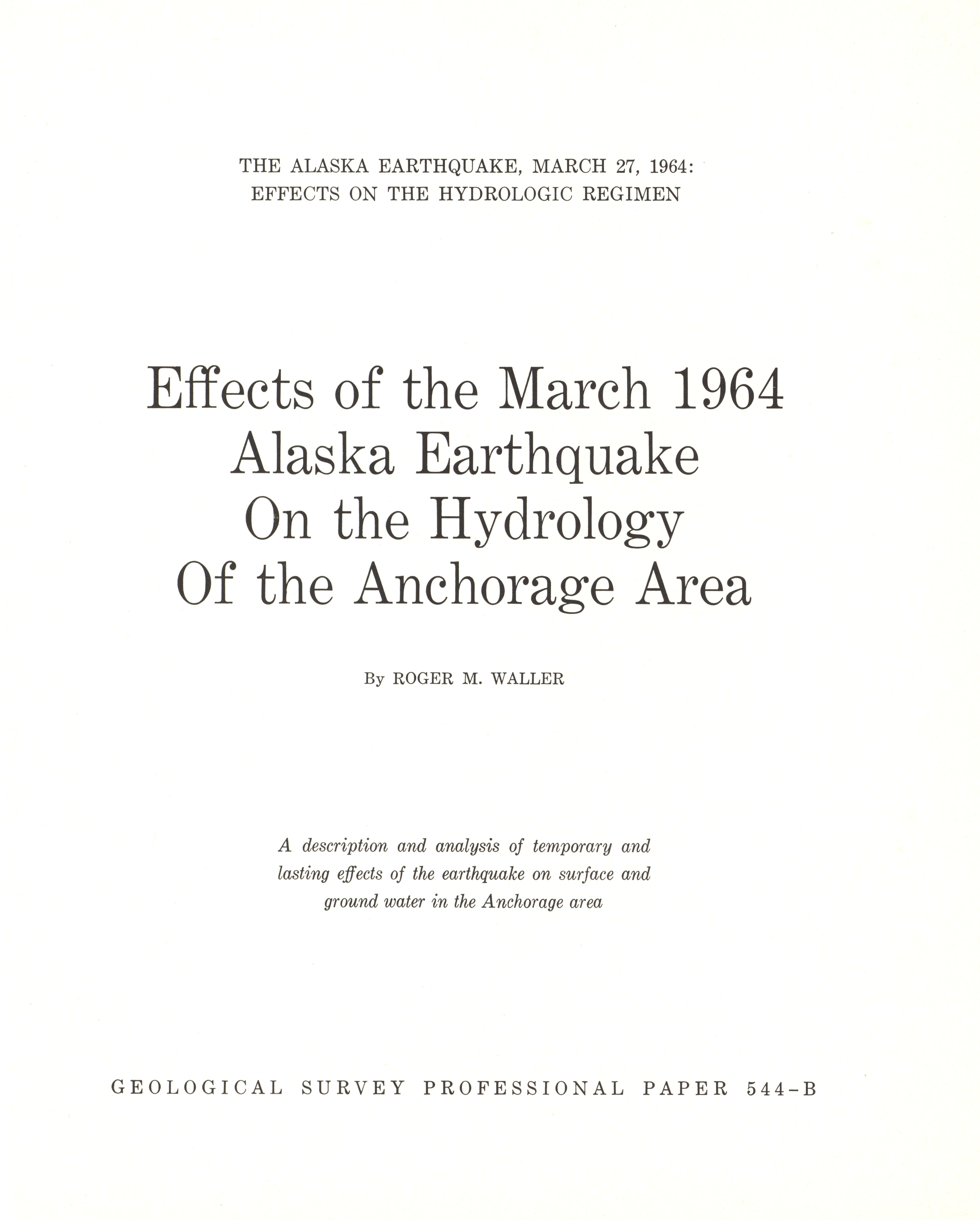 - The Alaska earthquake, March 27, 1964: effects on hydrologic regimen. Anchorage area