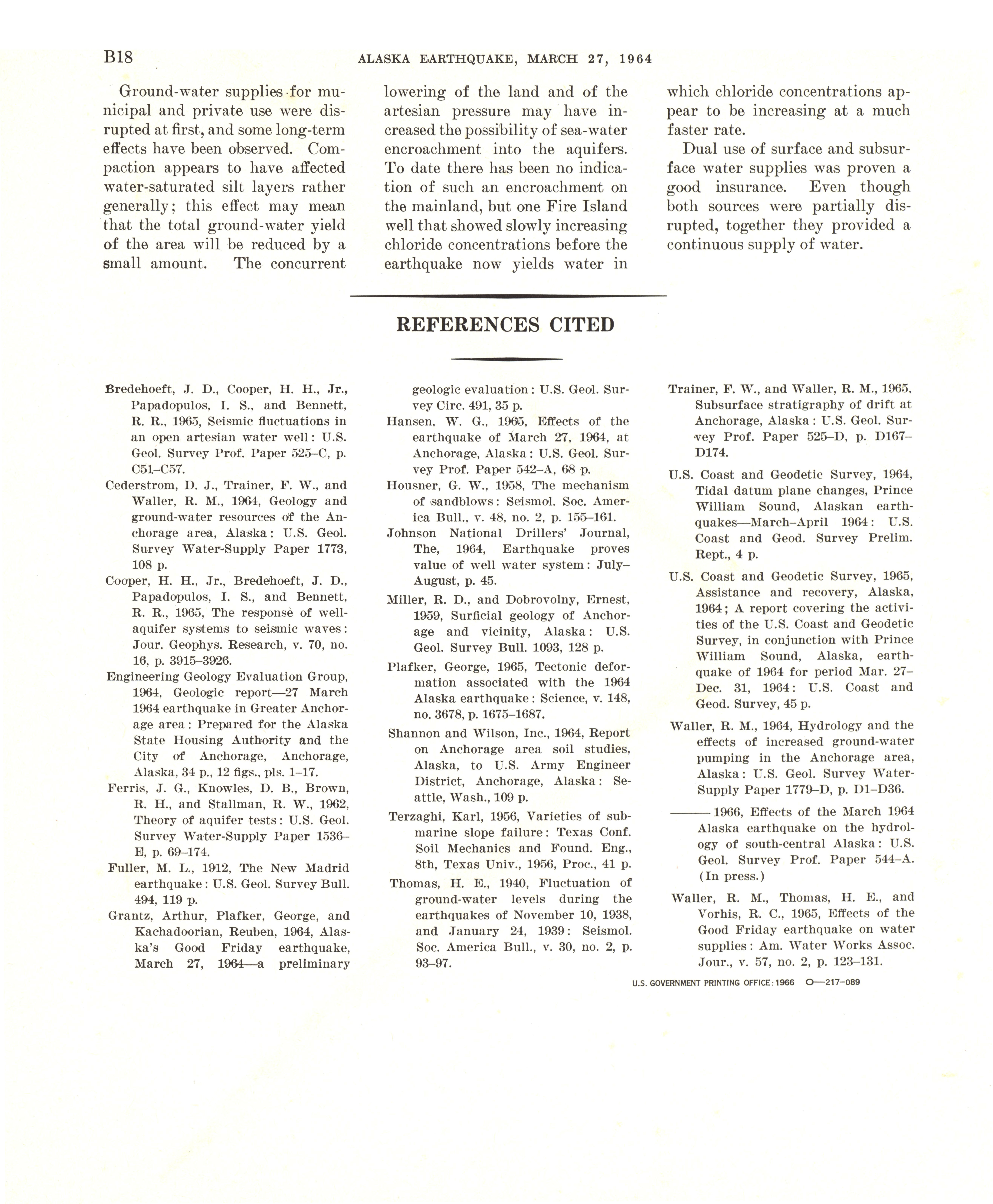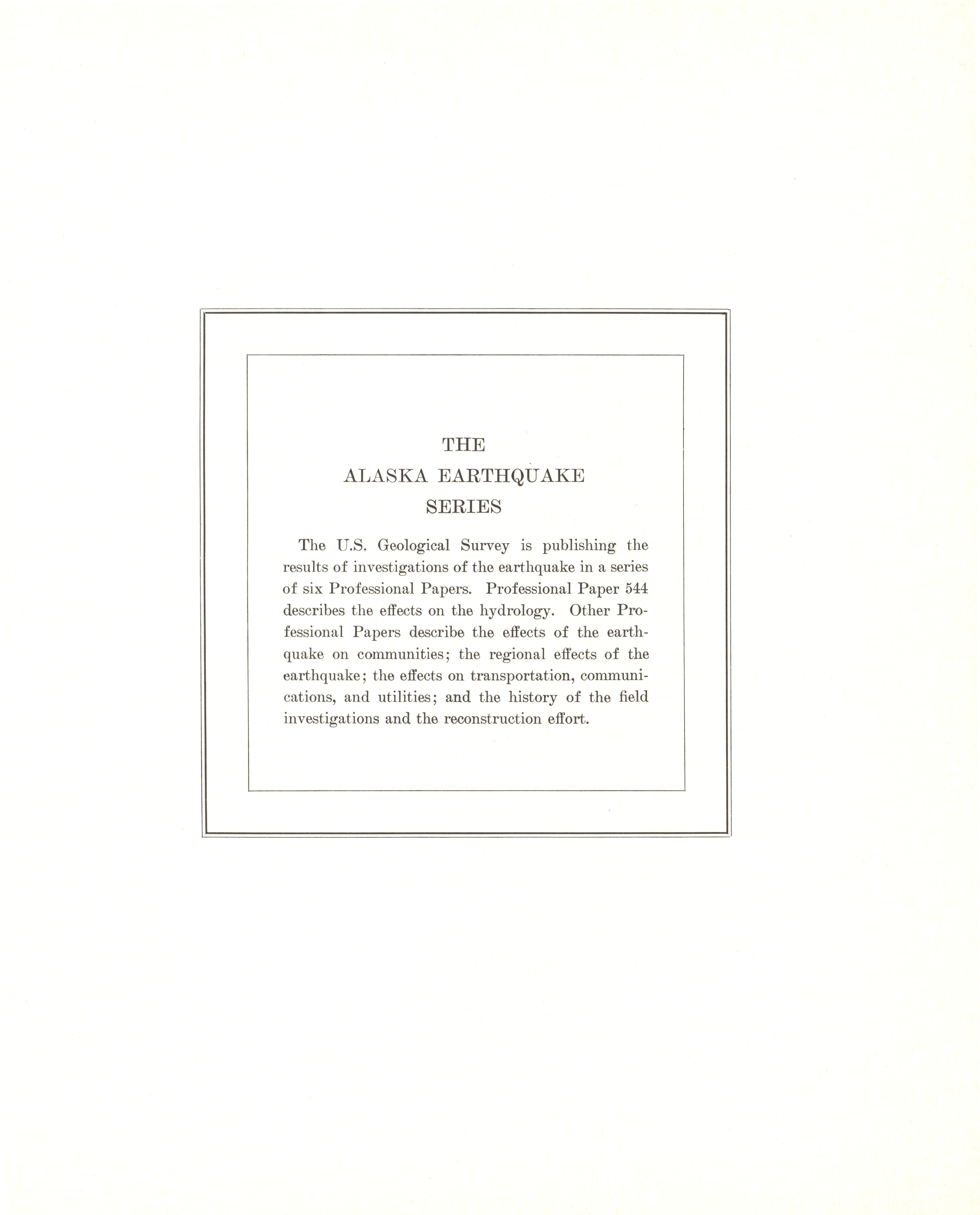 - "The Alaska earthquake, March 27, 1964: effects on hydrologic regimen. Anchorage area", Dwight Ink Collection, Iowa State University Library Digital Collections