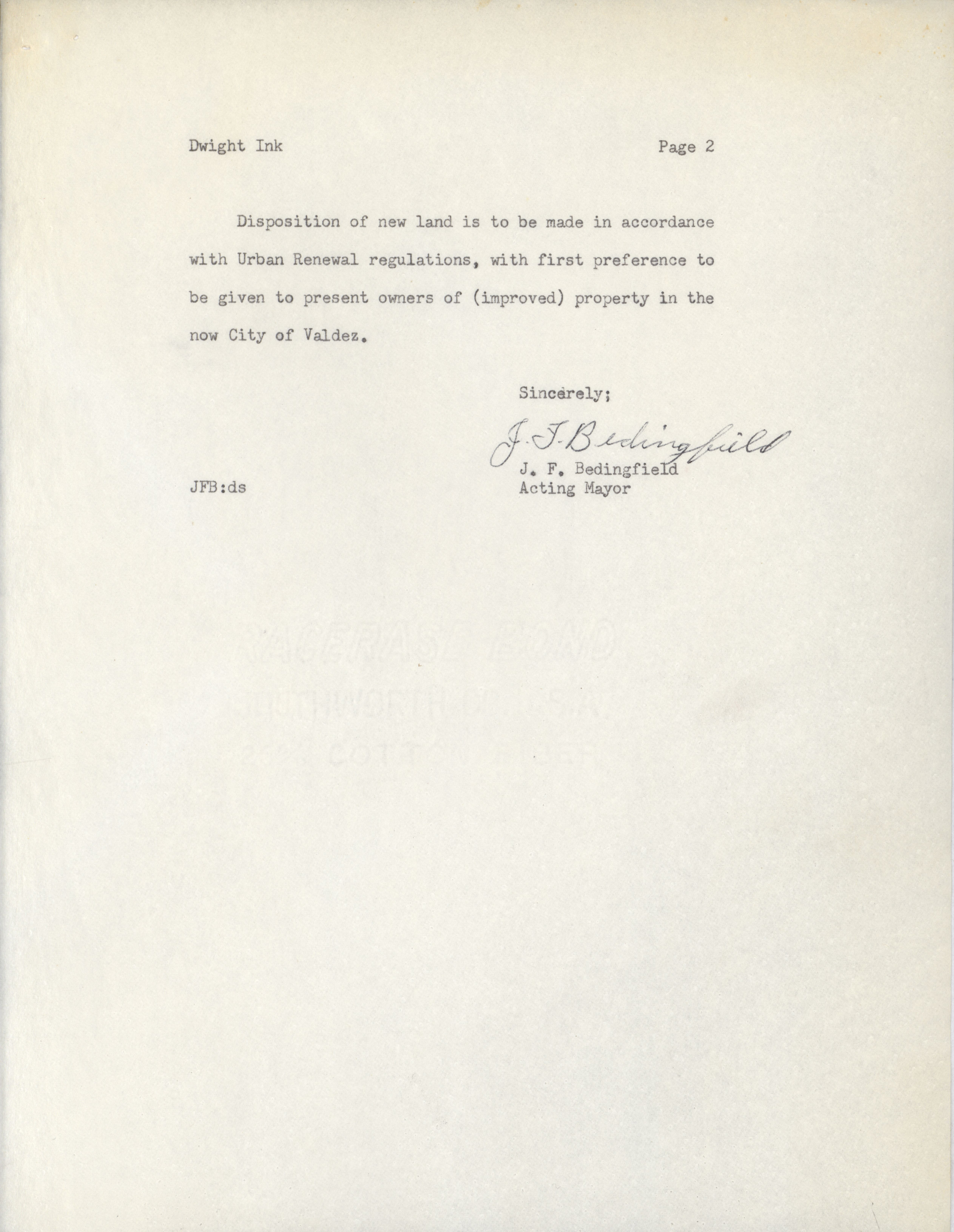 - J. F. Bedingfield letter to Dwight Ink, June 27, 1964