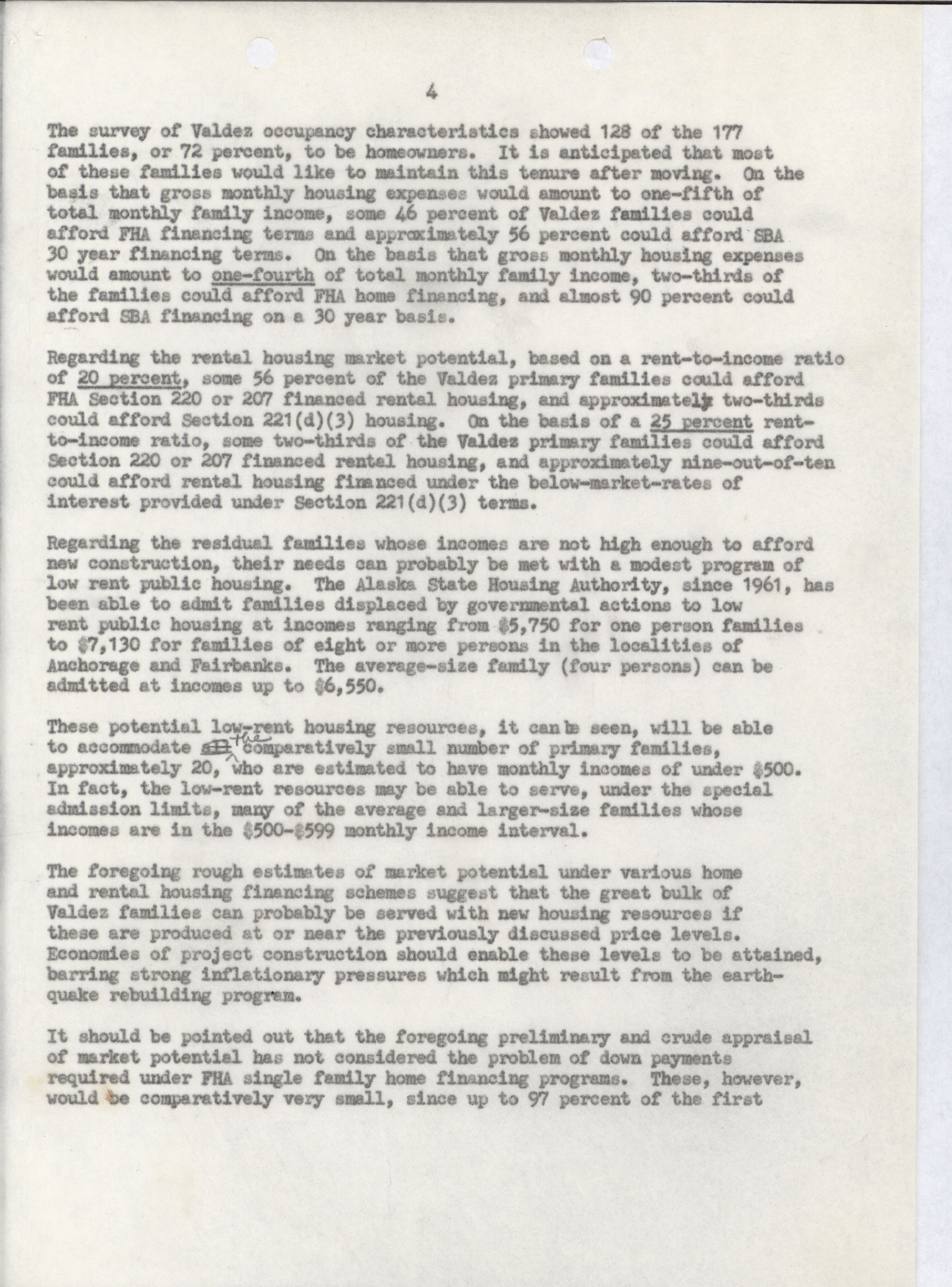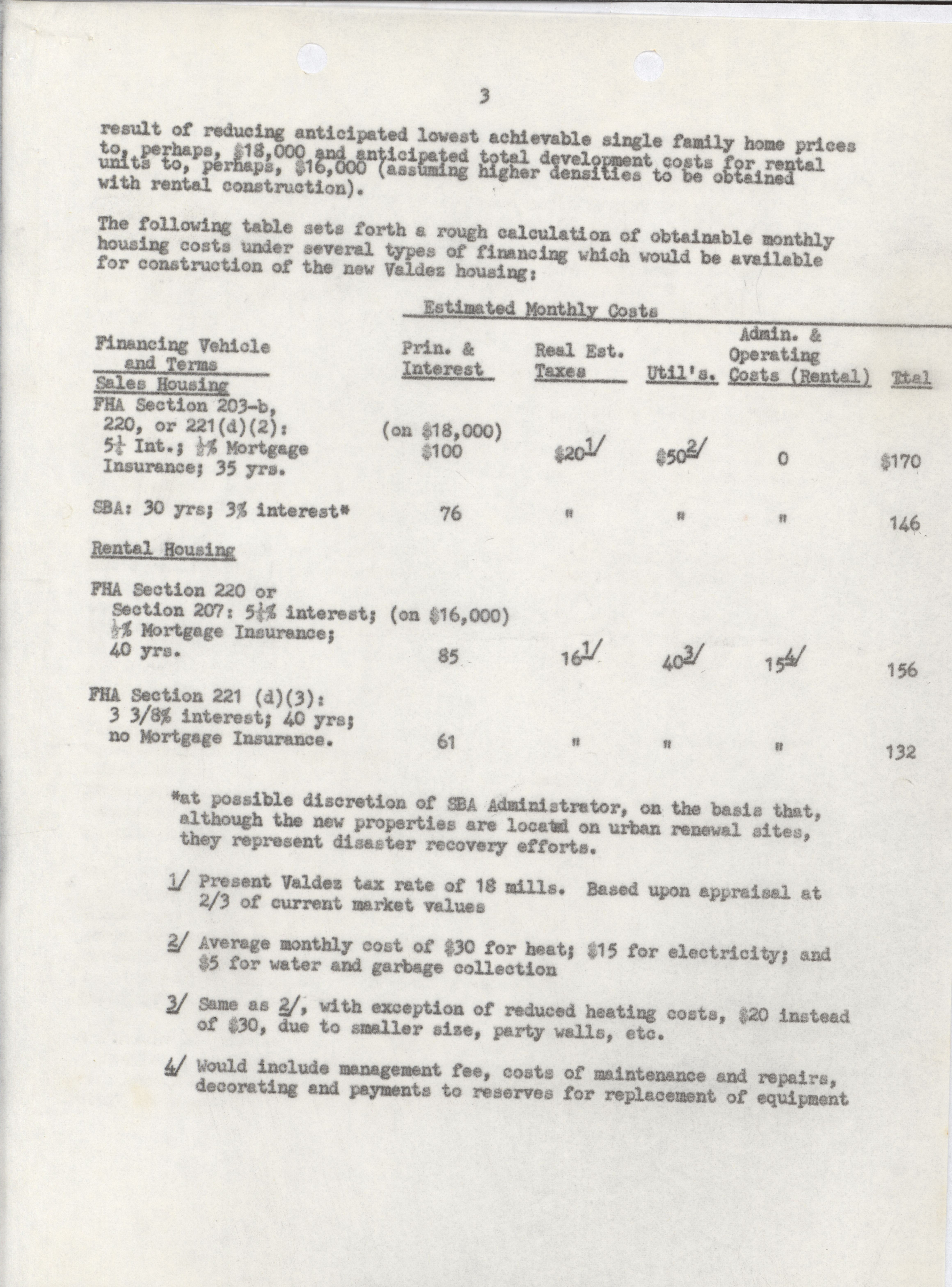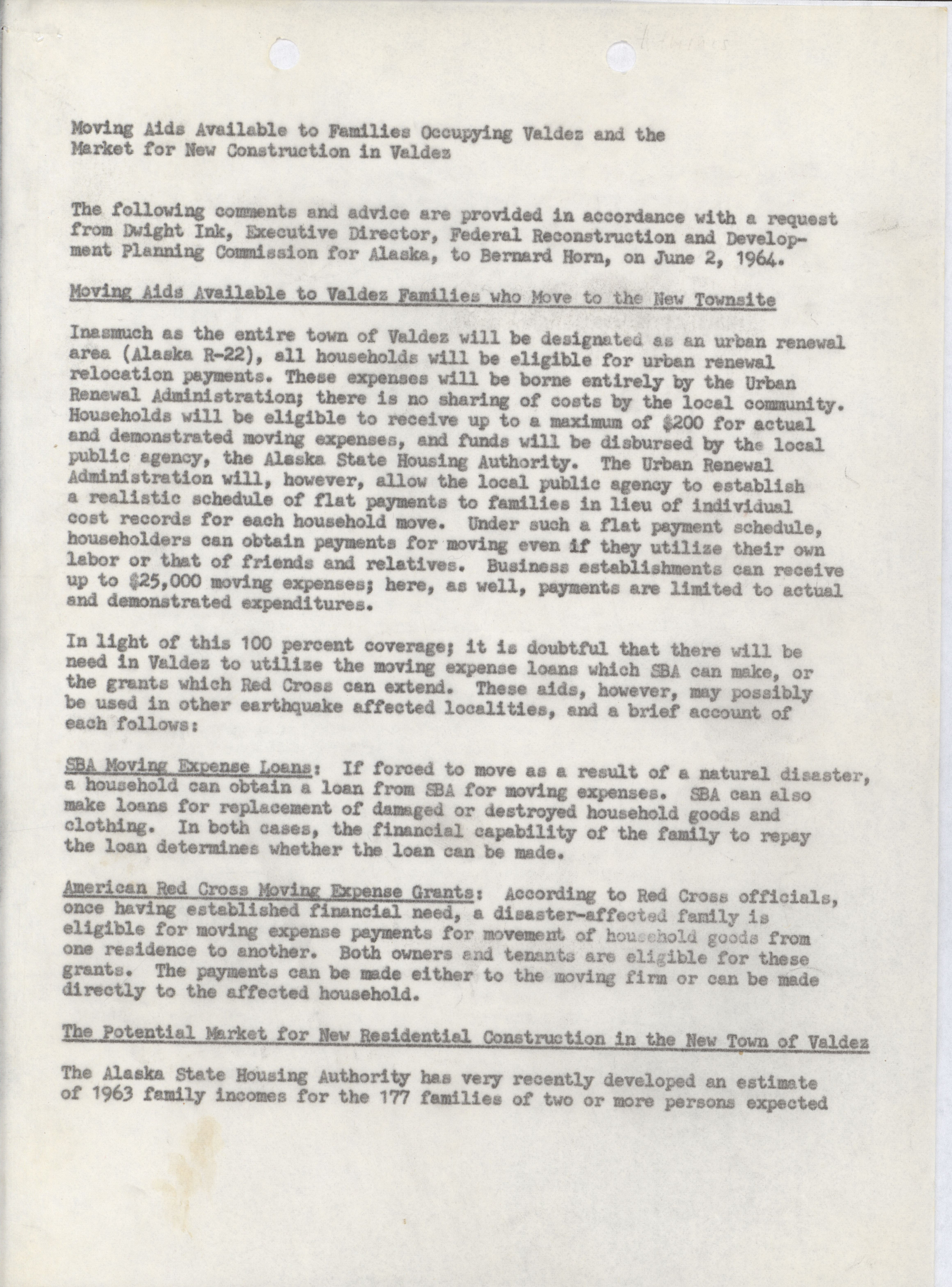 - "Moving aids available to families occupying Valdez and the market for new construction in Valdez", Dwight Ink Collection, Iowa State University Library Digital Collections