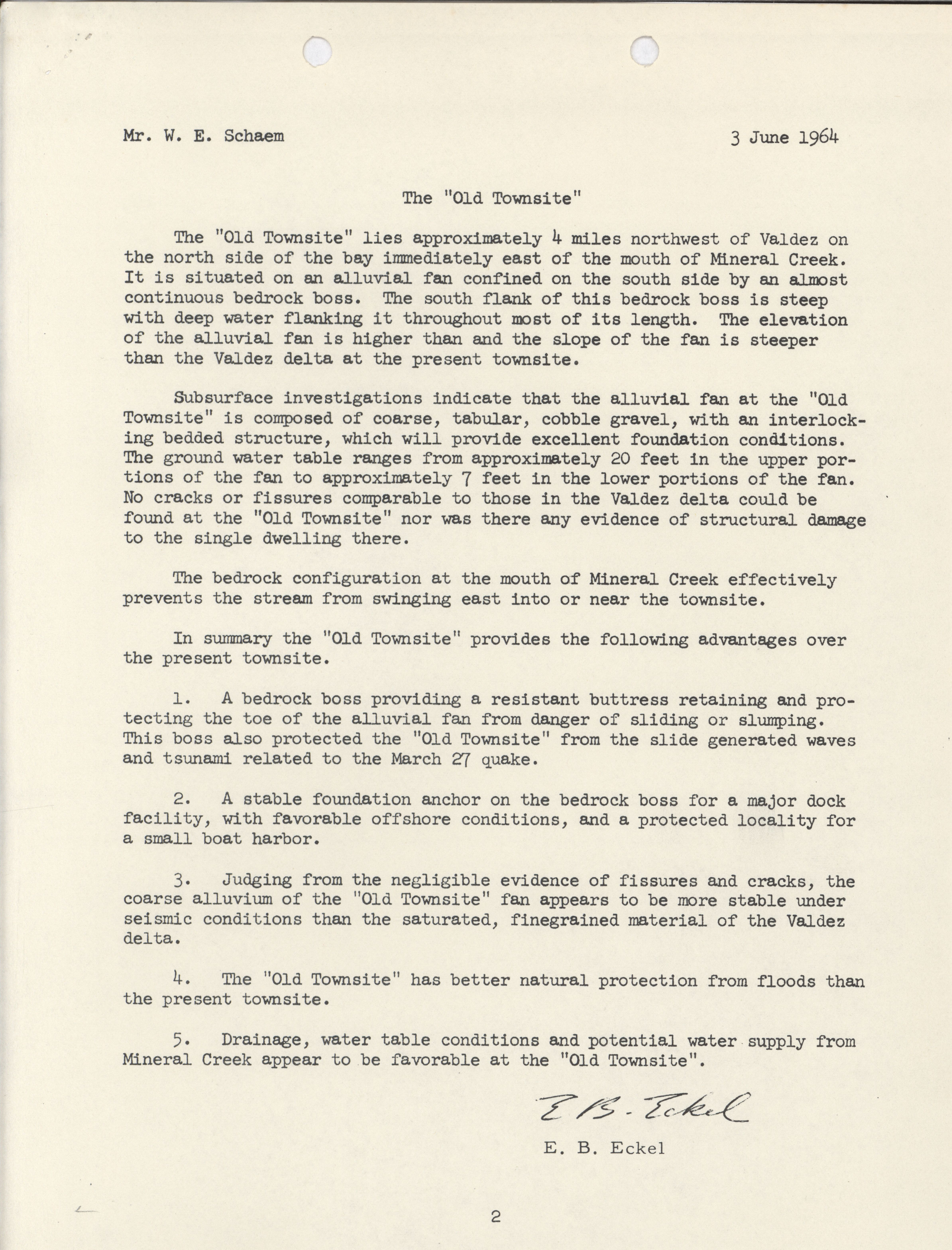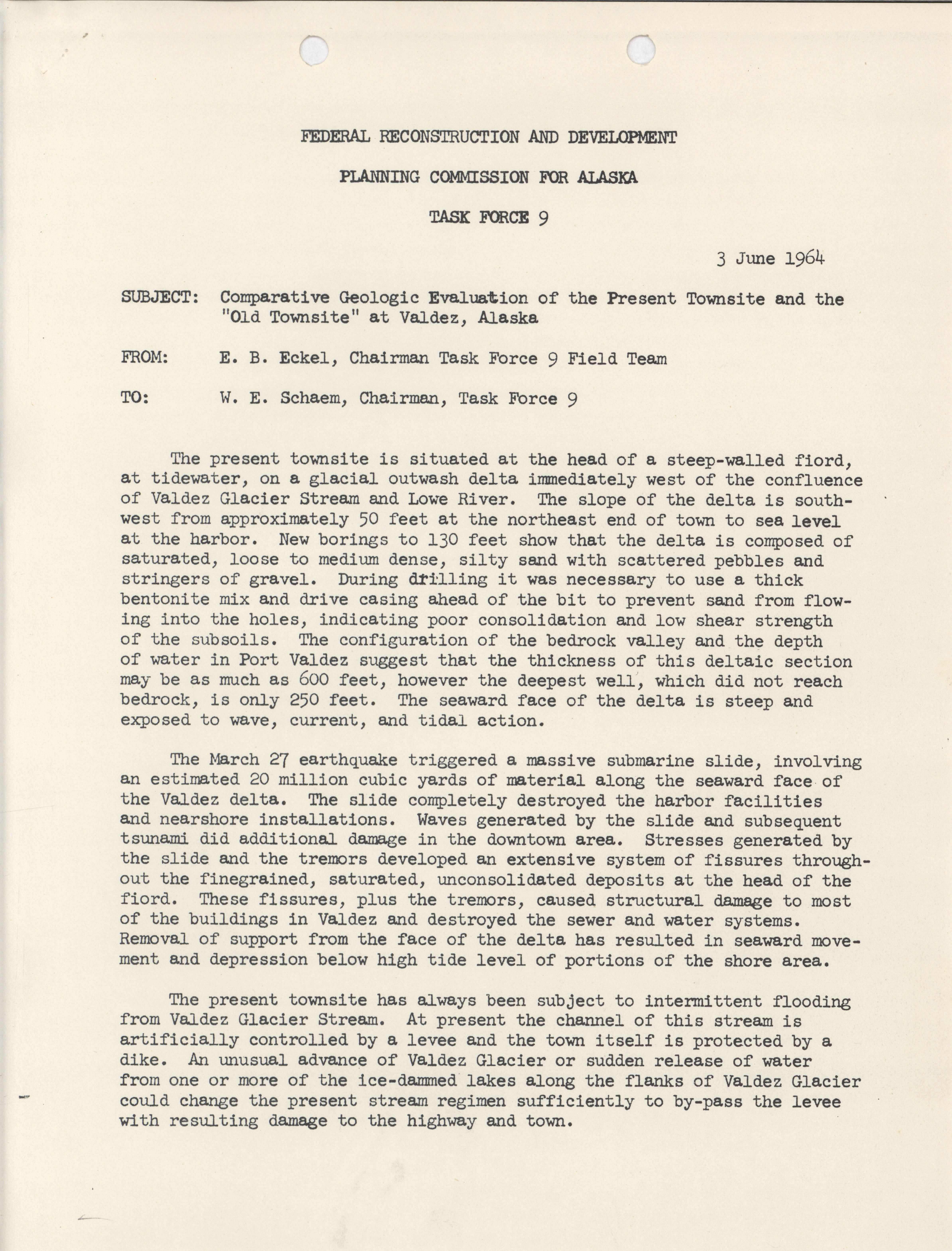 - Valdez reconstruction correspondence, memorandums, and costs, 1964-1965