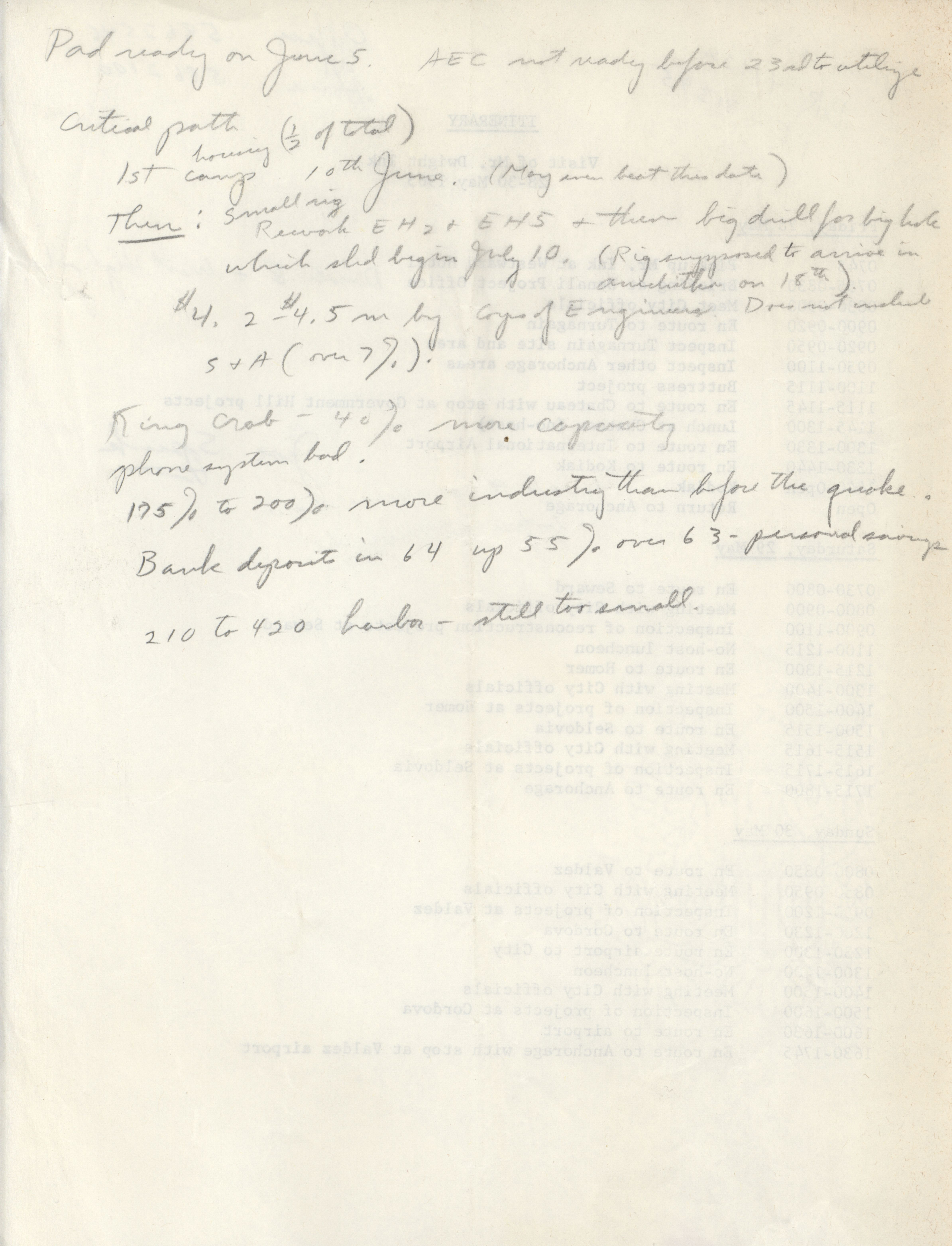 - Valdez reconstruction correspondence, memorandums, and costs, 1964-1965