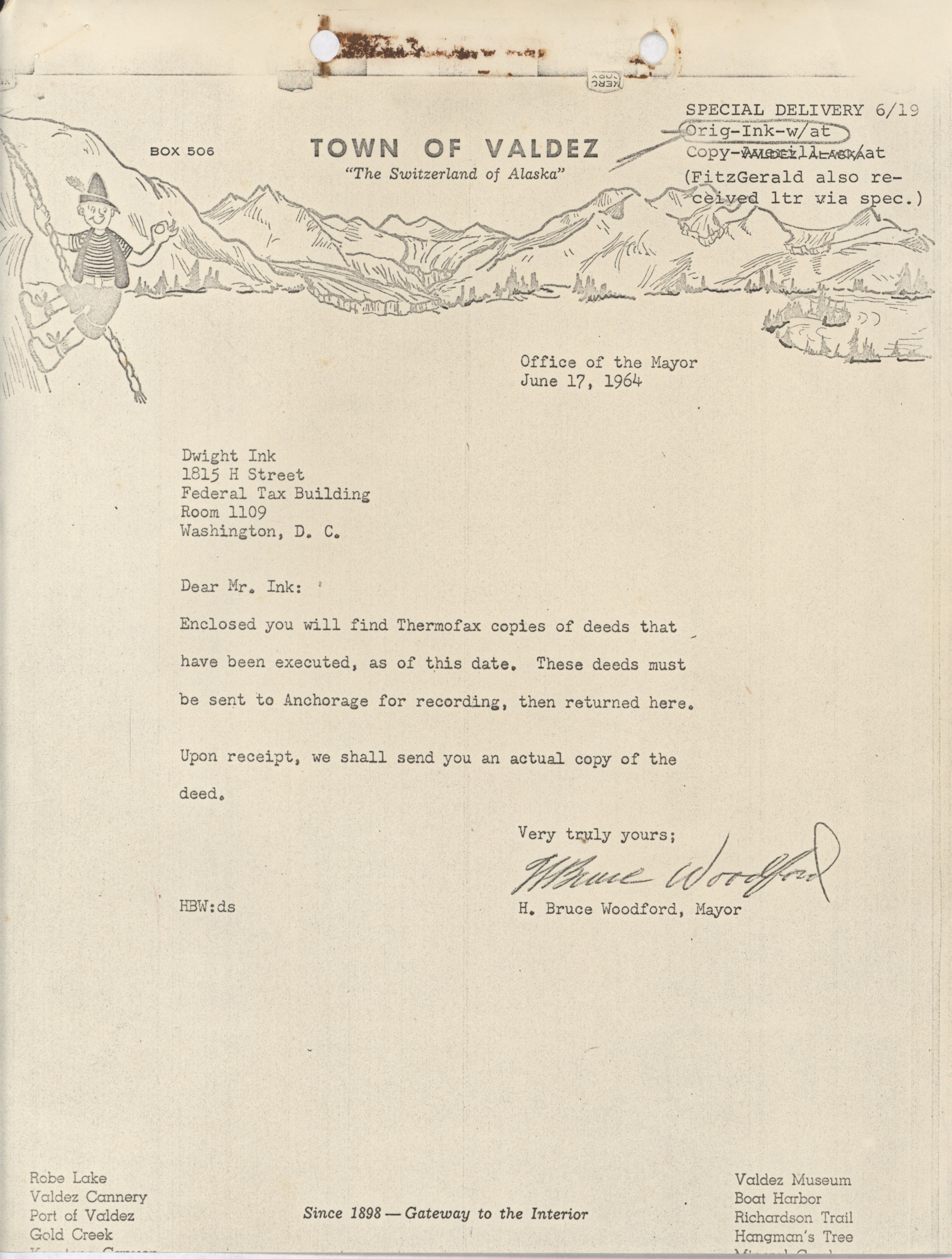 - H. Bruce Woodford letter to Dwight Ink, June 17, 1964