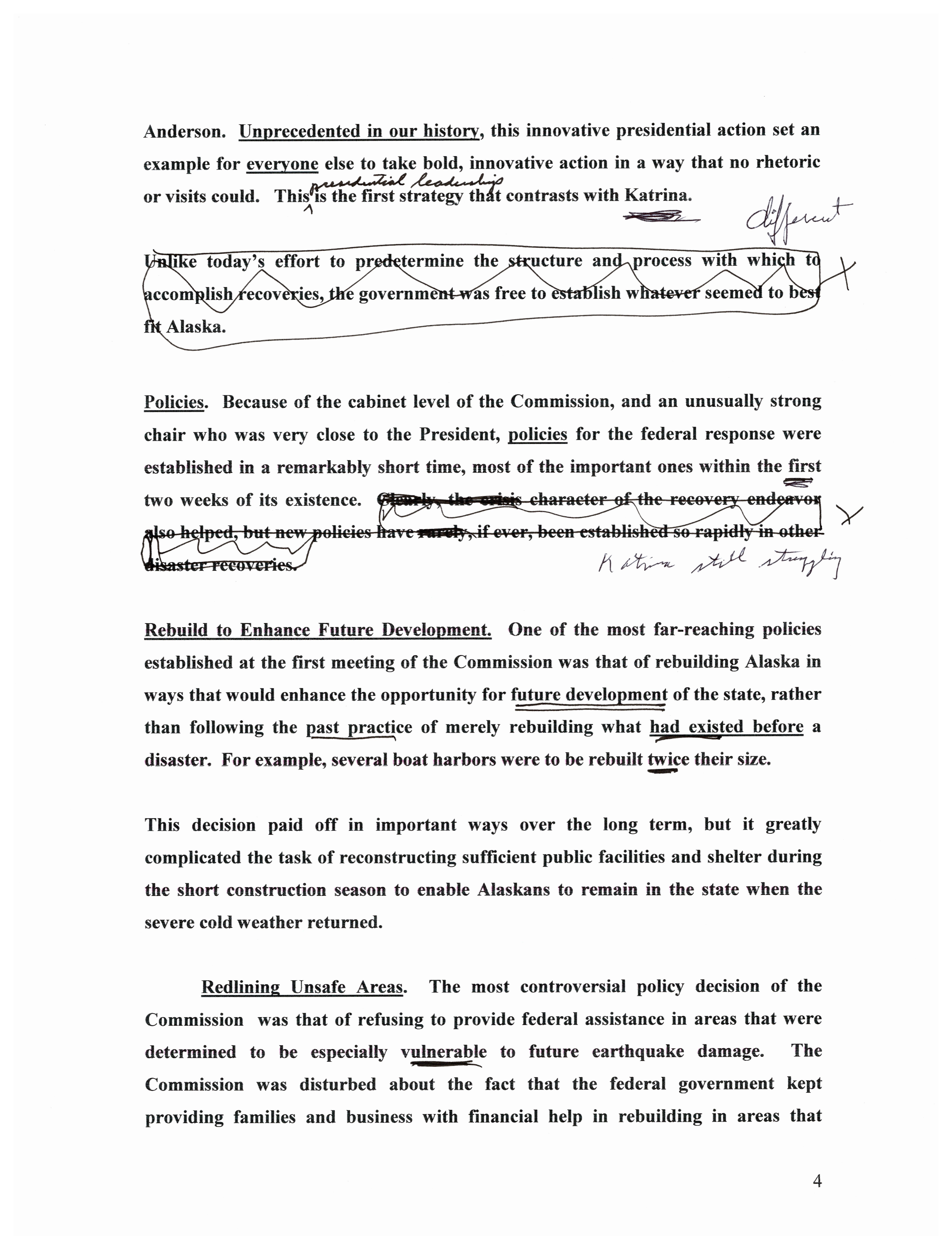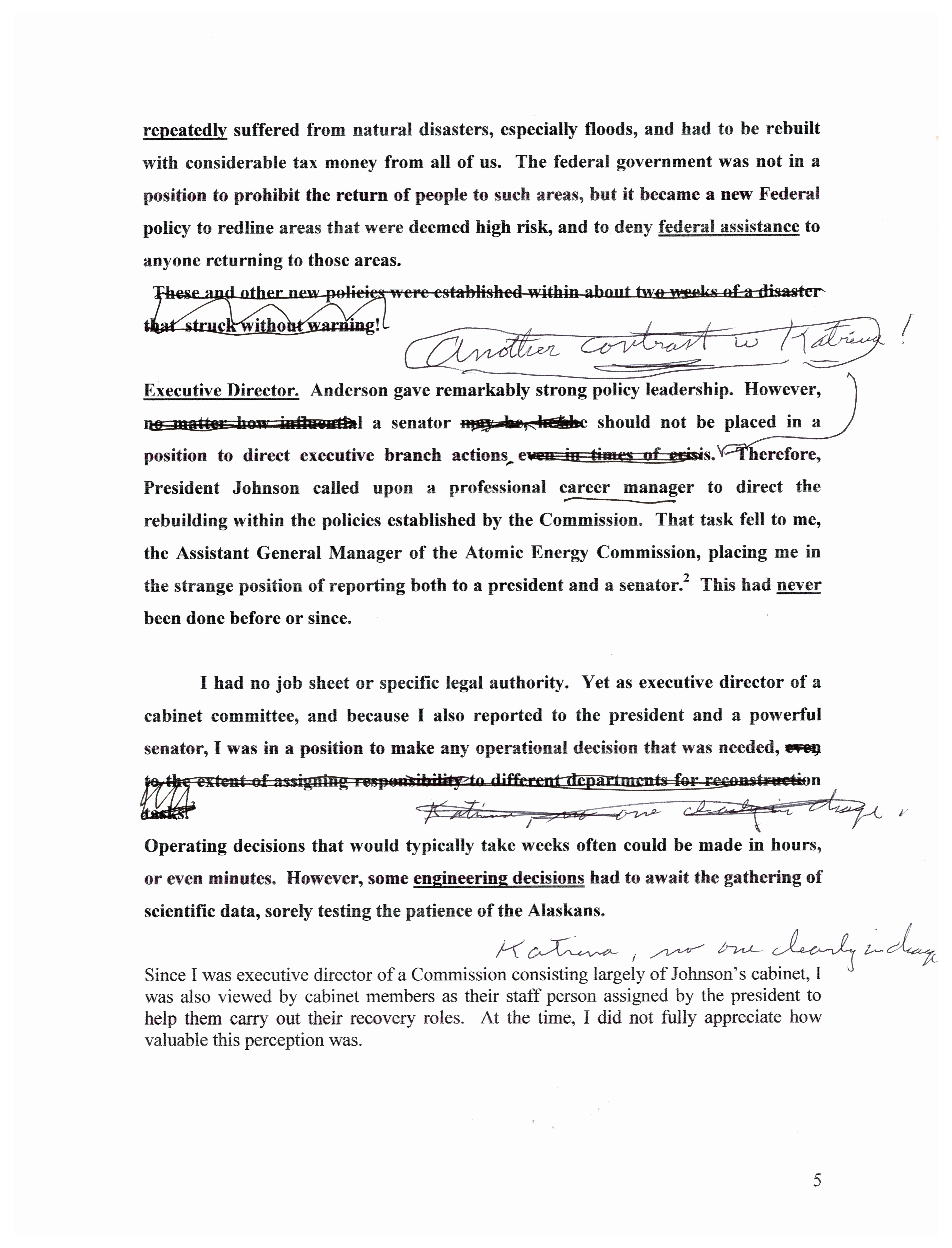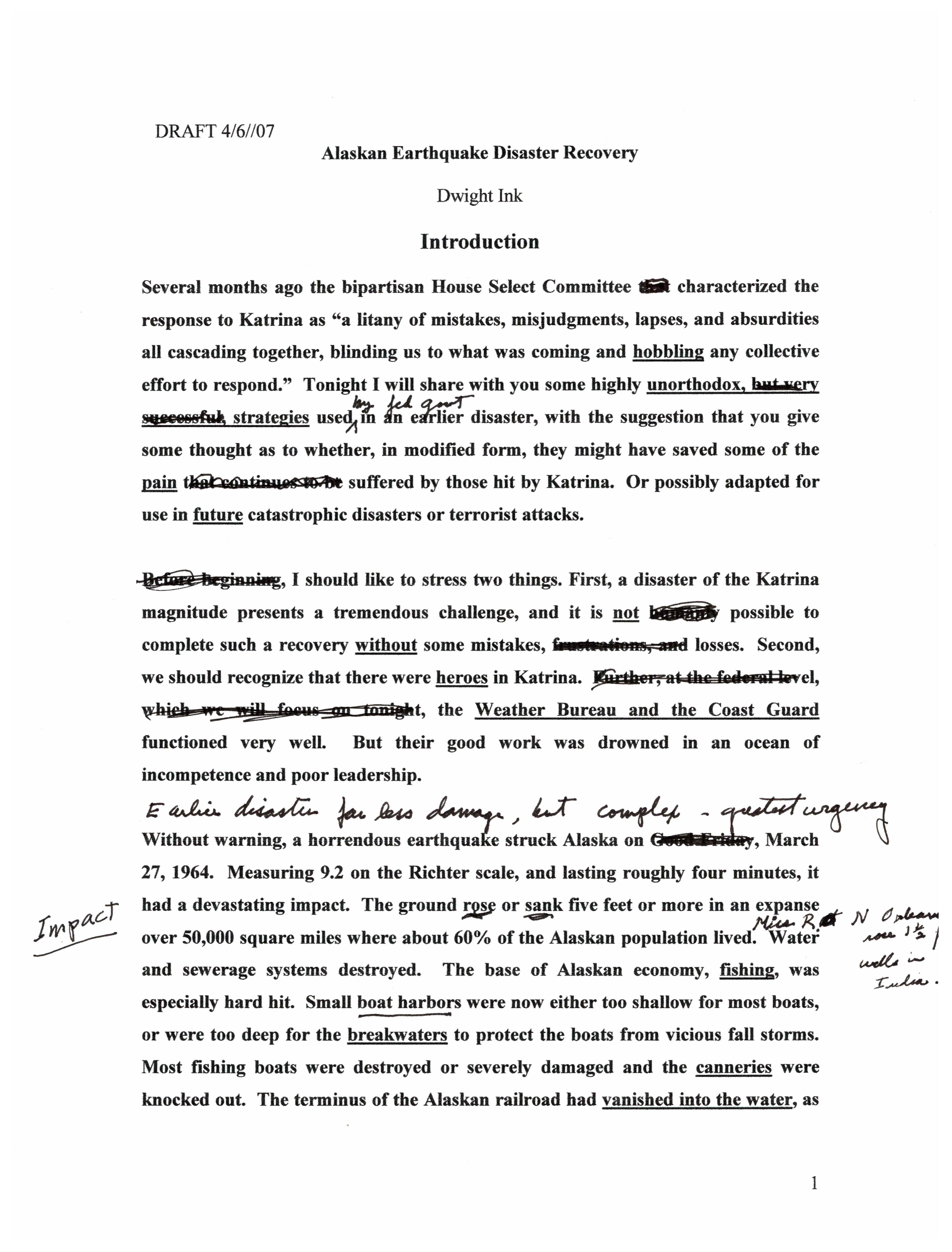 - Writings: Ink, Dwight. Hurricane Katrina recovery in context of Alaska earthquake manuscripts and notes, 2005-2010 circa