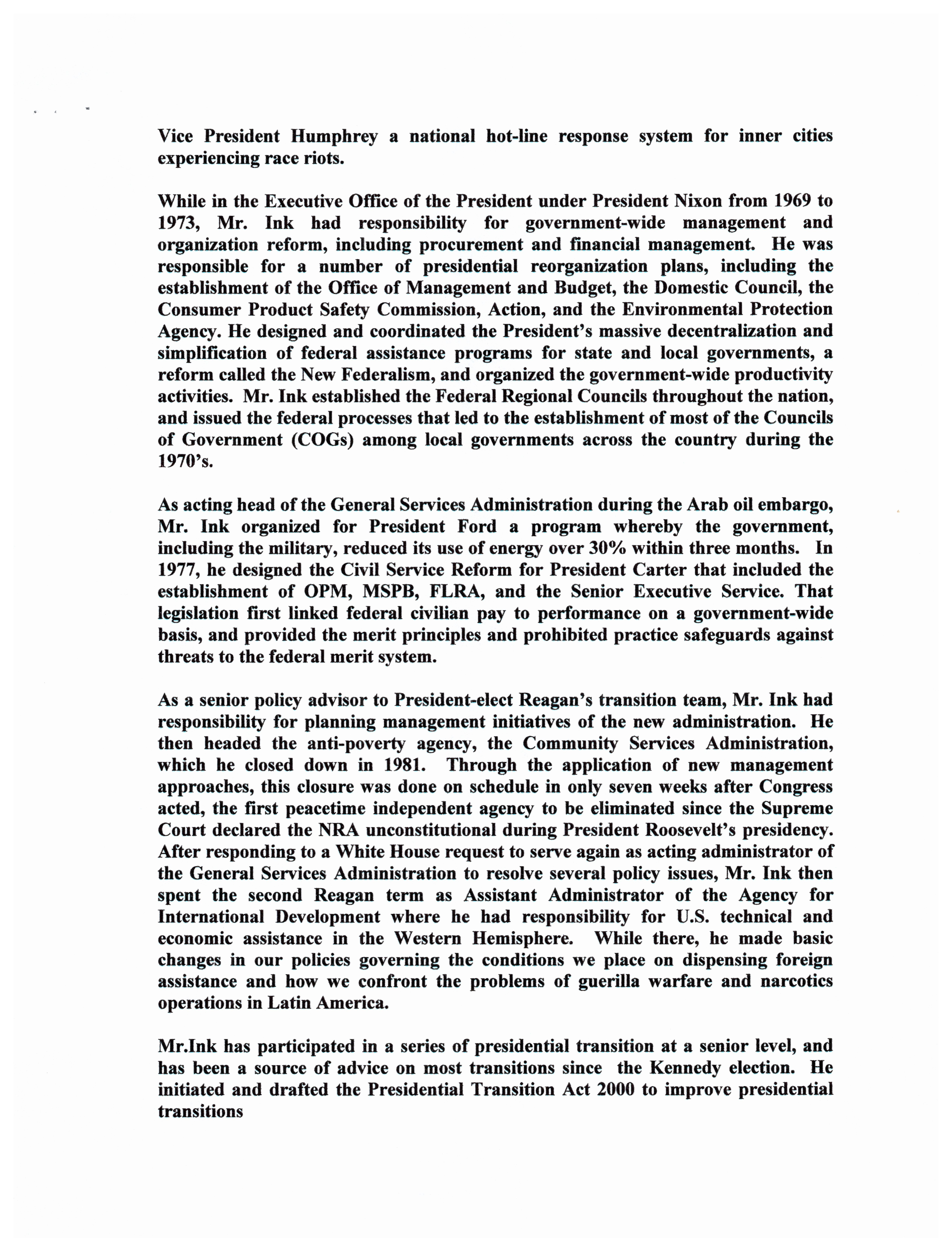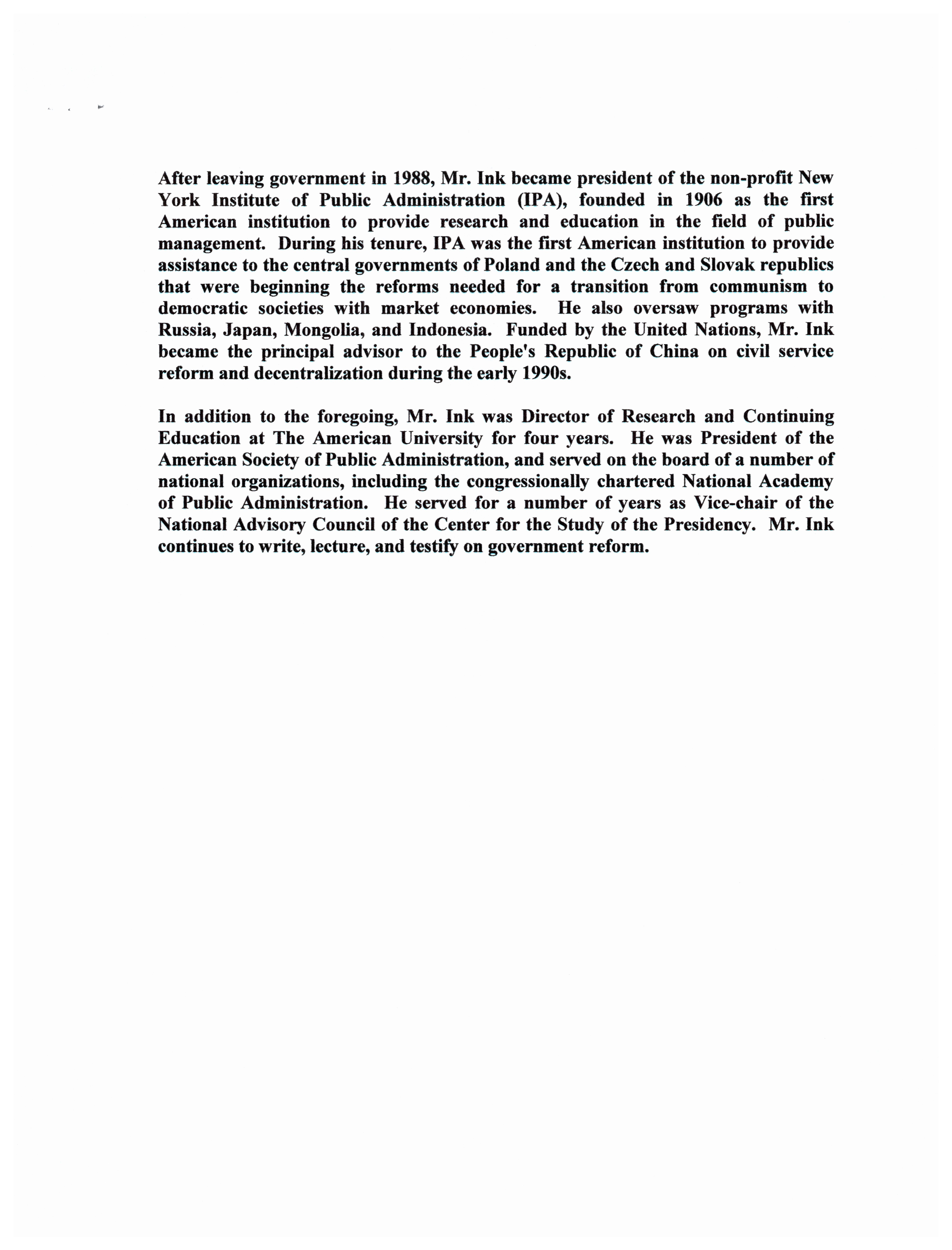 - Dwight Ink: President Emeritus, Institute of Public Administration