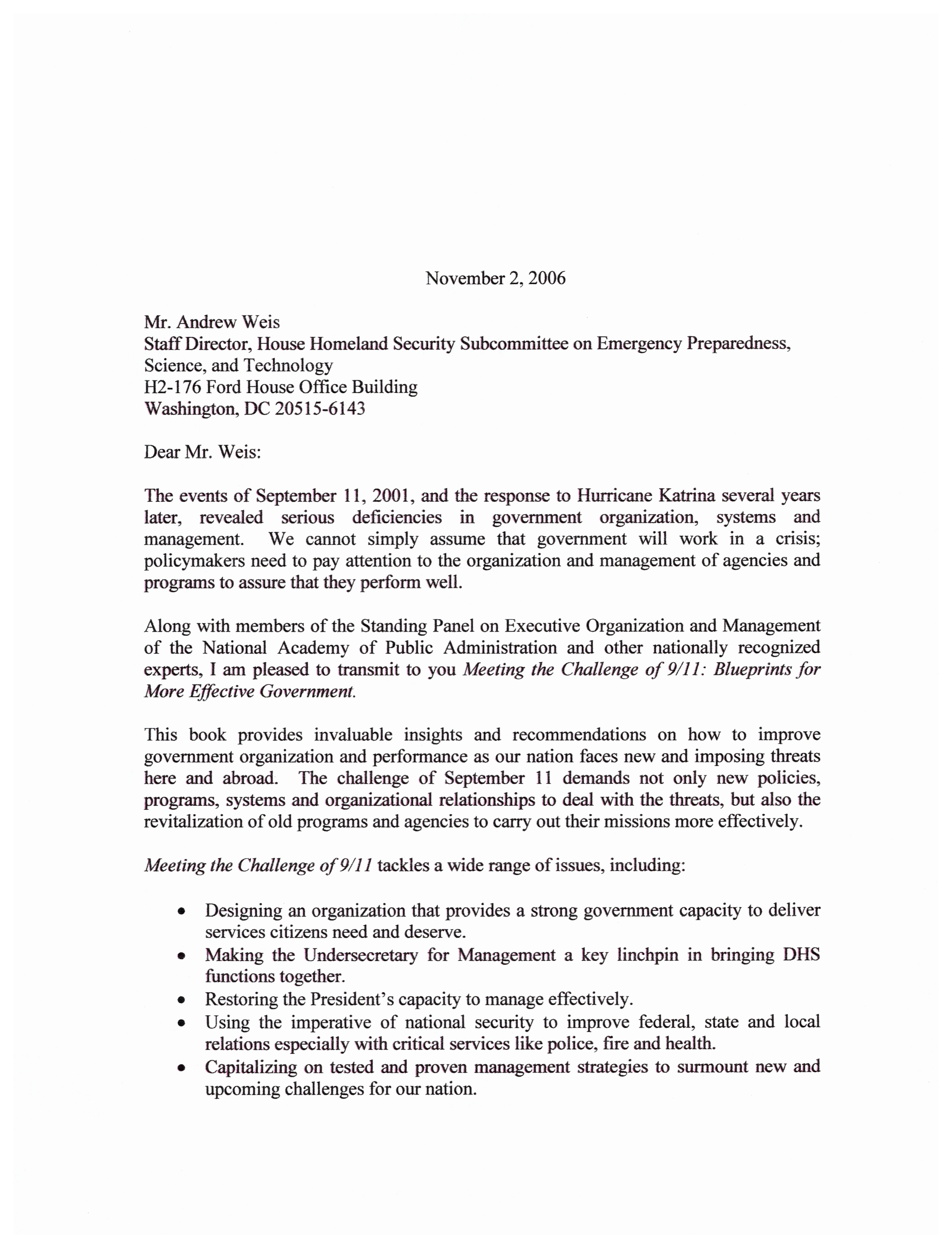 - Thomas H. Stanton letter to Andrew Weis, November 2, 2006