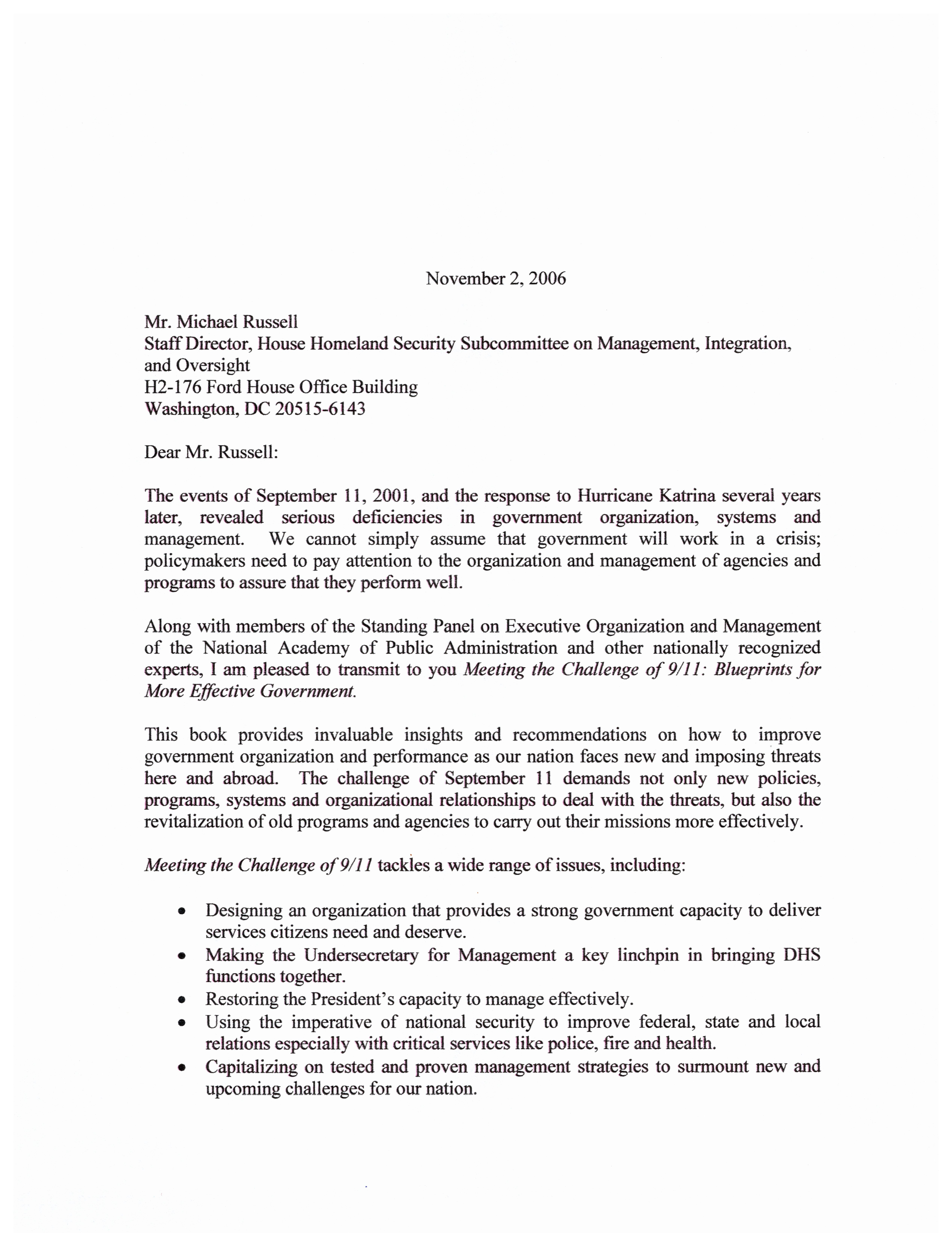 Thomas H. Stanton letter to Michael Russell, November 2, 2006 Item Info