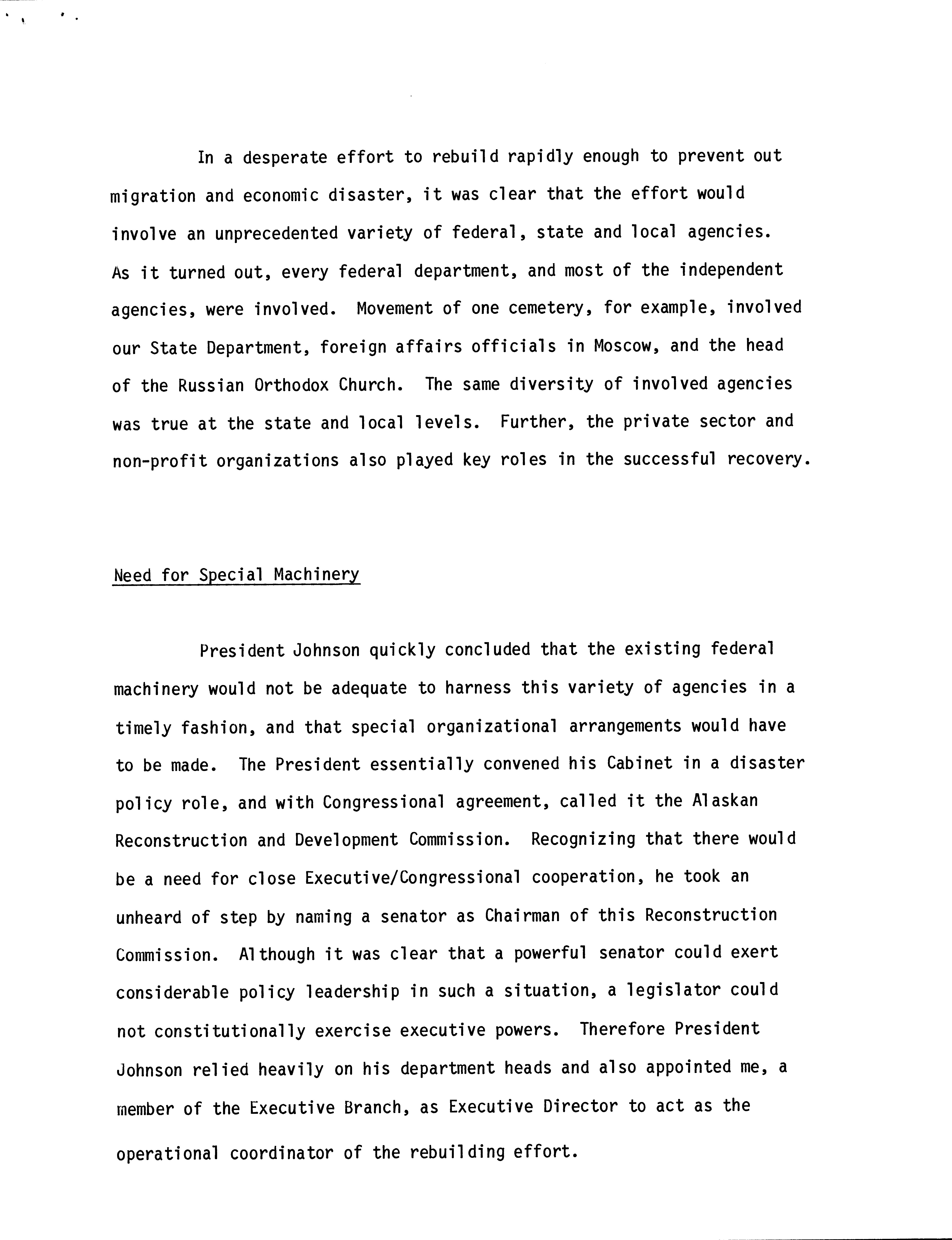 - "Response to Alaskan earthquake," case study, 1989