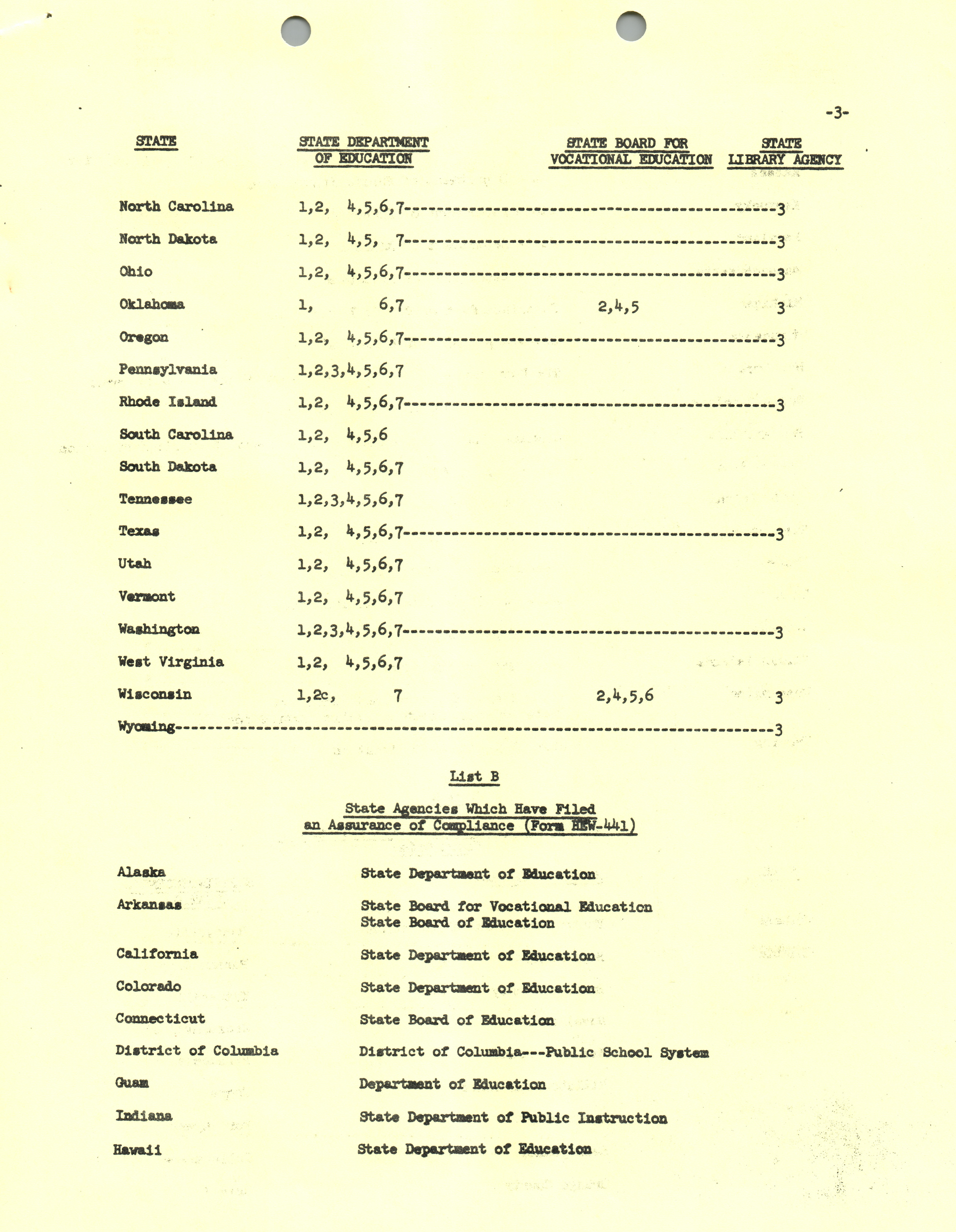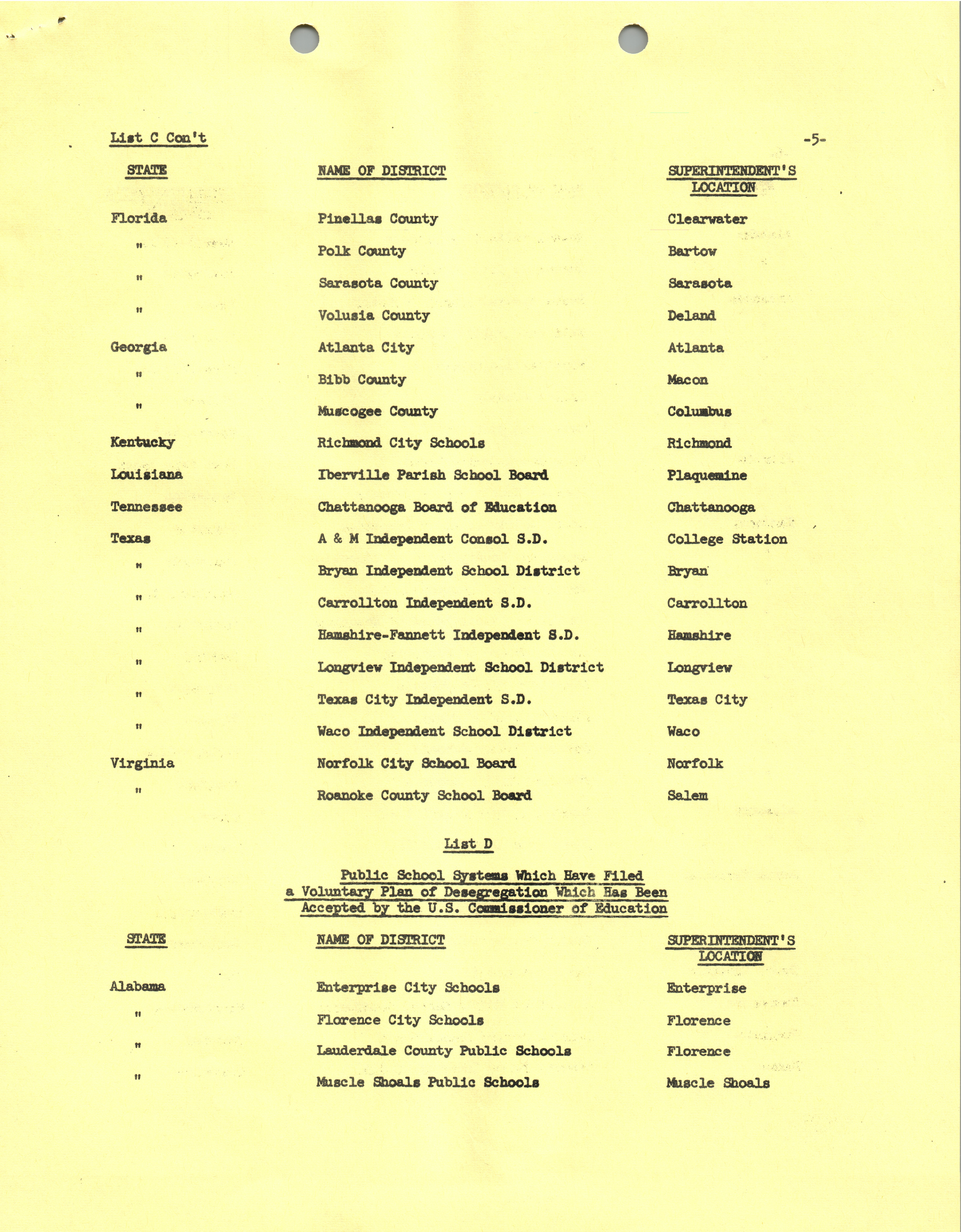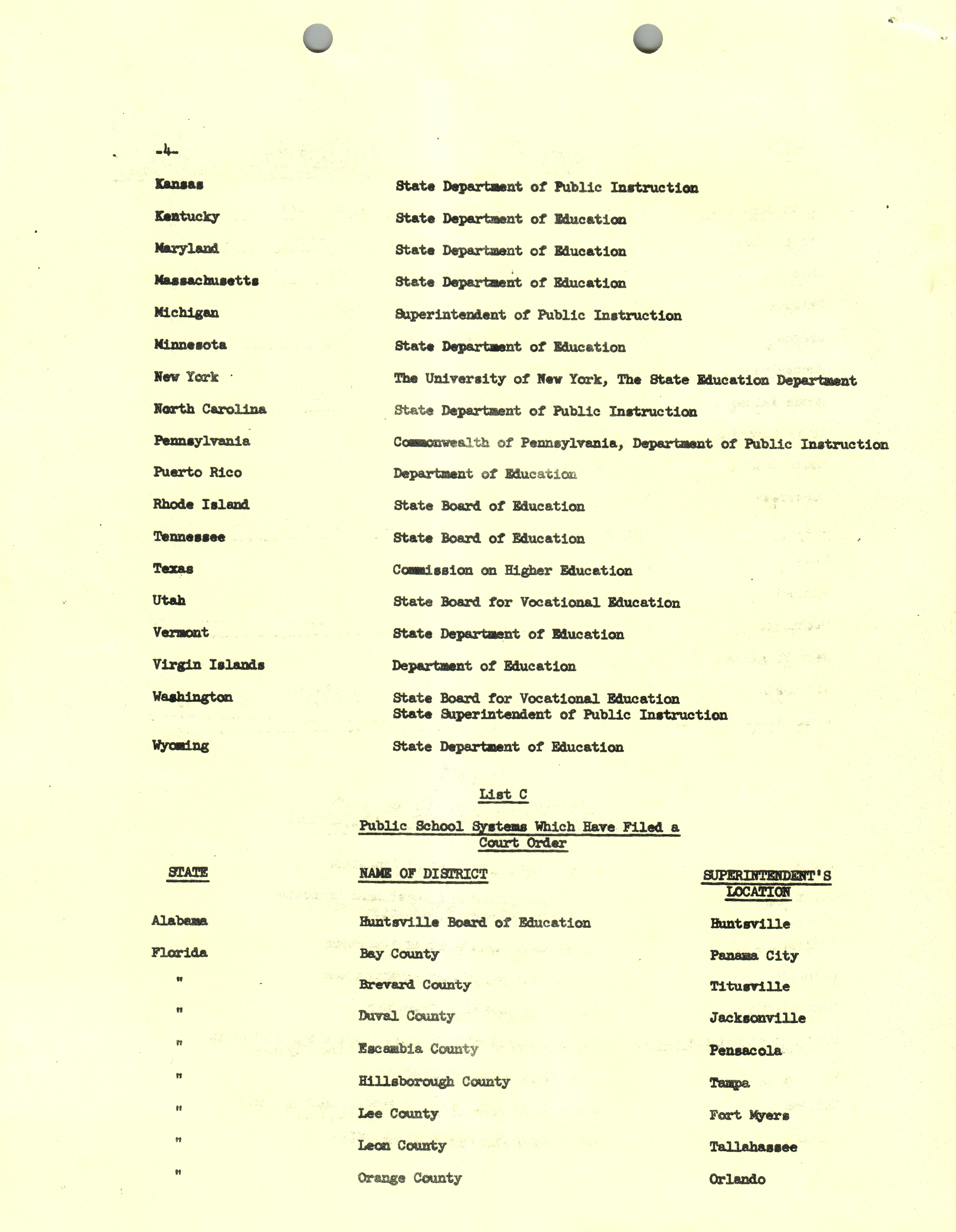 - "Statements of compliance, assurance of compliance, court orders, and voluntary desegregation plans accepted by the U.S. commissioner of education as adequate for the Civil Rights Act of 1964, May 11, 1965", Dwight Ink Collection, Iowa State University Library Digital Collections