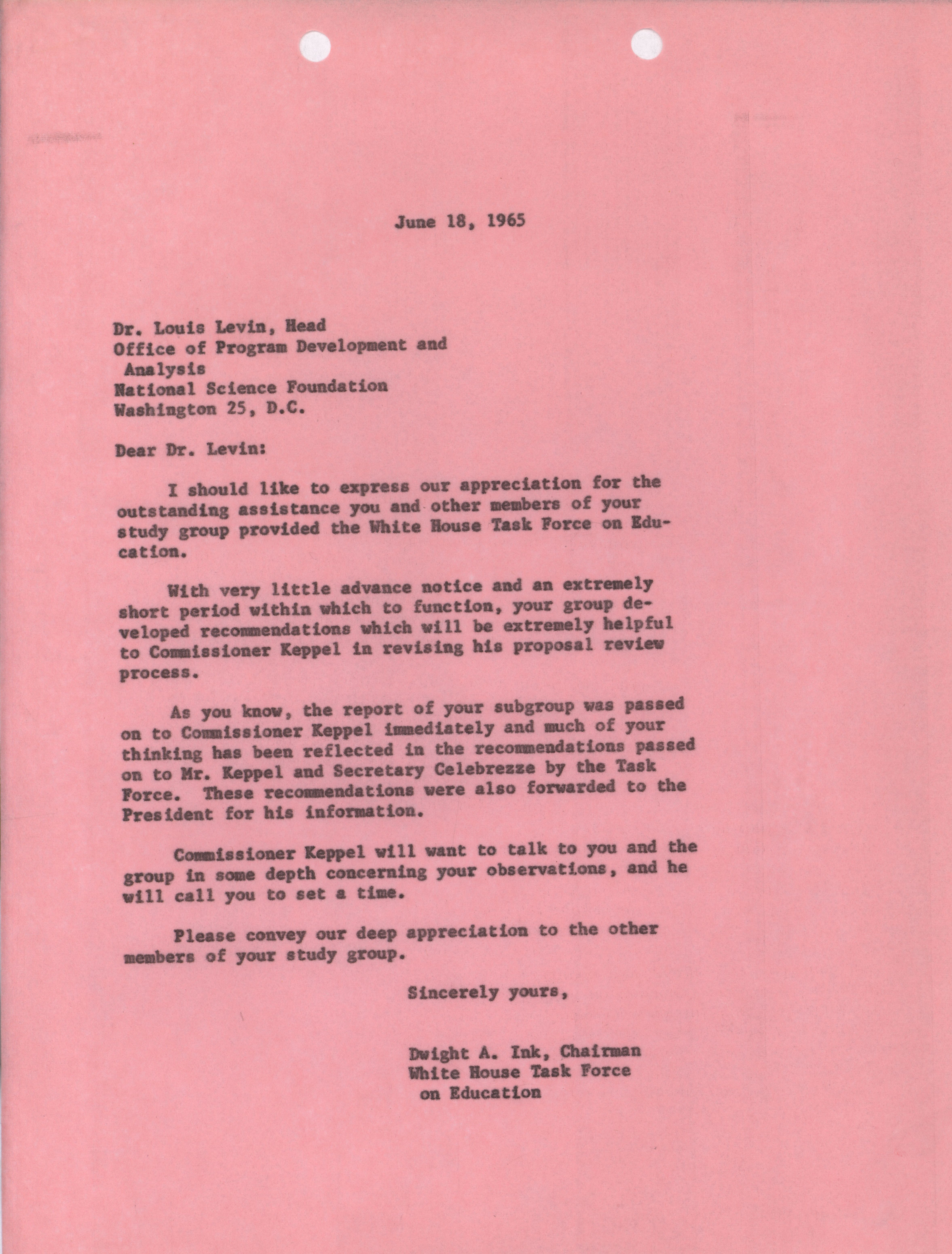 - Dwight A. Ink letter to Louis Levin, June 18, 1965