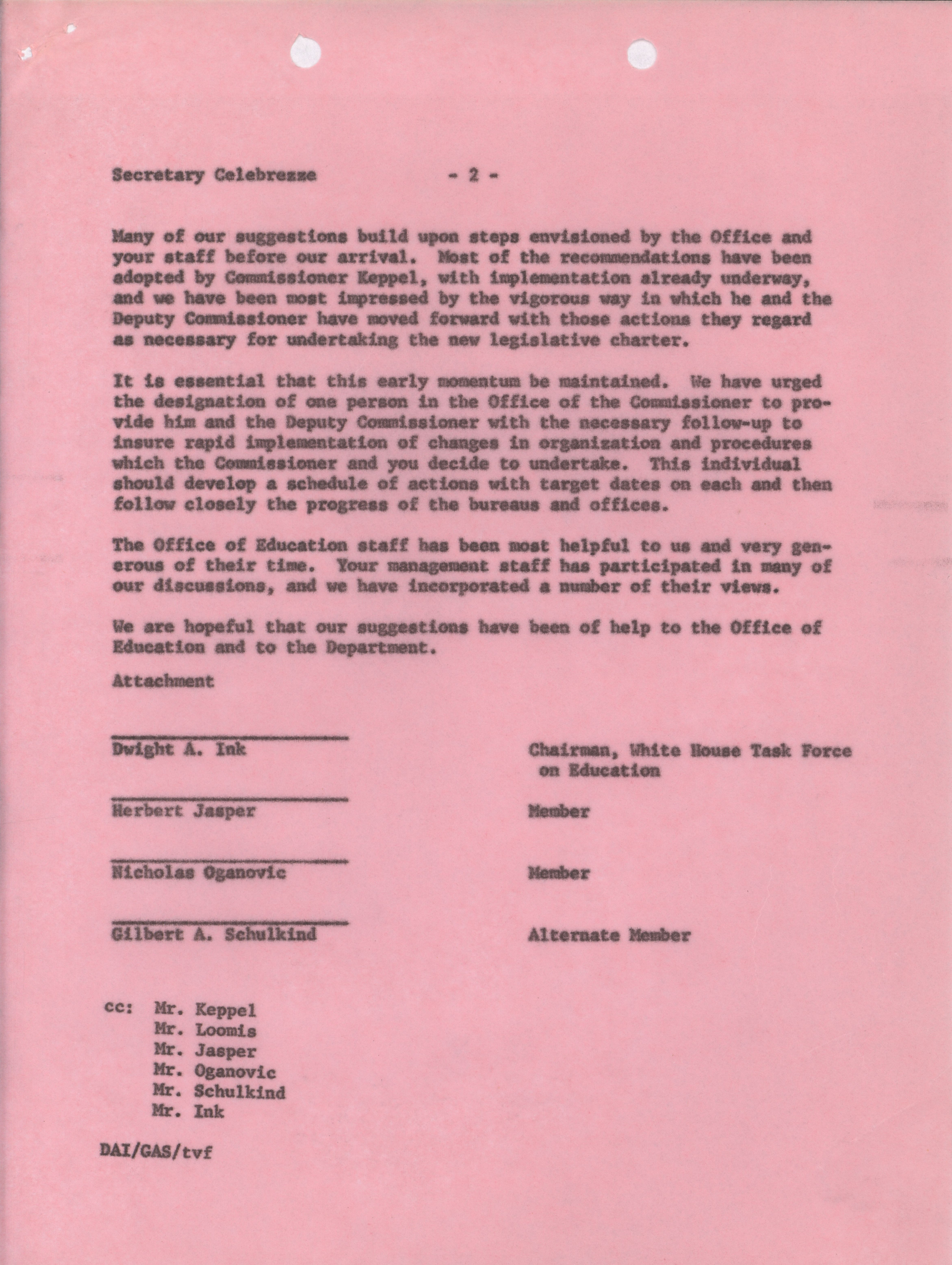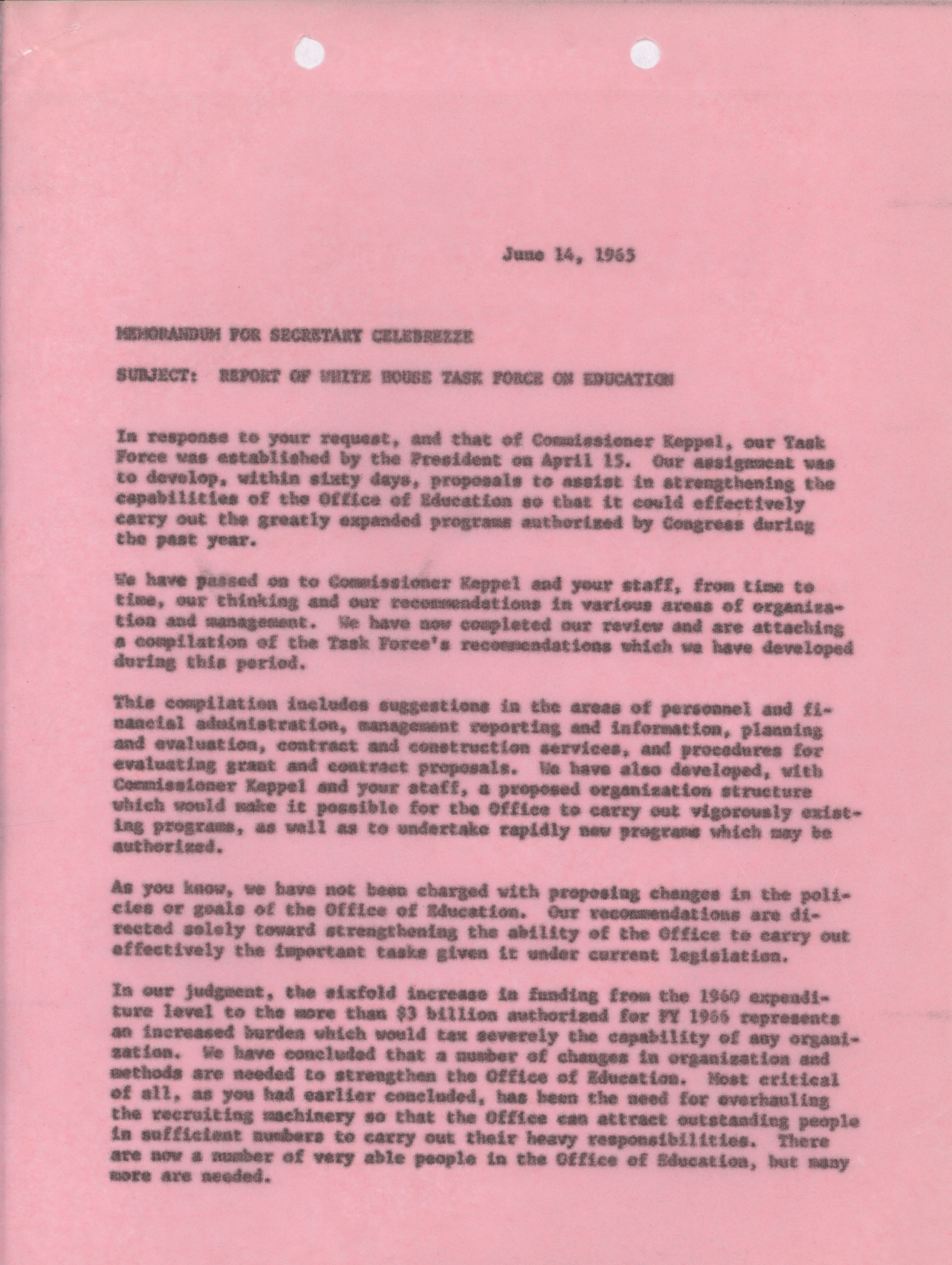 - Dwight A. Ink memorandum to Secretary Celebrezze, June 14, 1965