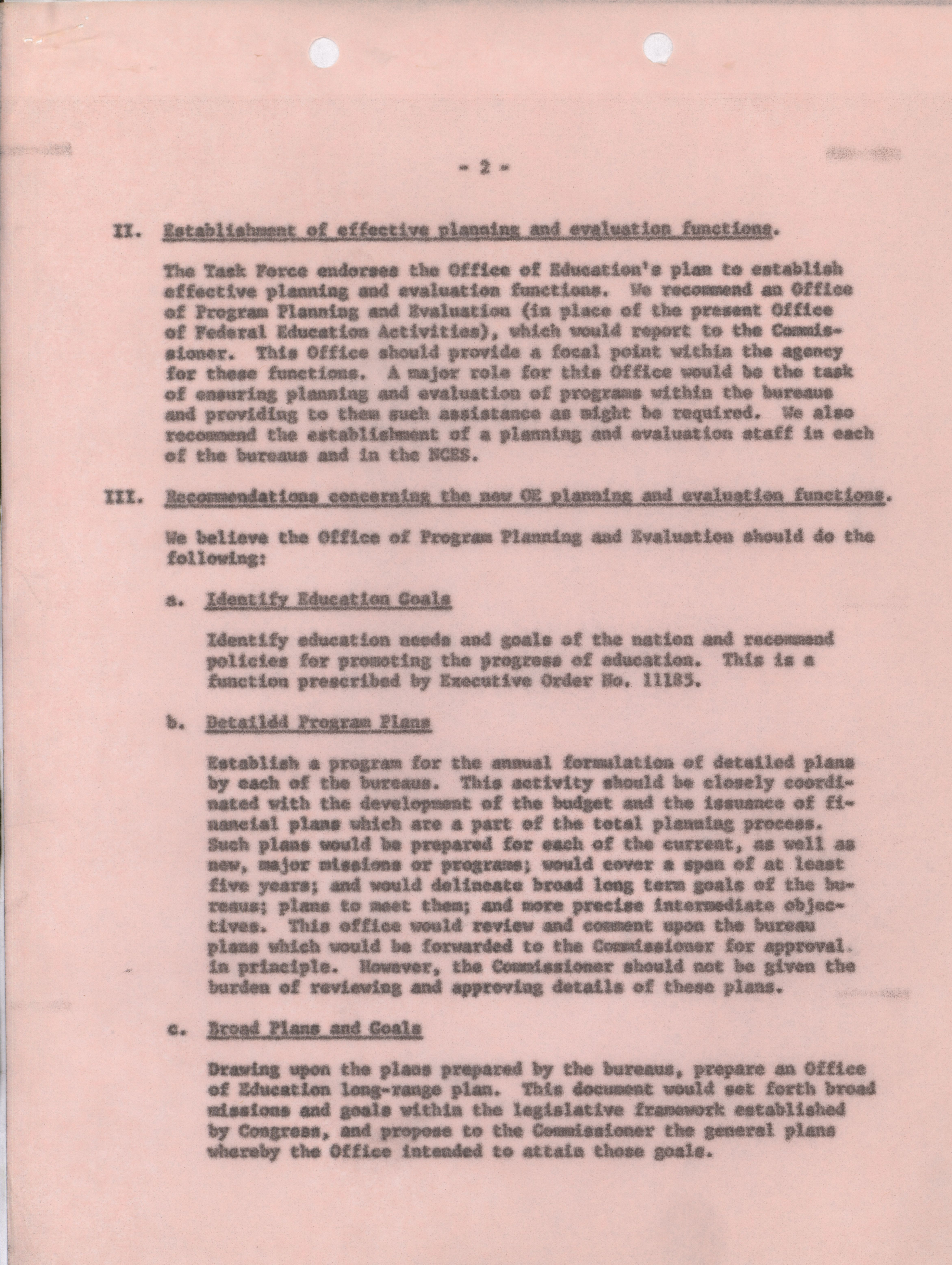 - Dwight A. Ink memorandum to Commissioner Keppel regarding planning and evaluation, June 12, 1965