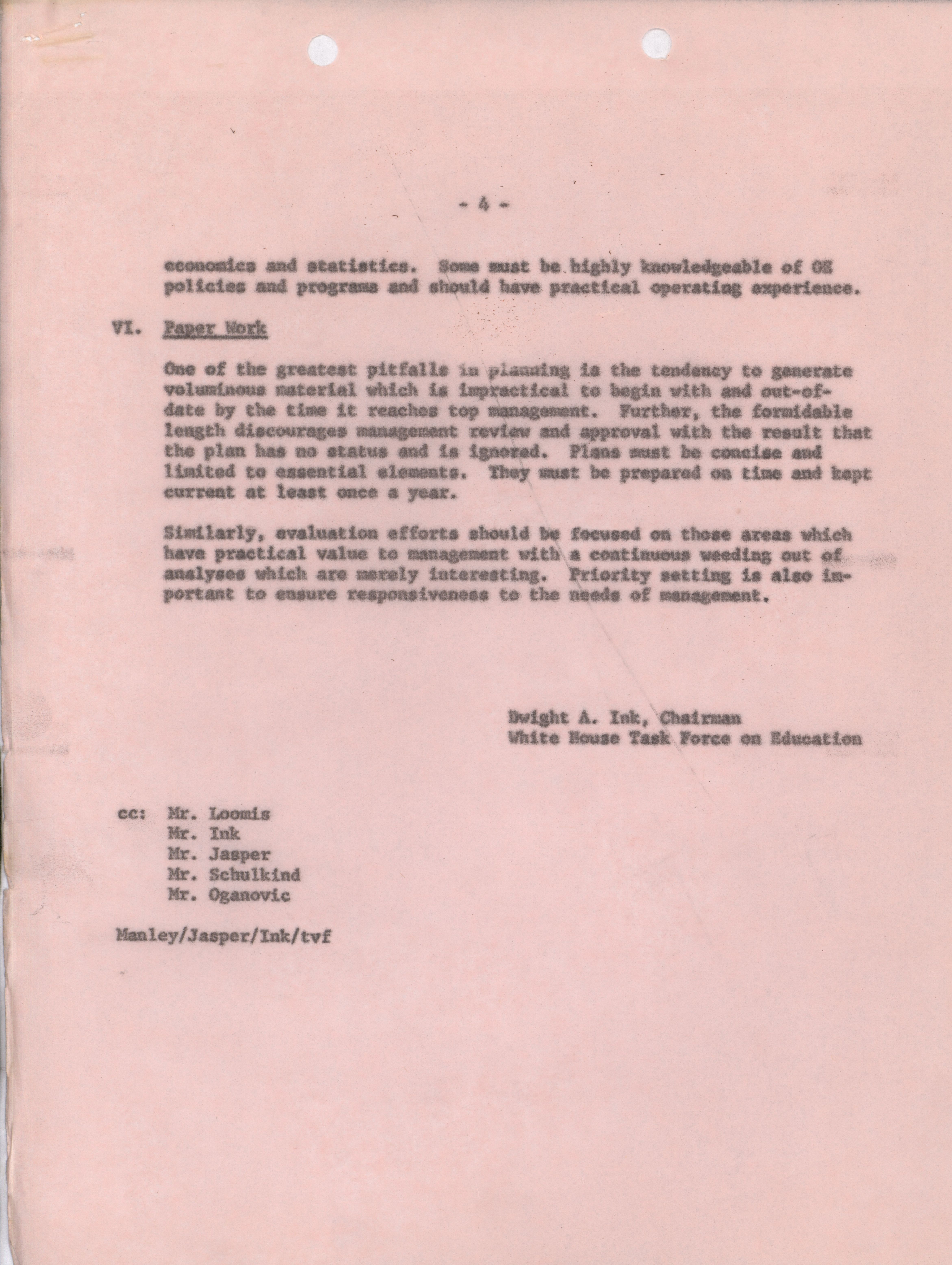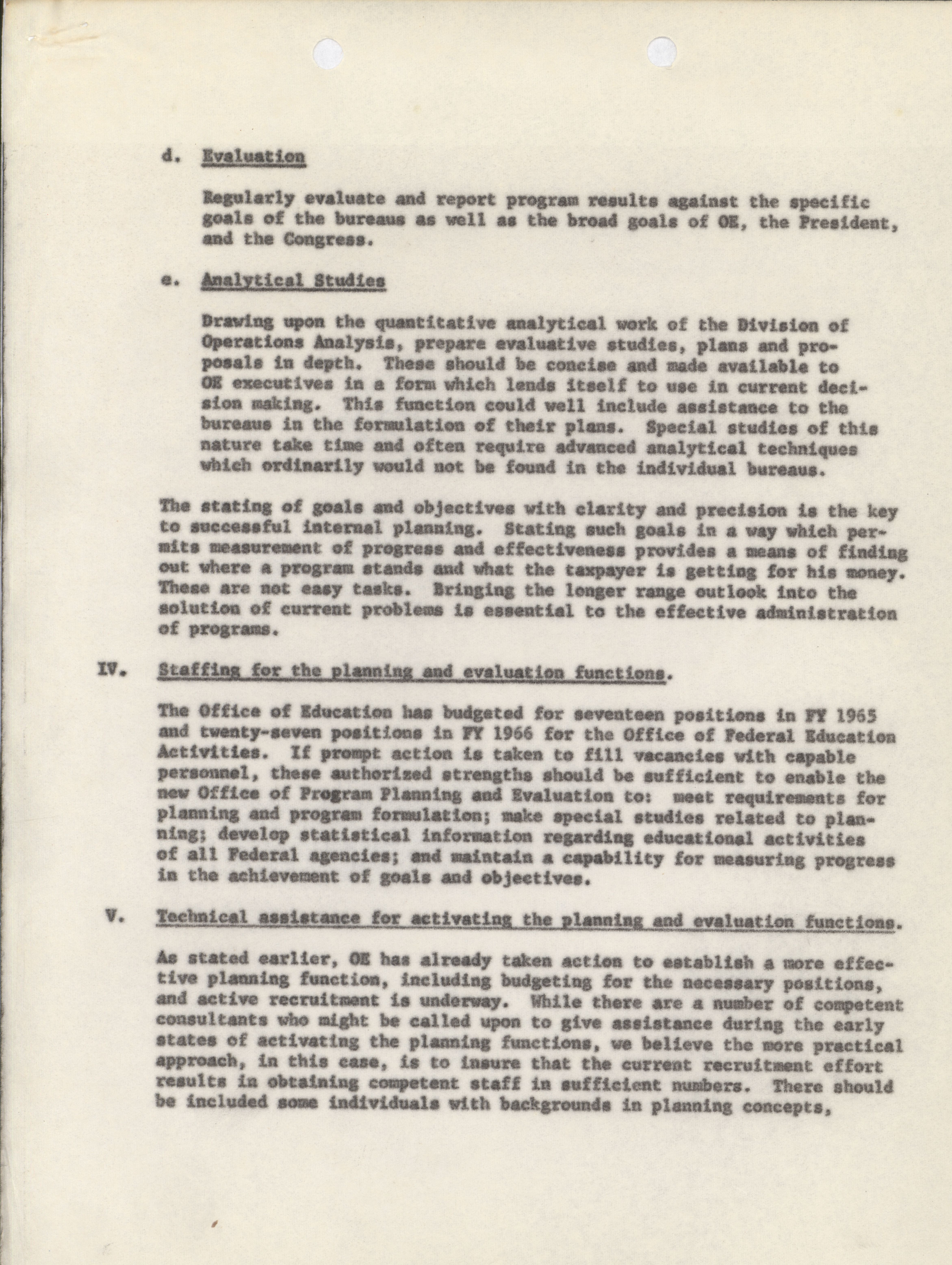 - "Dwight A. Ink memorandum to Commissioner Keppel regarding planning and evaluation, June 12, 1965", Dwight Ink Collection, Iowa State University Library Digital Collections