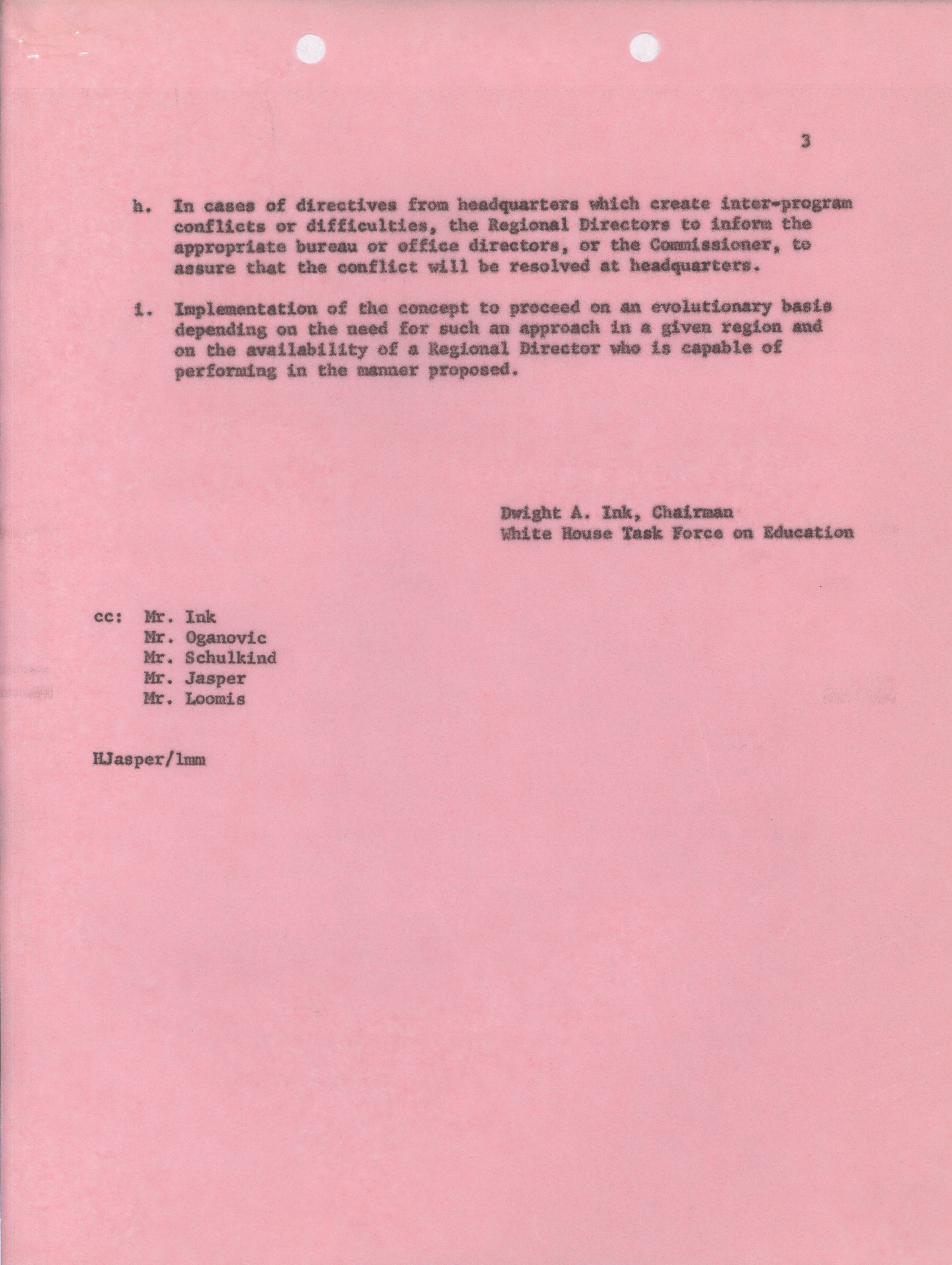 - Dwight A. Ink memorandum to Commissioner Keppel, June 11, 1965