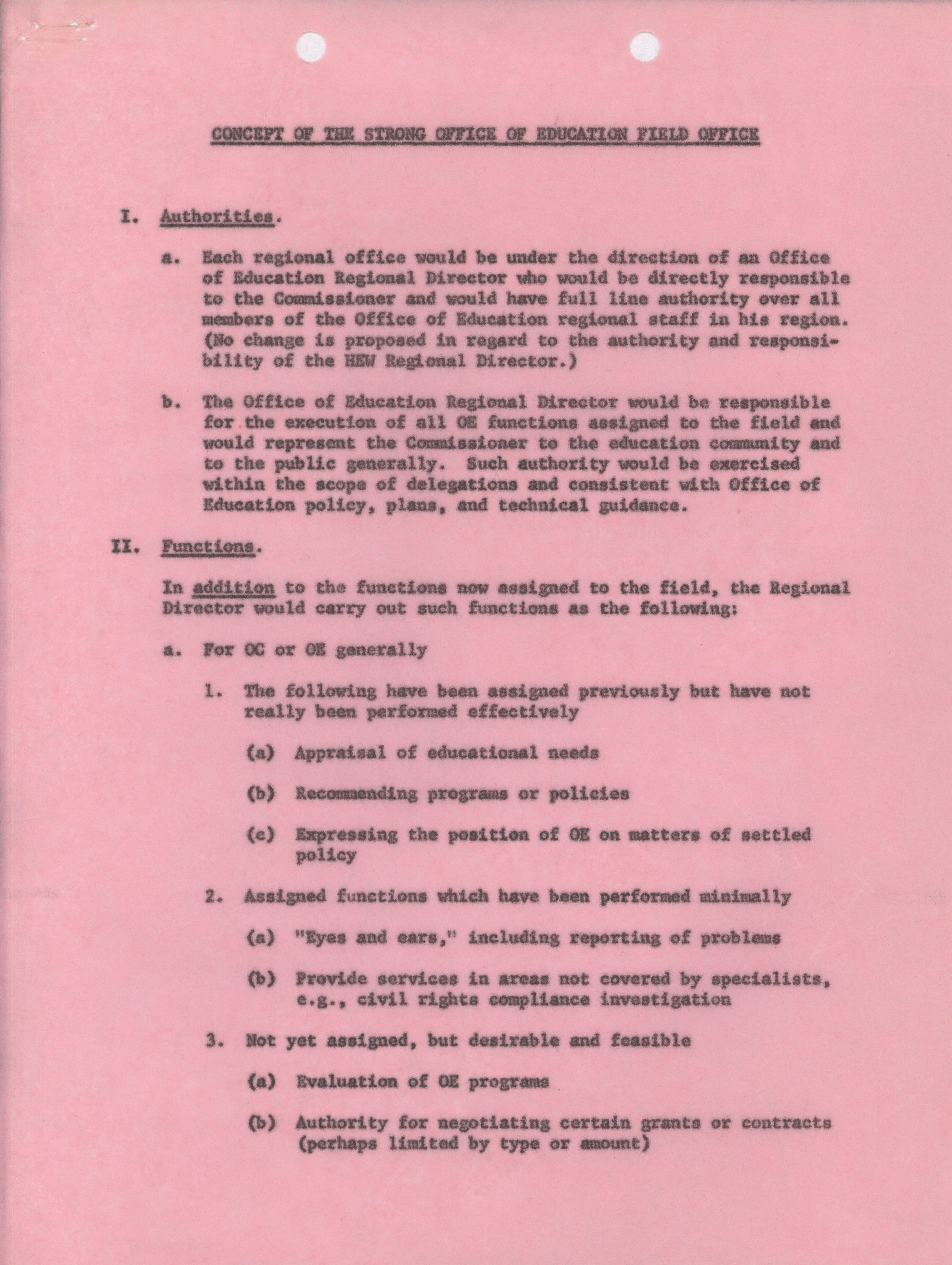 - "Concept of the strong Office of Education field office", Dwight Ink Collection, Iowa State University Library Digital Collections
