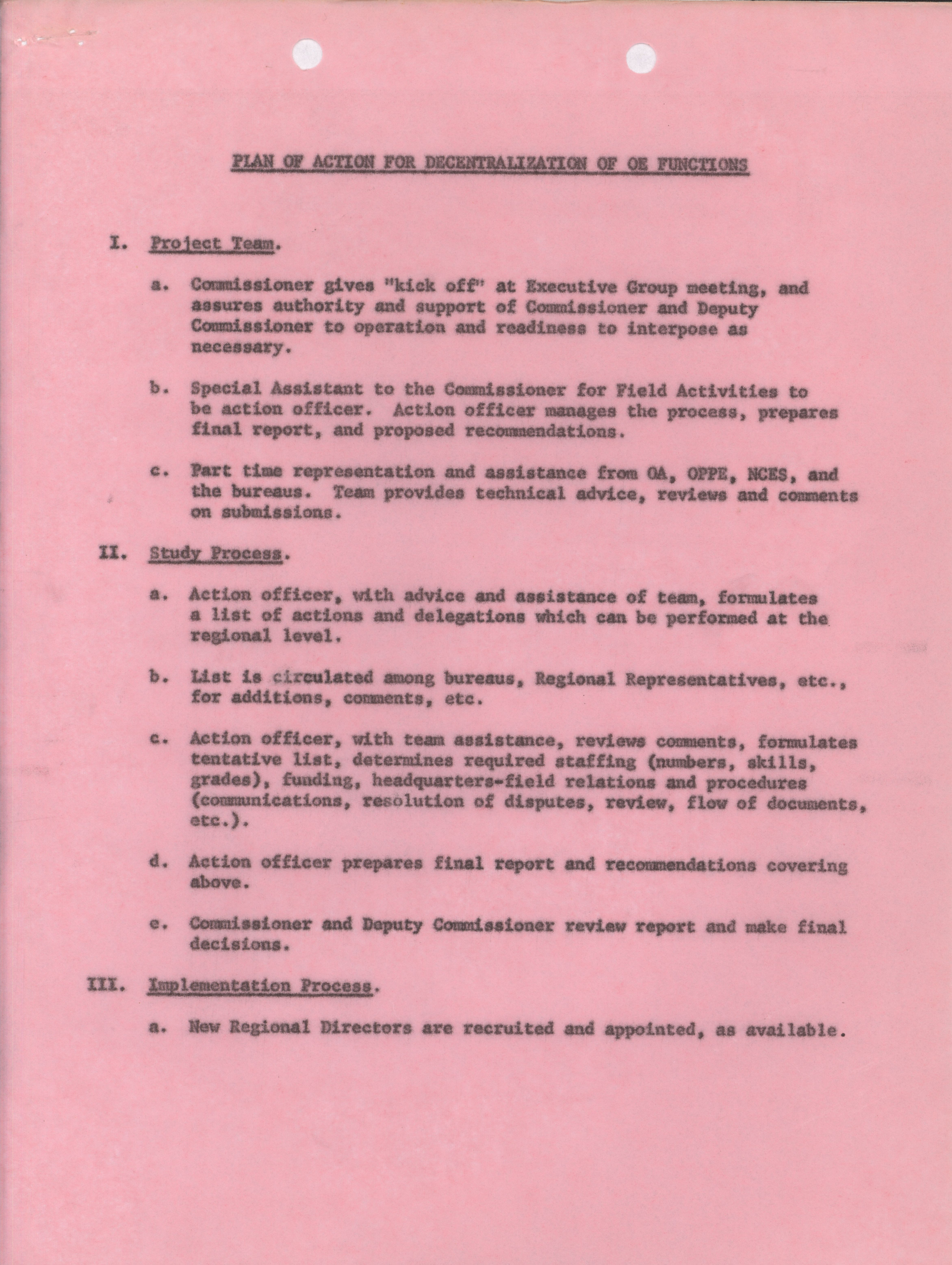 - "Plan of action for decentralization of OE functions", Dwight Ink Collection, Iowa State University Library Digital Collections