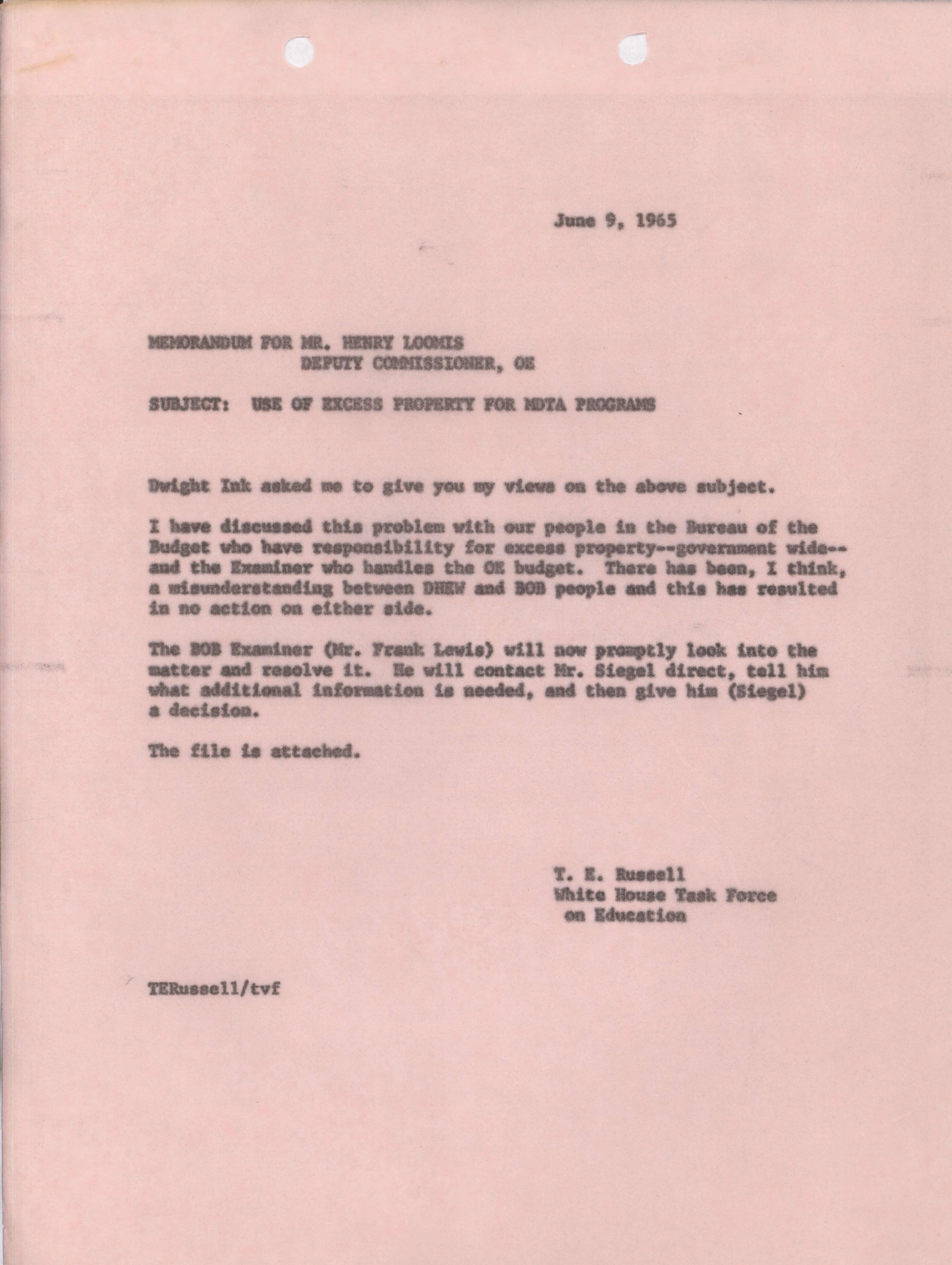 - T. E. Russell memorandum to Henry Loomis, June 9, 1965