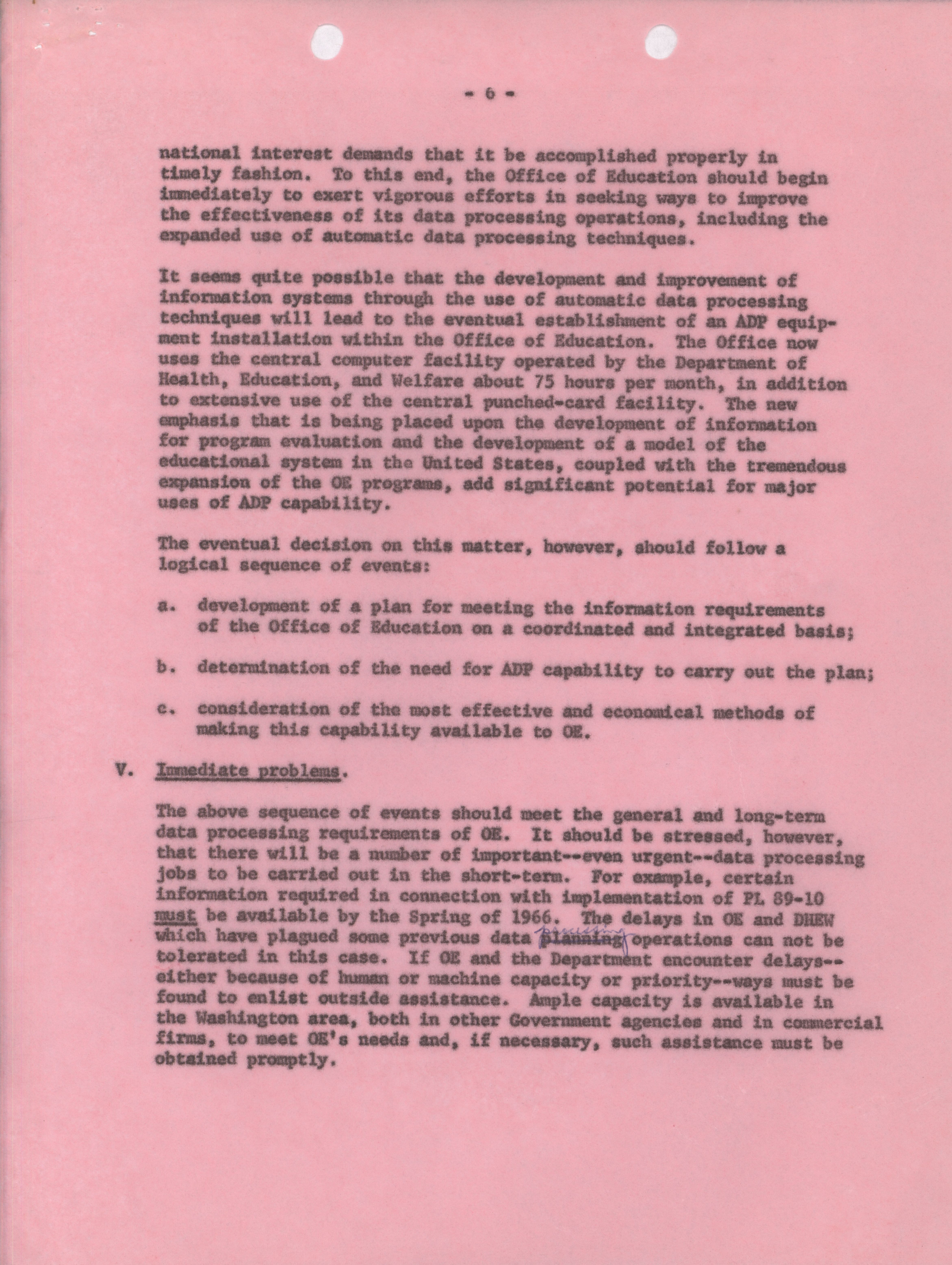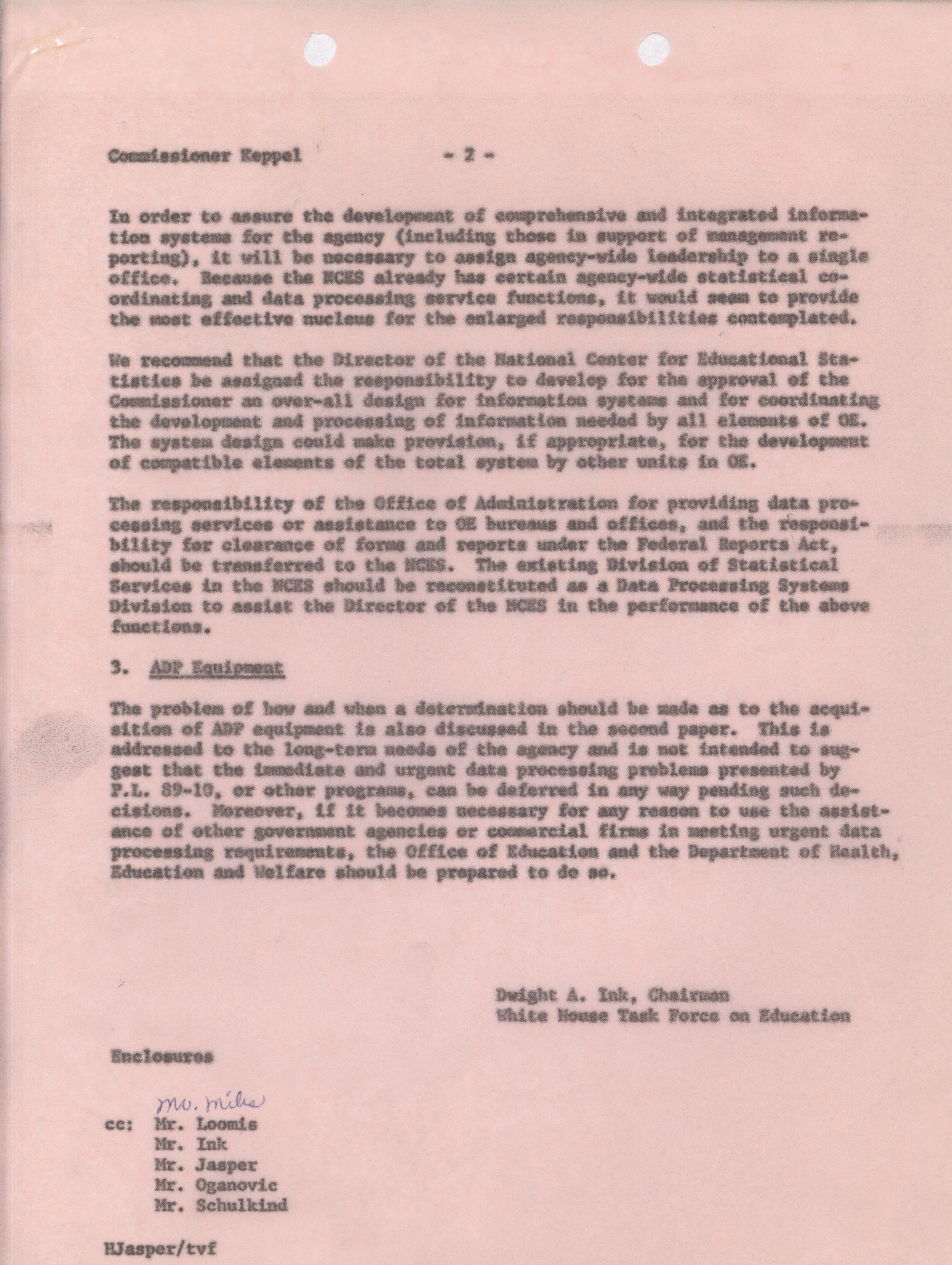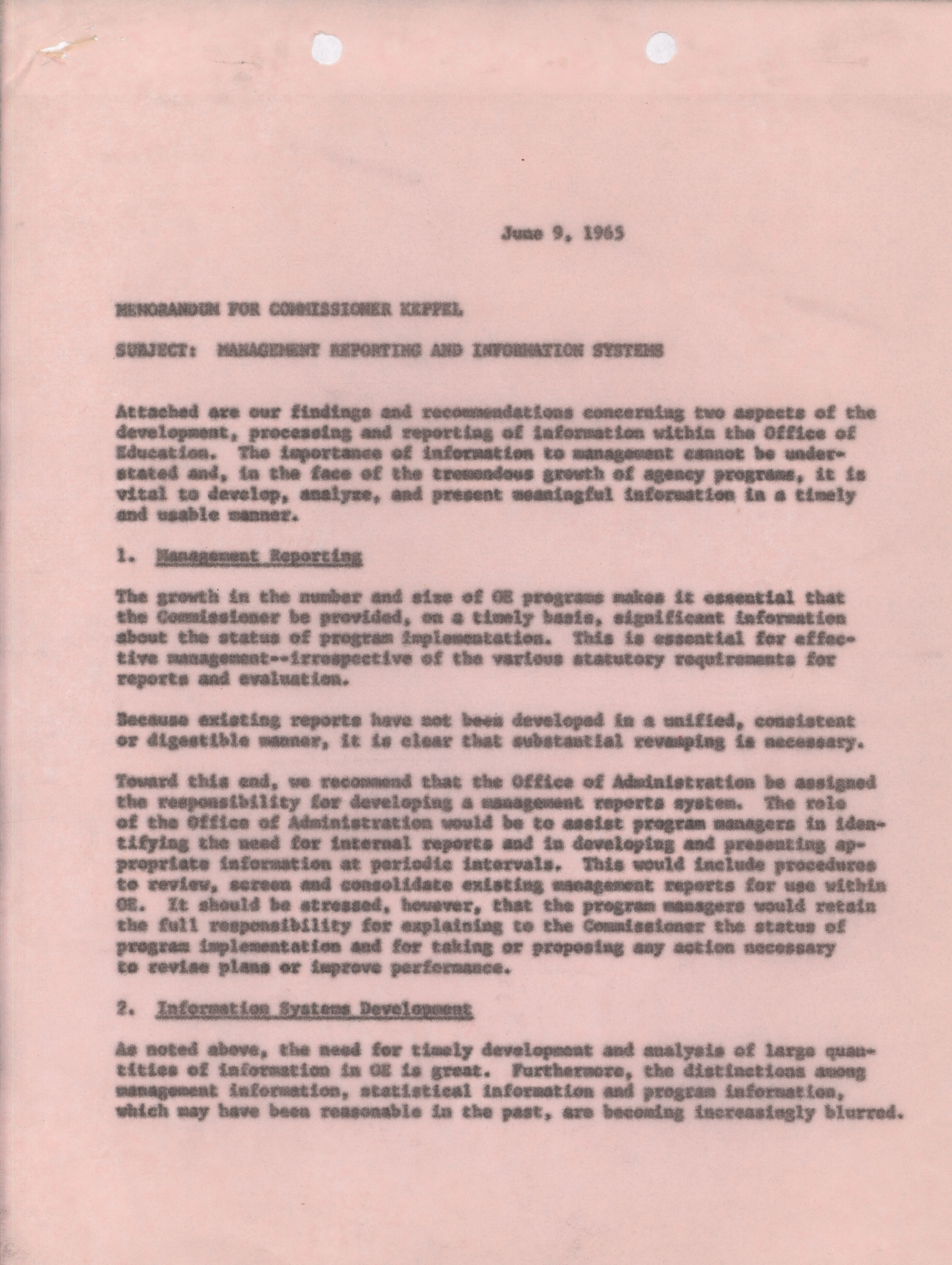 - Dwight A. Ink memorandum to Commissioner Keppel, June 9, 1965