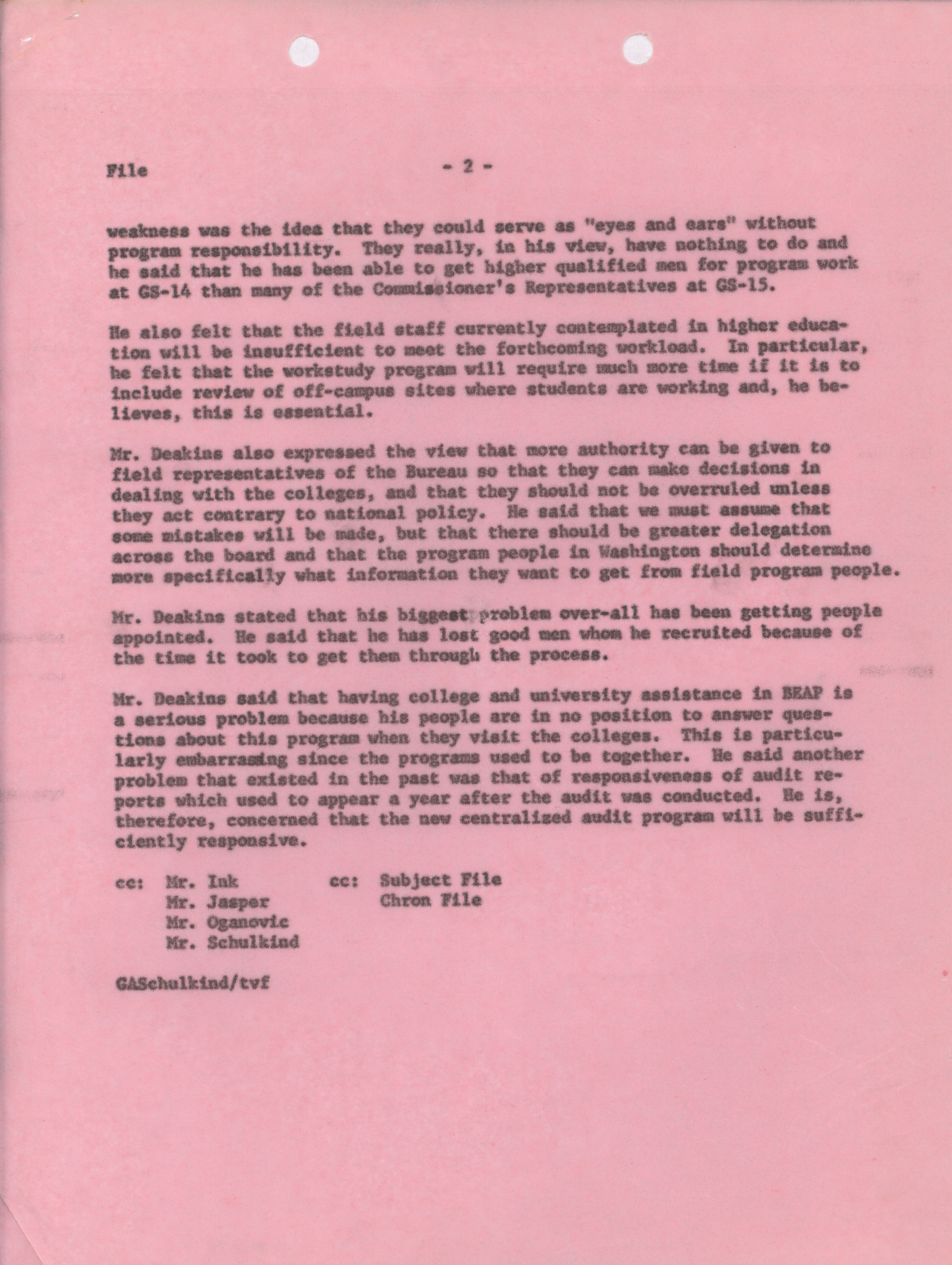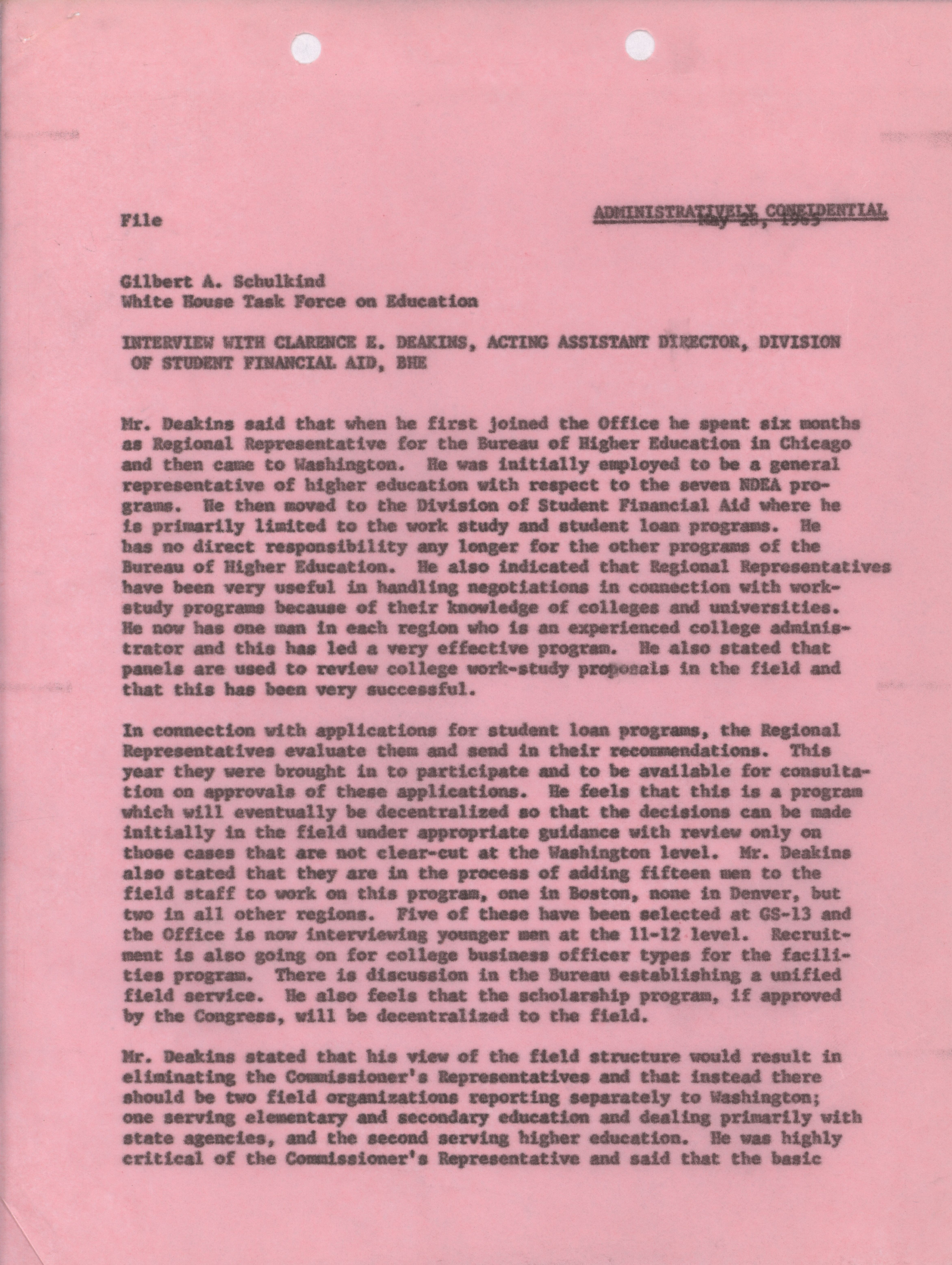 - Gilbert A. Schulkind interview with Clarence E. Deakins, May 28, 1965