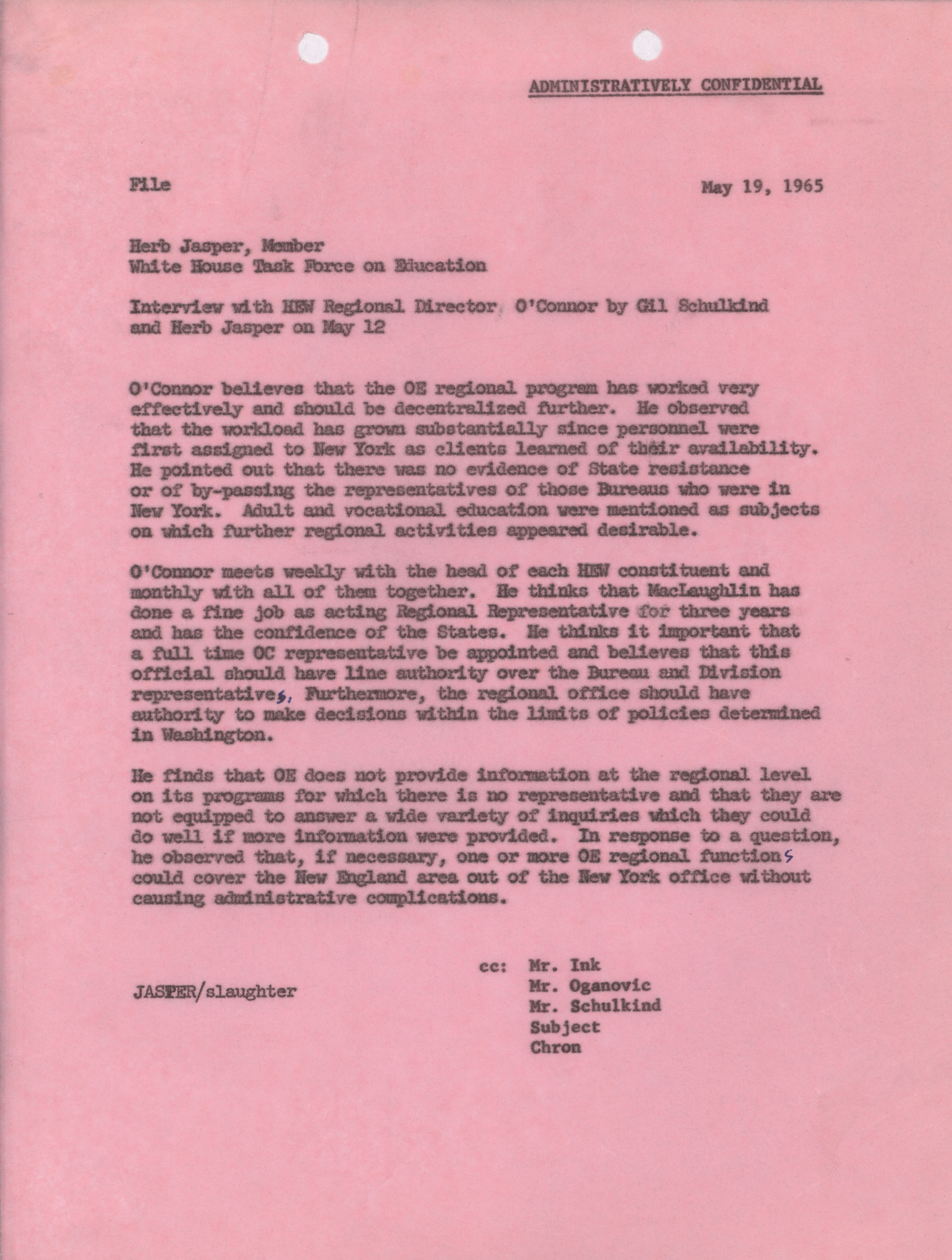 - Herb Jasper and Gil Schulkind interview with Regional Director O'Connor, May 19, 1965