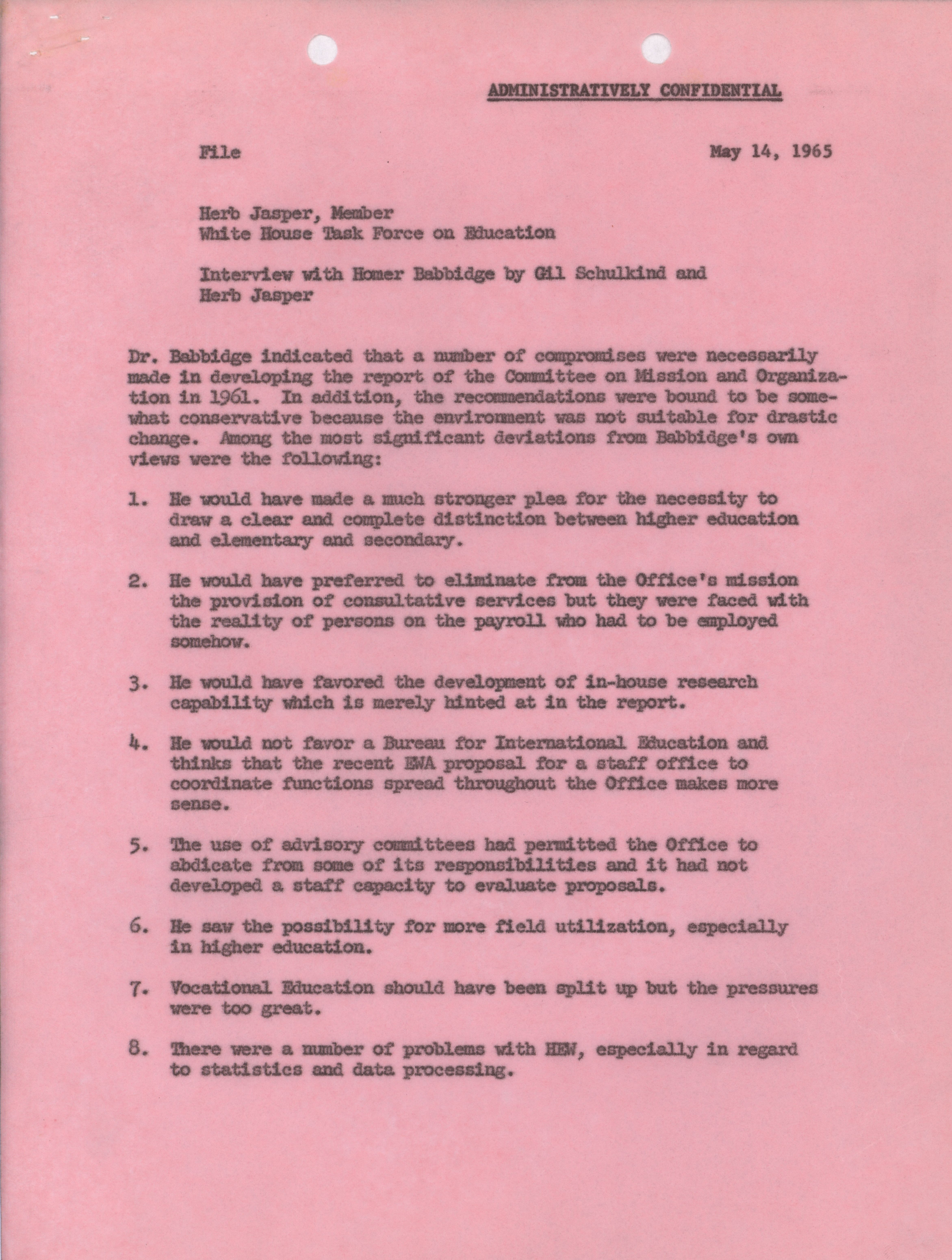 - Herb Jasper and Gil Schulkind interview with Homer Babbidge, May 14, 1965