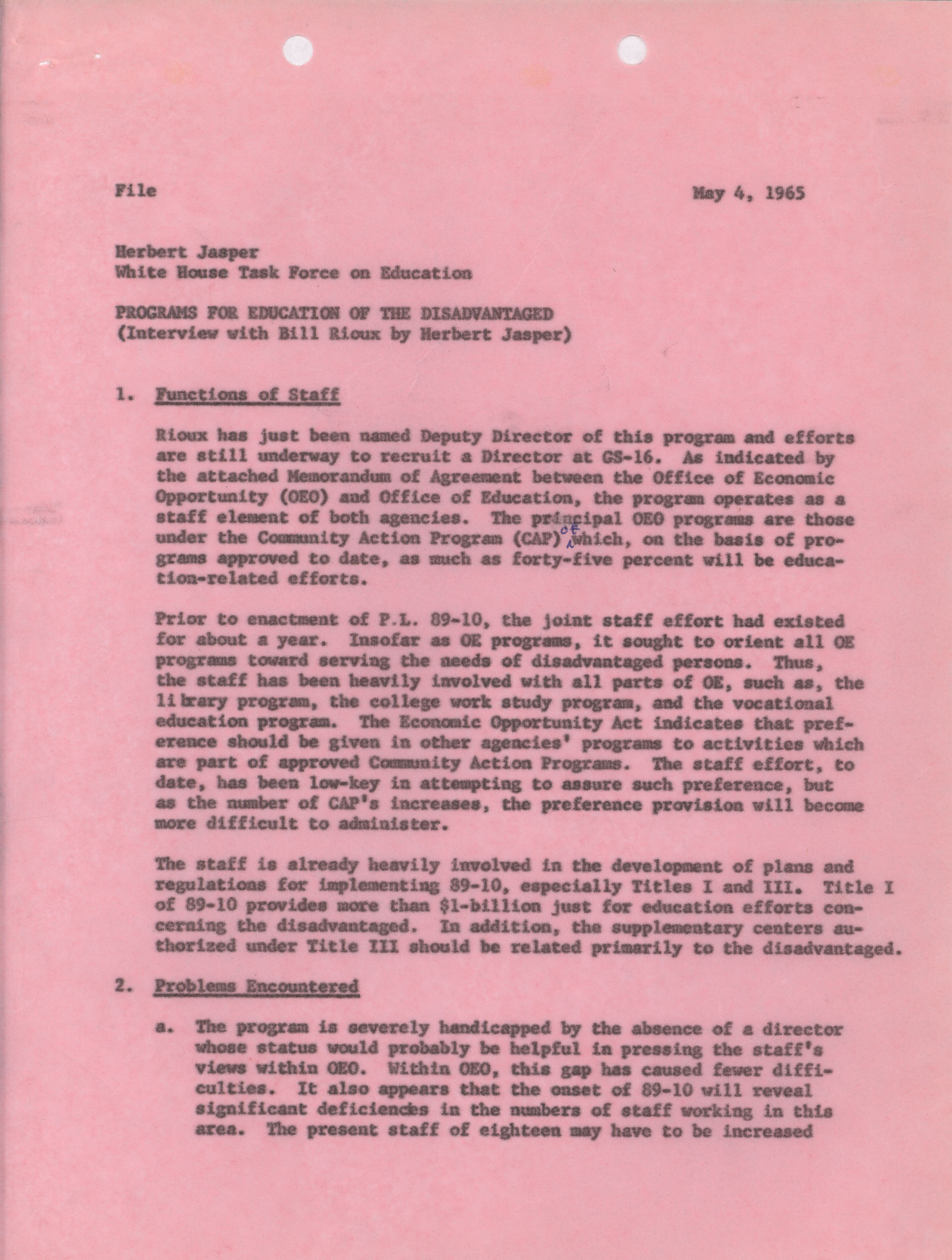 - Herb Jasper interview with Bill Rioux, May 4, 1965