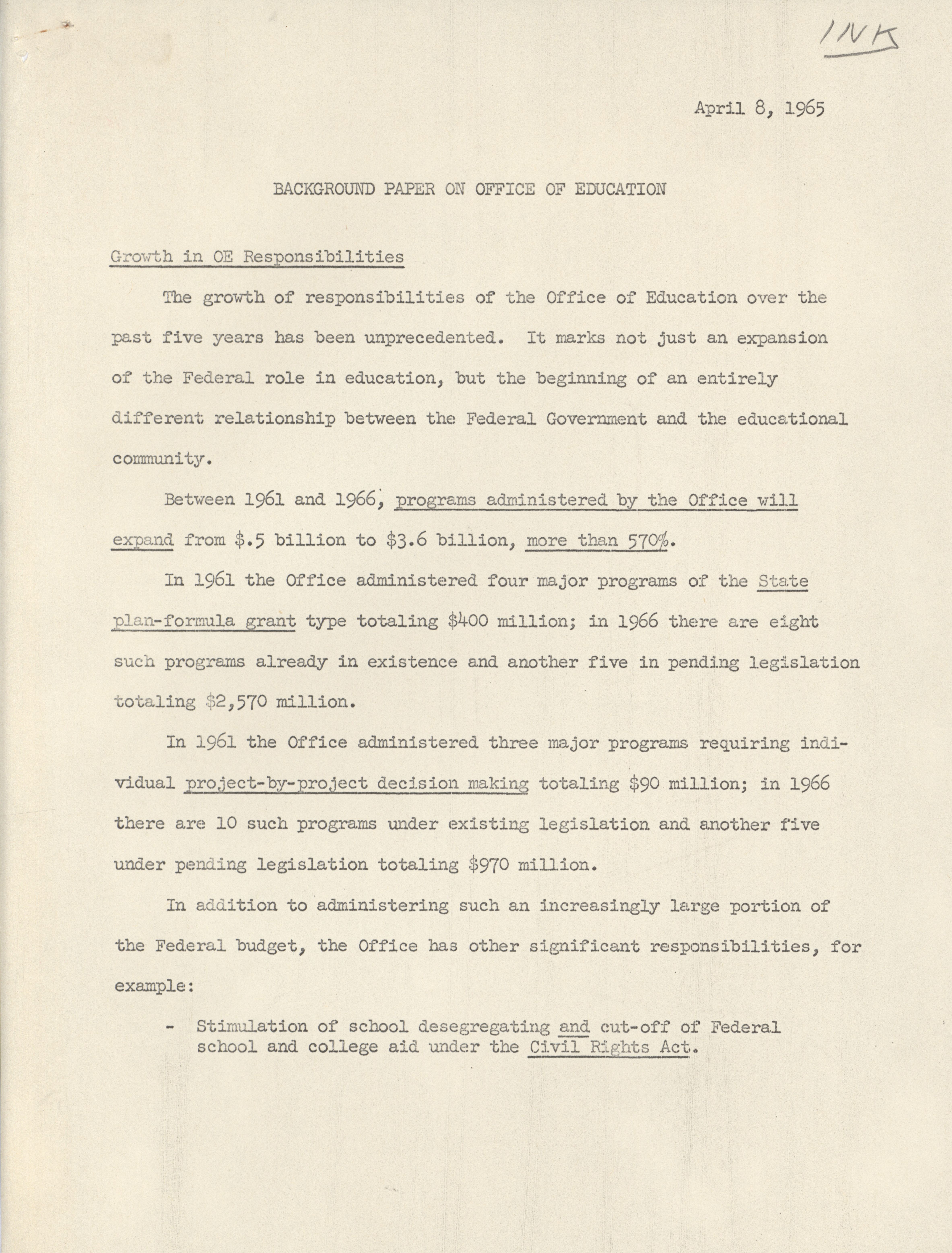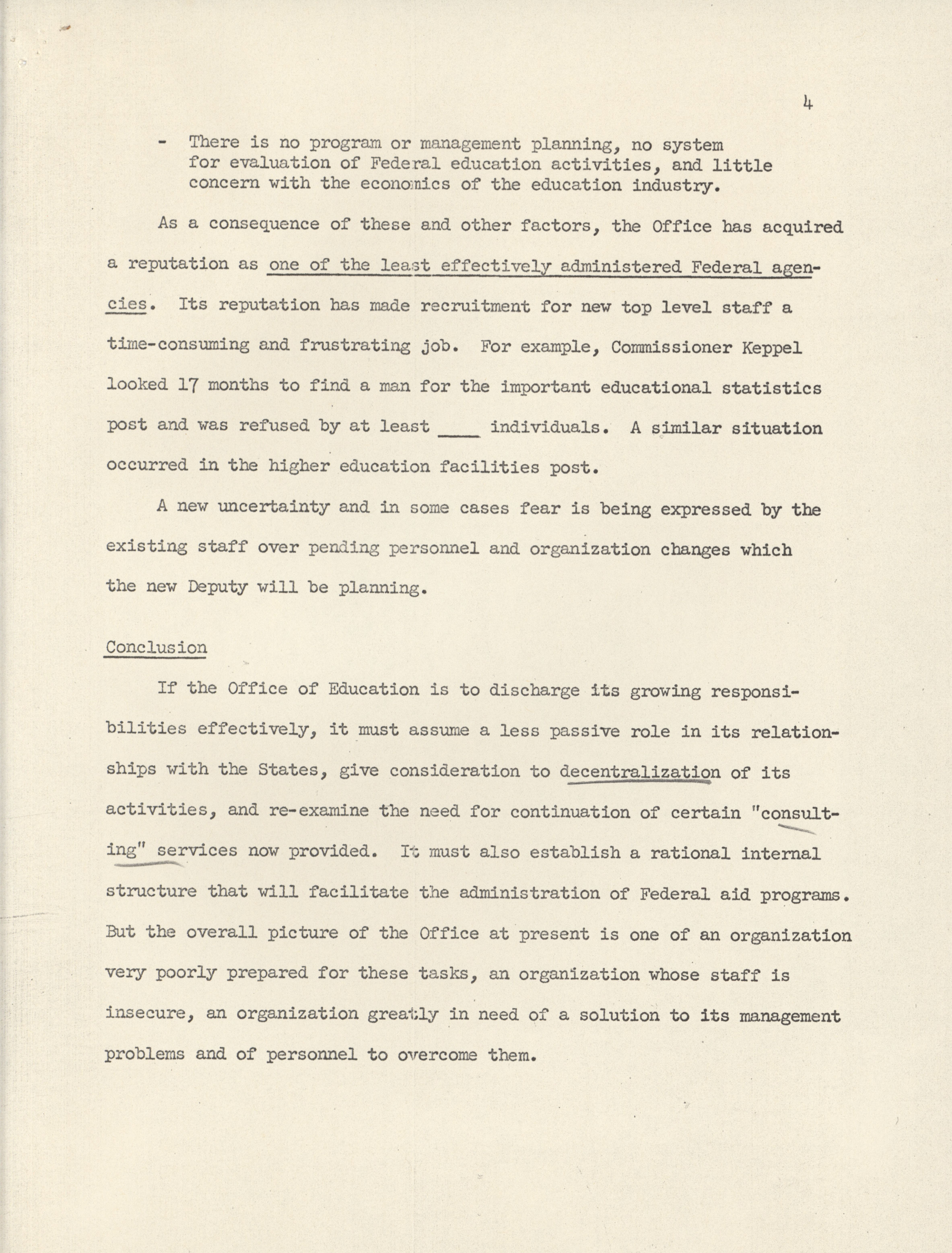 - "Background paper on Office of Education", Dwight Ink Collection, Iowa State University Library Digital Collections