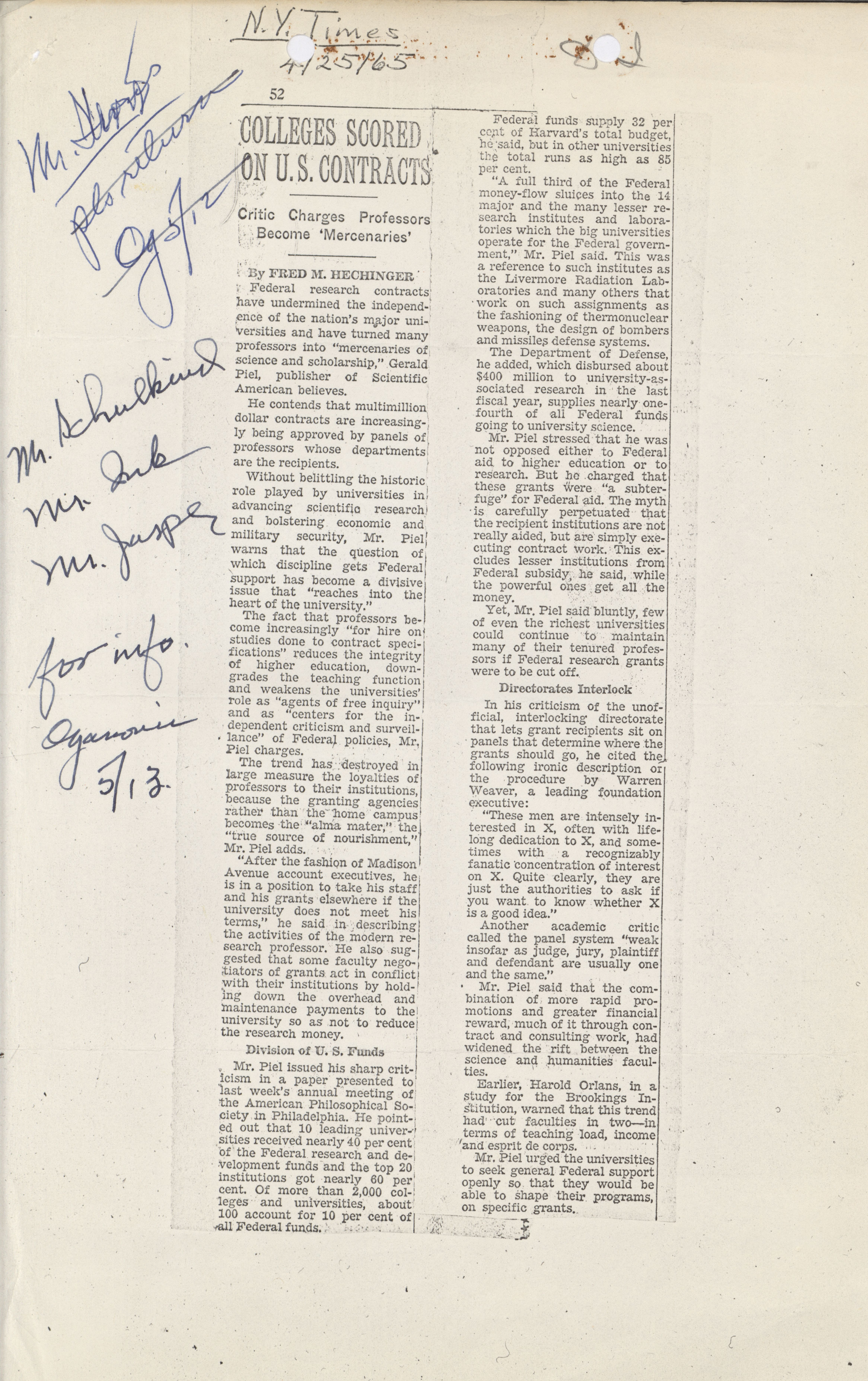 - "Colleges scored on U.S. contracts", Dwight Ink Collection, Iowa State University Library Digital Collections