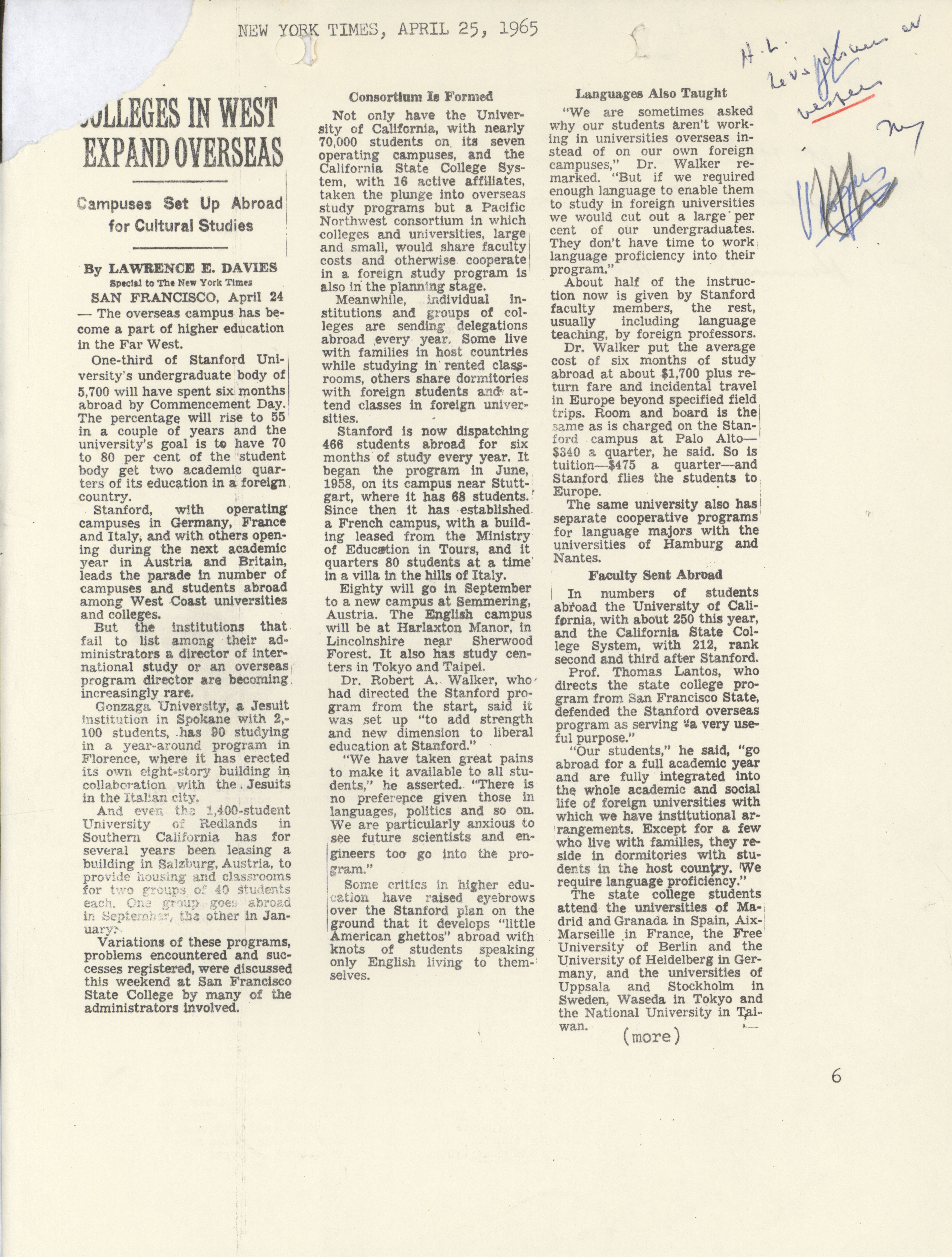 - "Colleges in west expand overseas", Dwight Ink Collection, Iowa State University Library Digital Collections