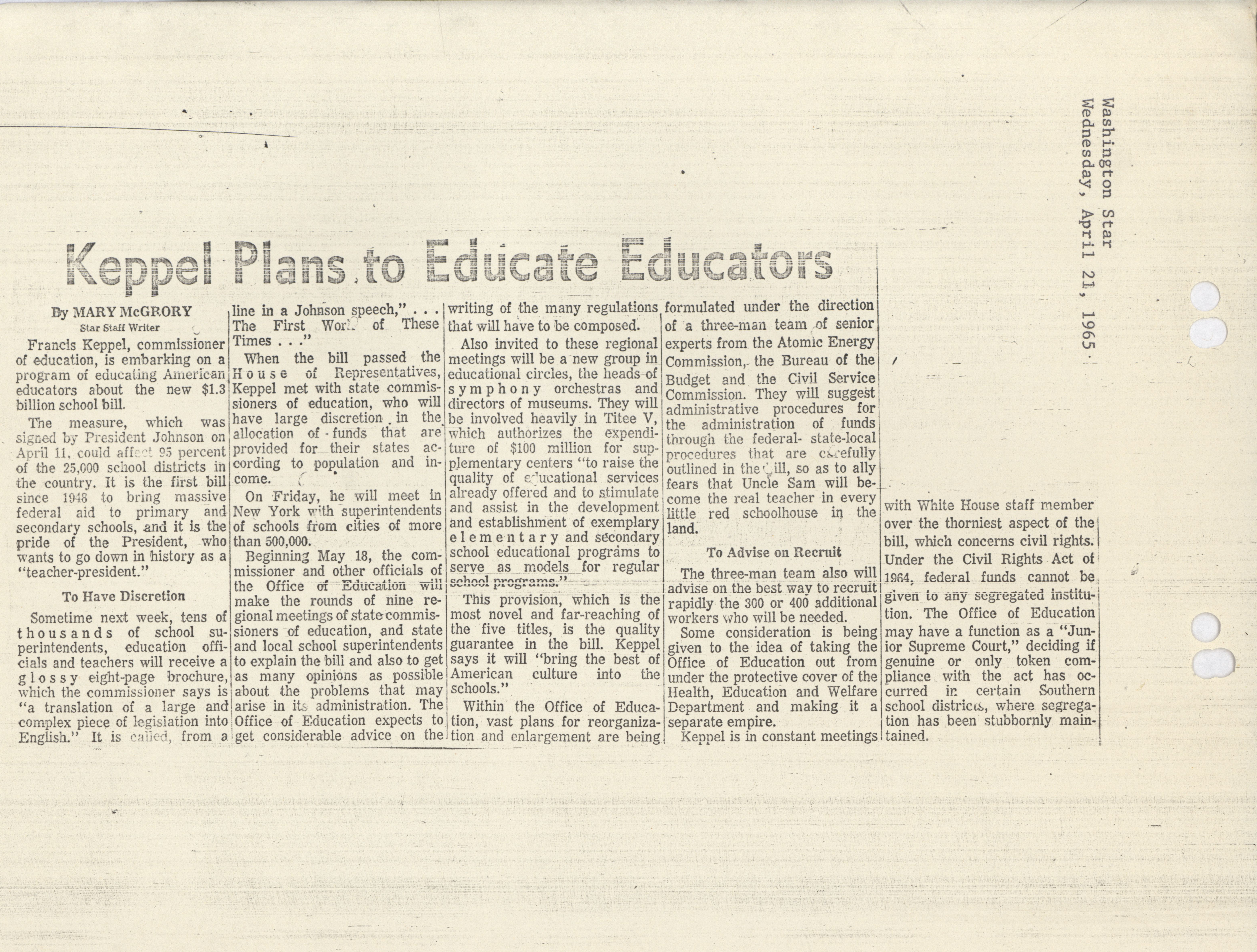 - "Keppel plans to educate educators", Dwight Ink Collection, Iowa State University Library Digital Collections
