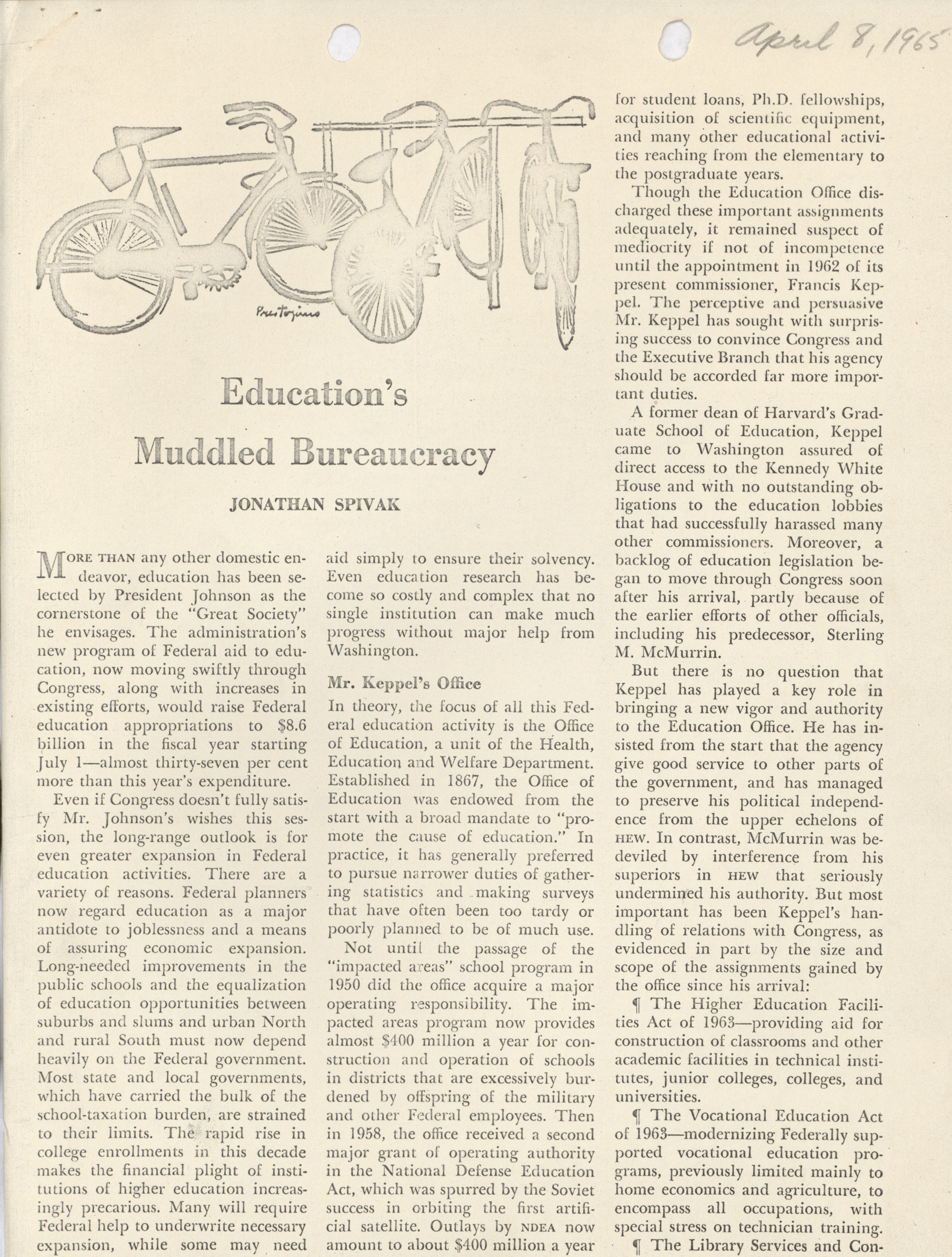 - "Education's muddled bureaucracy", Dwight Ink Collection, Iowa State University Library Digital Collections